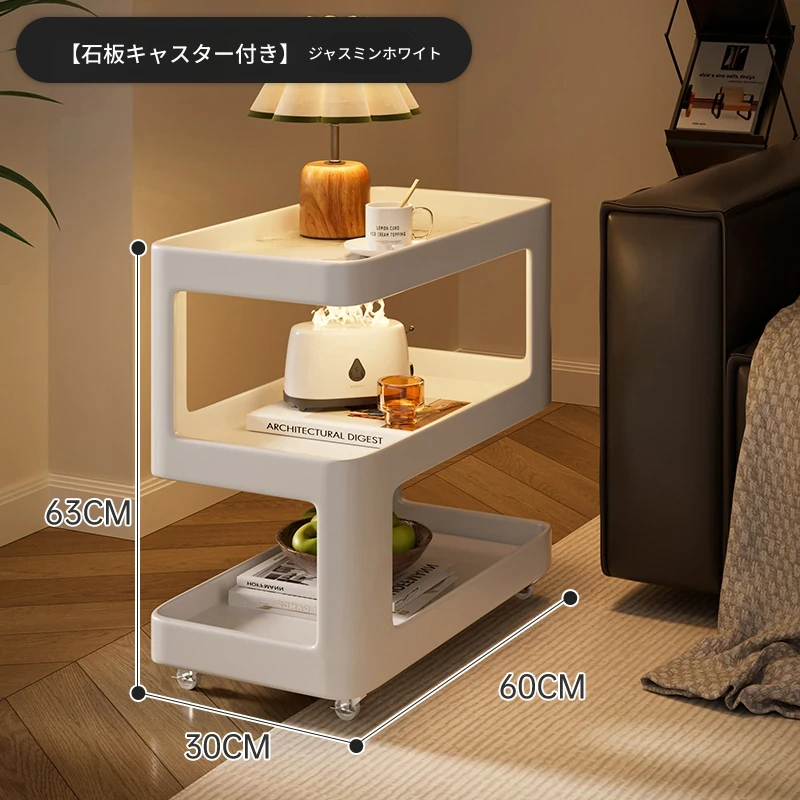 【キャスター付き】ミルクホワイトストーン 30*60*63【鉄製】【品質選定】