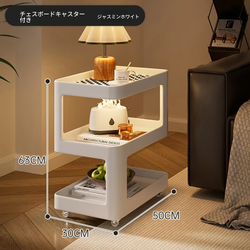 【キャスター付き】ミルクホワイトチェッカーパターン 30*50*63【鉄製】【品質選定】