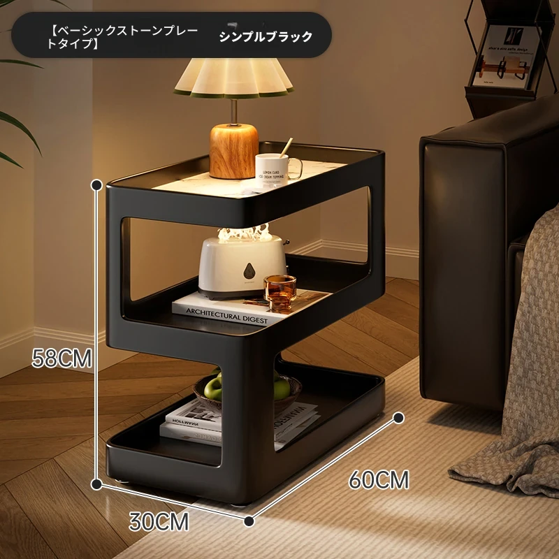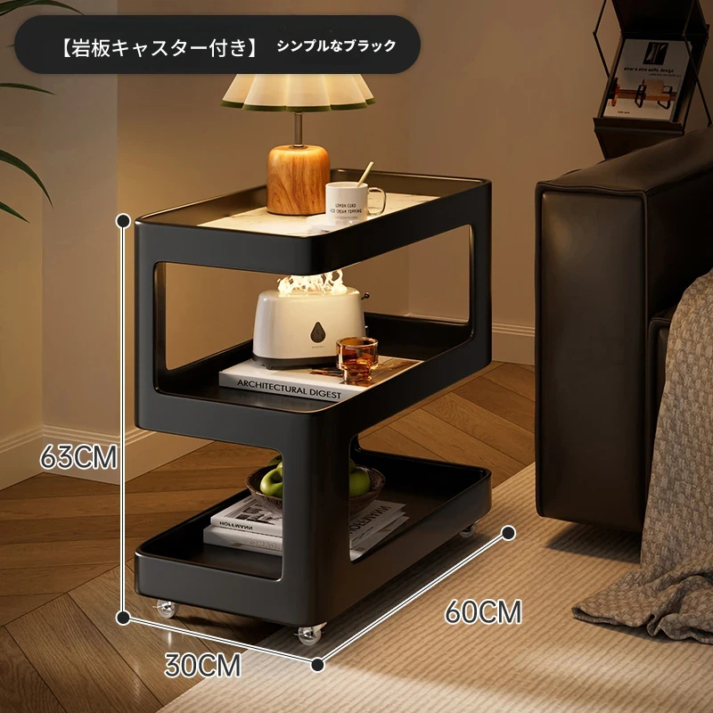 【キャスター付き】シンプルブラック-ホワイトストーン 30*60*63【鉄製】【品質選定】