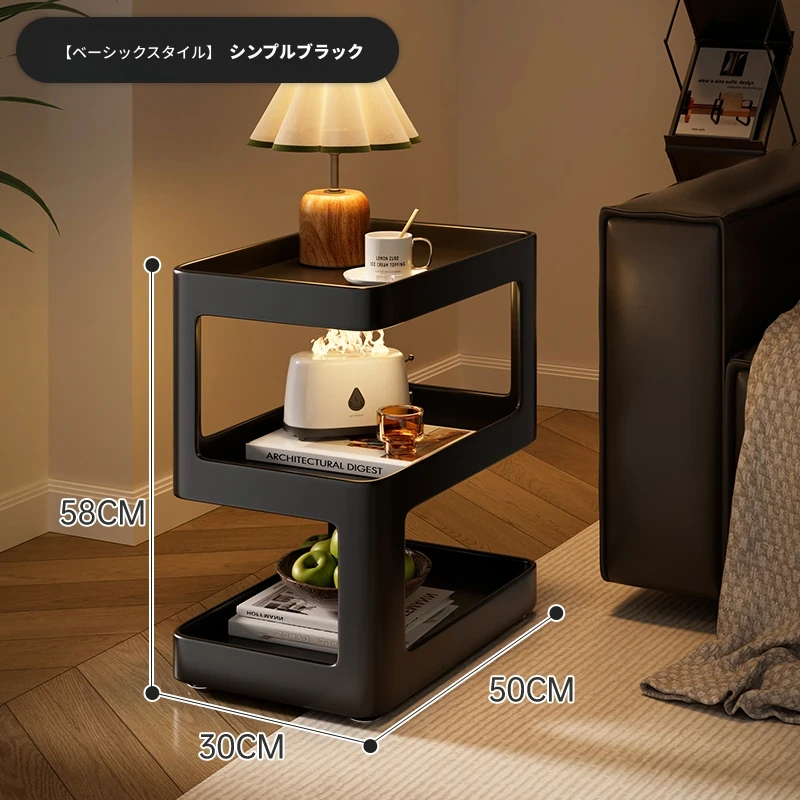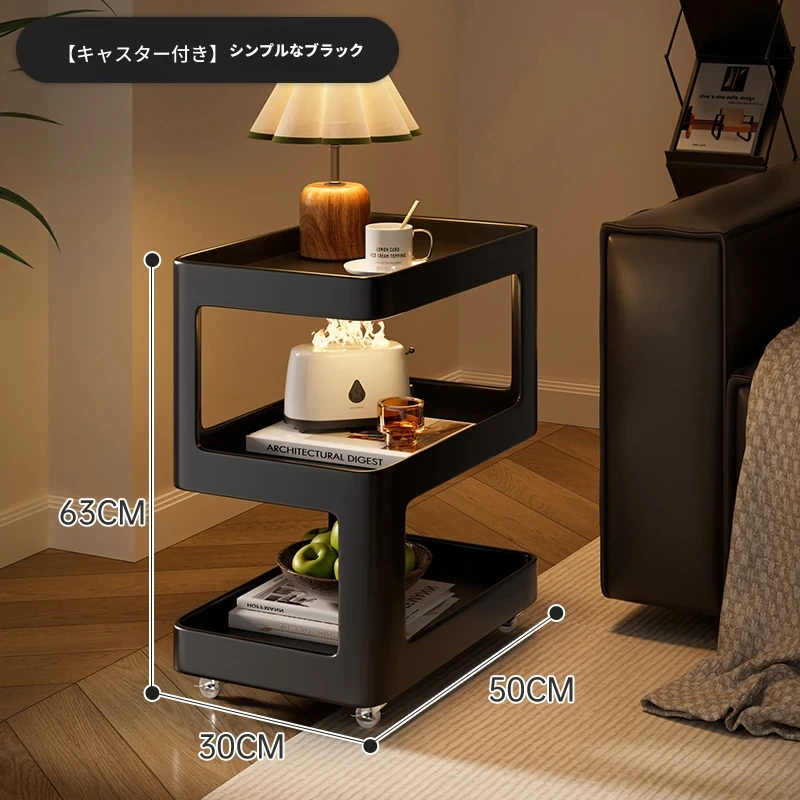【キャスター付き】シンプルブラック 30*50*63【鉄製】【品質選定】