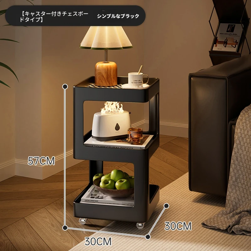 【キャスター付き】シンプルブラックチェッカーパターン 30*30*57【鉄製】【品質選定】