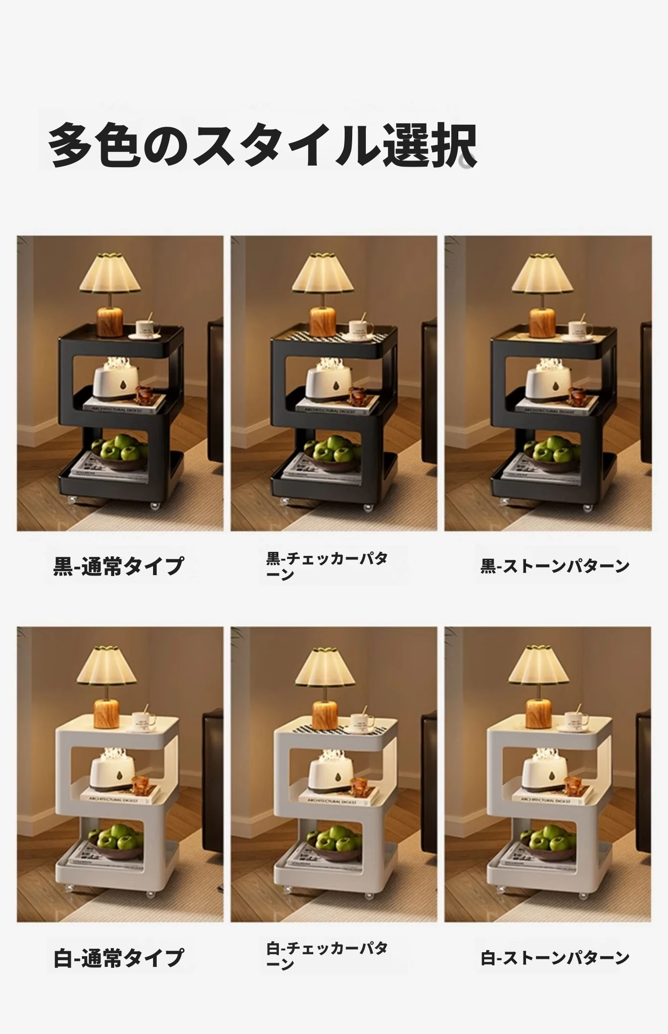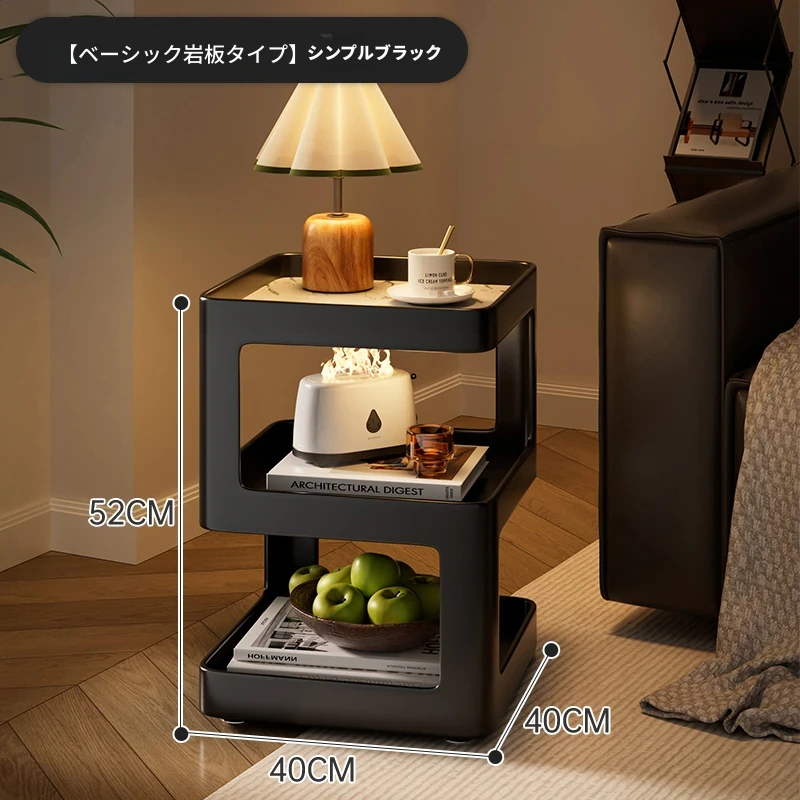【キャスター付き】シンプルブラック-ホワイトストーン 40*40*57【鉄製】【品質選定】