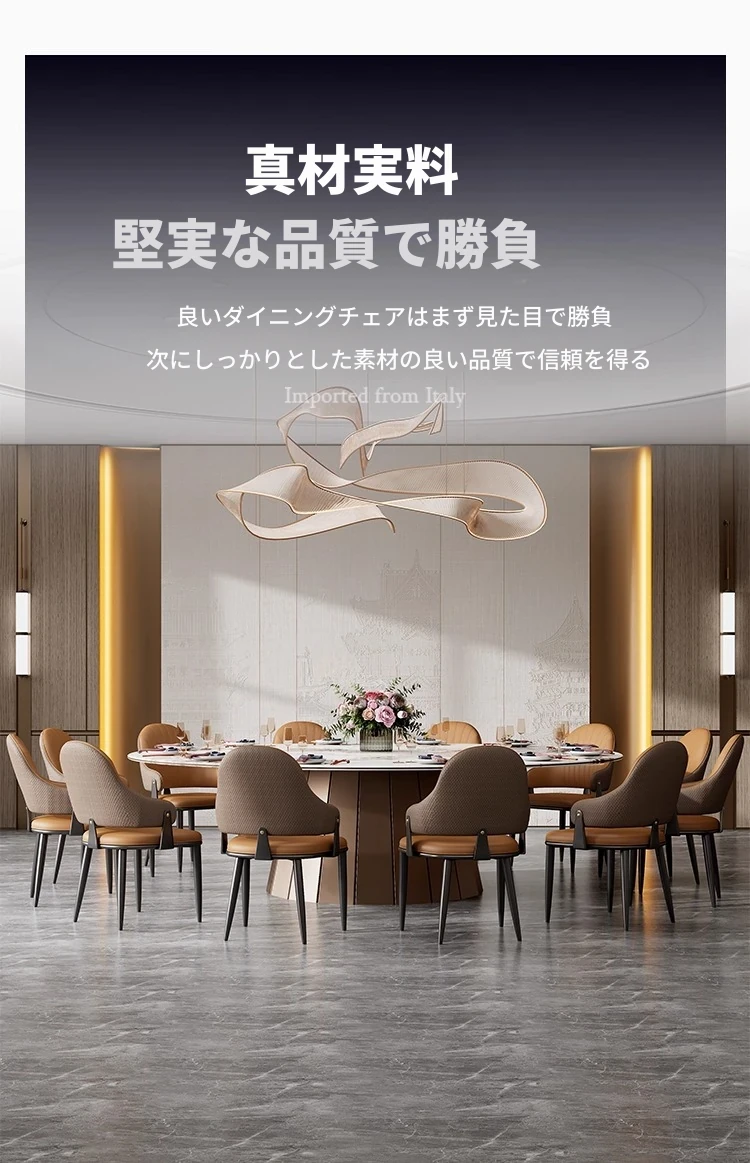軽やかで贅沢な高級感!デザイナーが手掛けたダイニングチェア、レストランや家庭に最適。背もたれ付きで快適さを追求したソフトパッケージ。ホテルの打ち合わせにもぴったりな主役椅子!