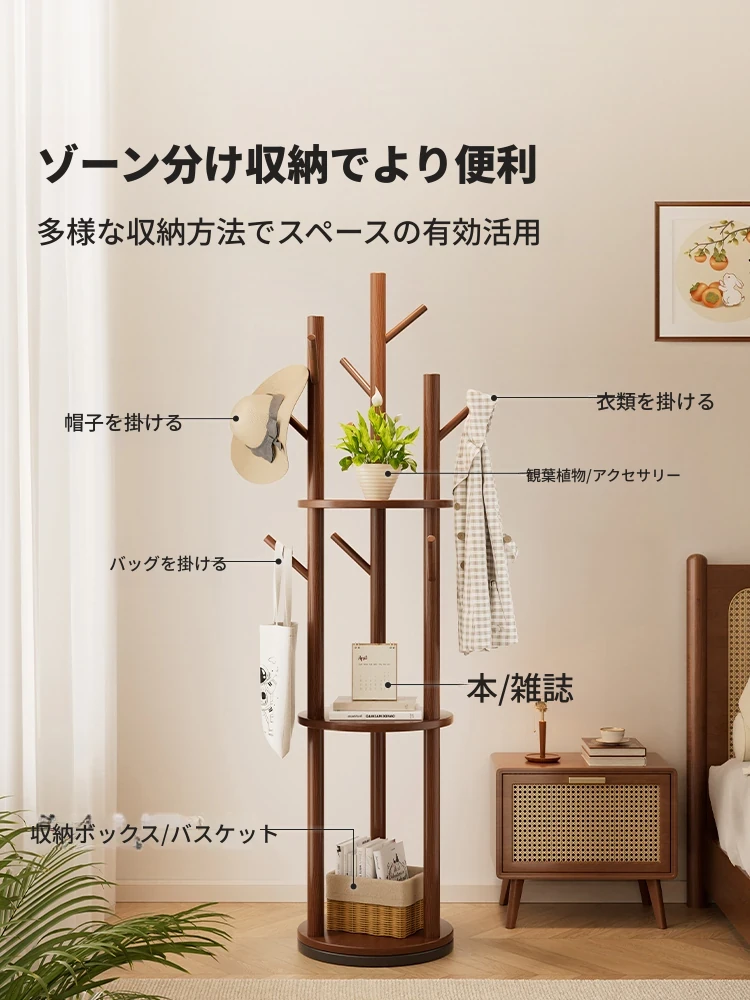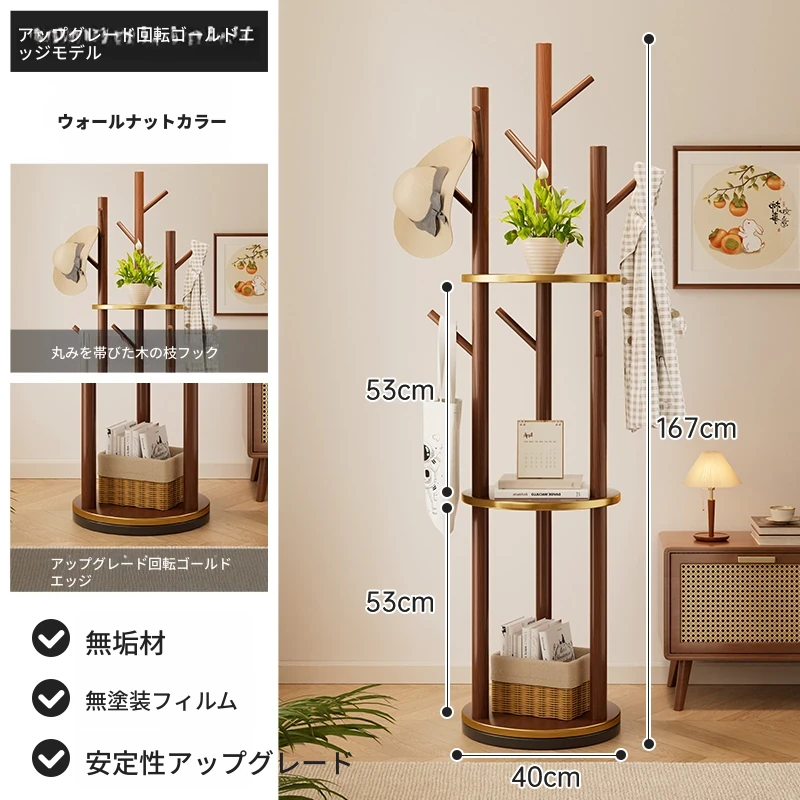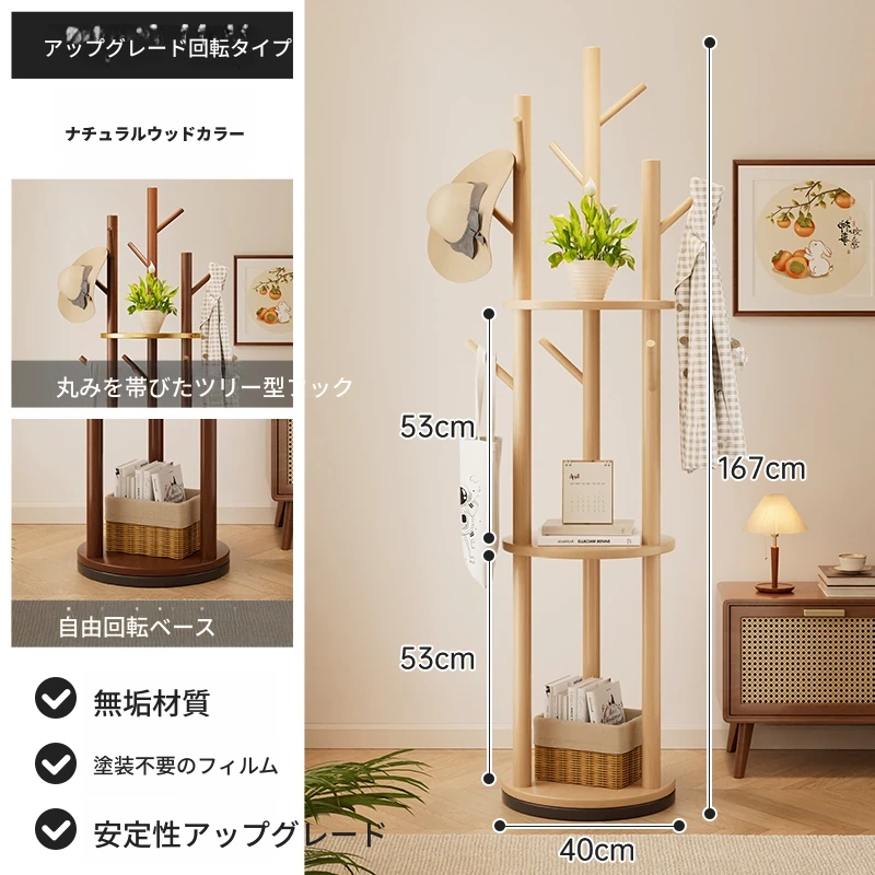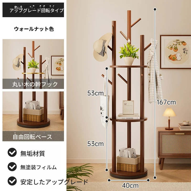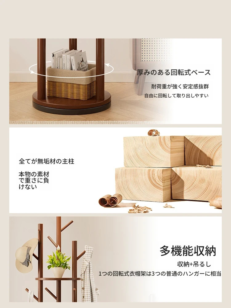 回転式コートハンガー リビング・寝室にぴったりの実用的な木製スタンド 角にぴったりフィット!シンプルでスタイリッシュなデザインのベッドサイド衣類ラック。おしゃれに整理整頓して、快適な空間を実現!