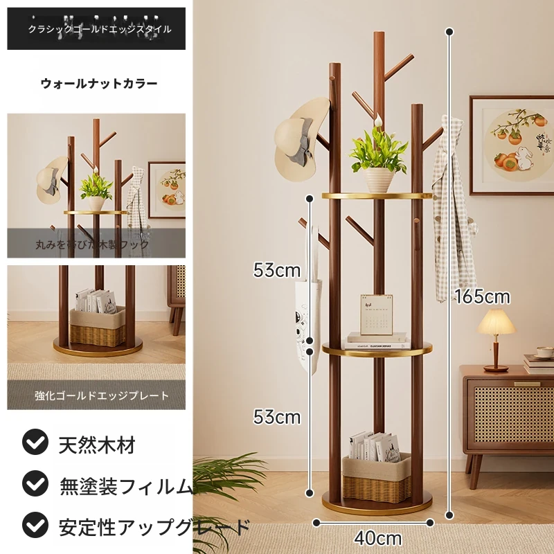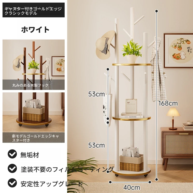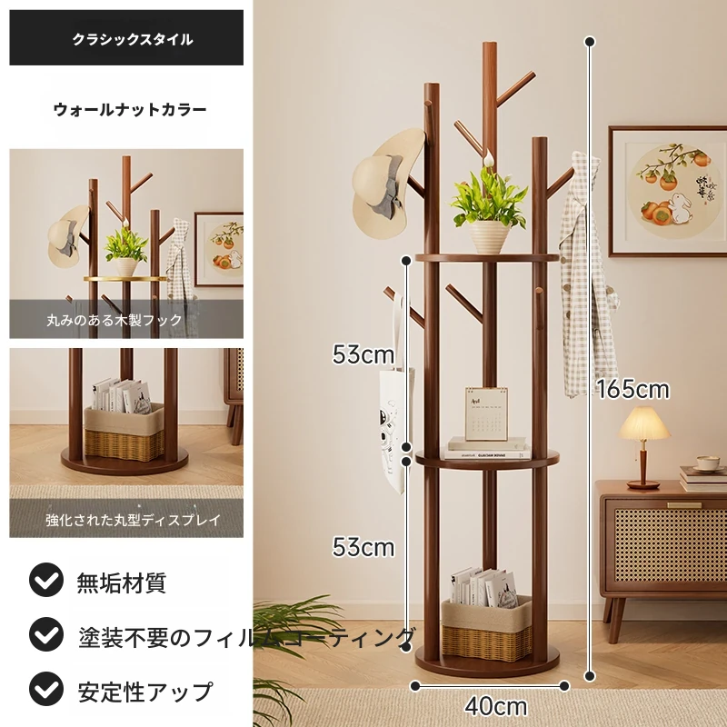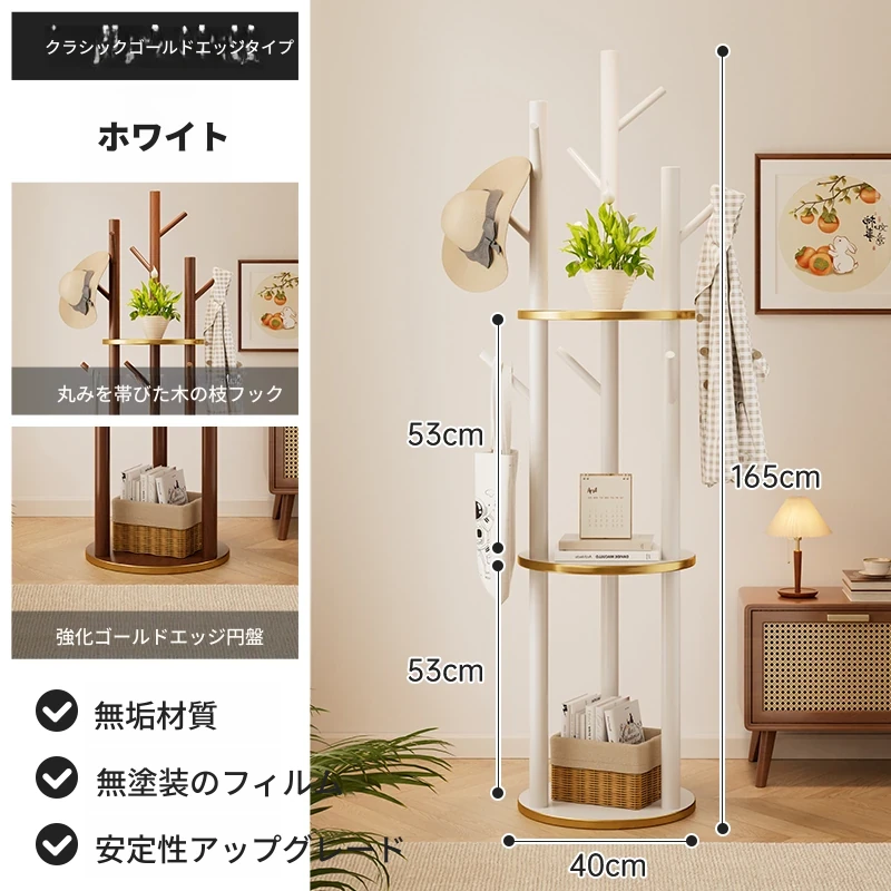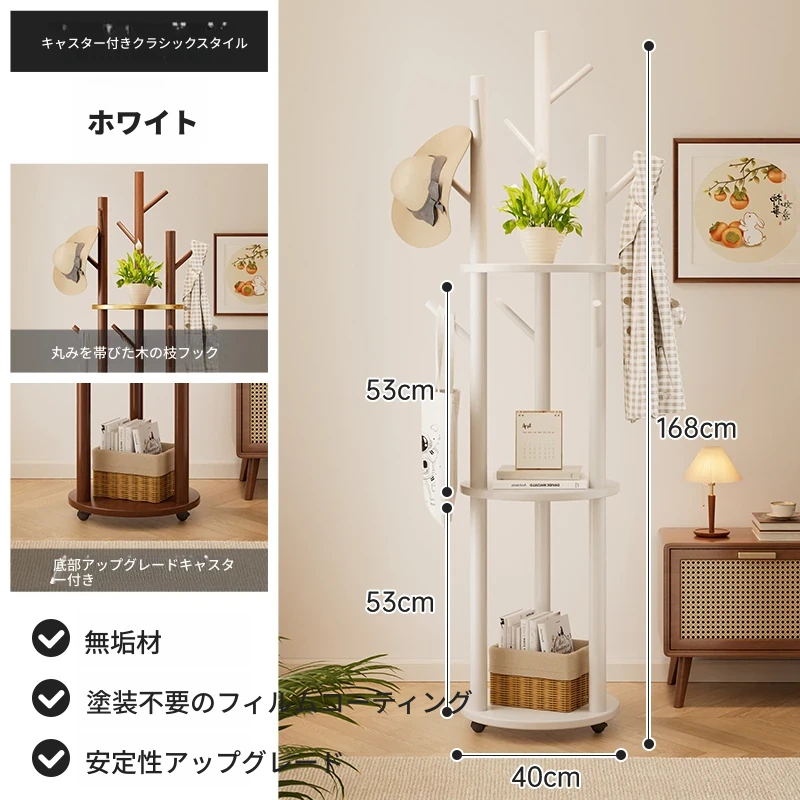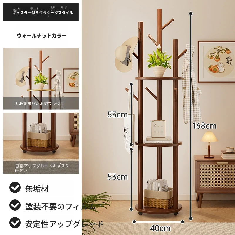 回転式コートハンガー リビング・寝室にぴったりの実用的な木製スタンド 角にぴったりフィット!シンプルでスタイリッシュなデザインのベッドサイド衣類ラック。おしゃれに整理整頓して、快適な空間を実現!