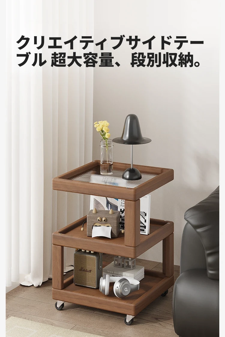 サイドテーブル ソファサイドキャビネット 移動式コーヒーテーブル 小型テーブル ベッドサイドテーブル リビングルーム テレビ横 本棚 フロアシェルフ 収納力抜群でおしゃれなインテリアにぴったり!