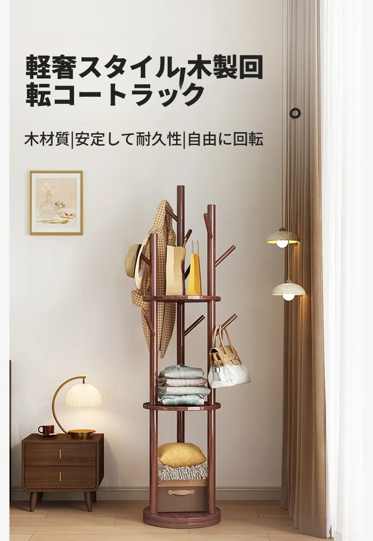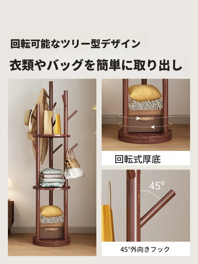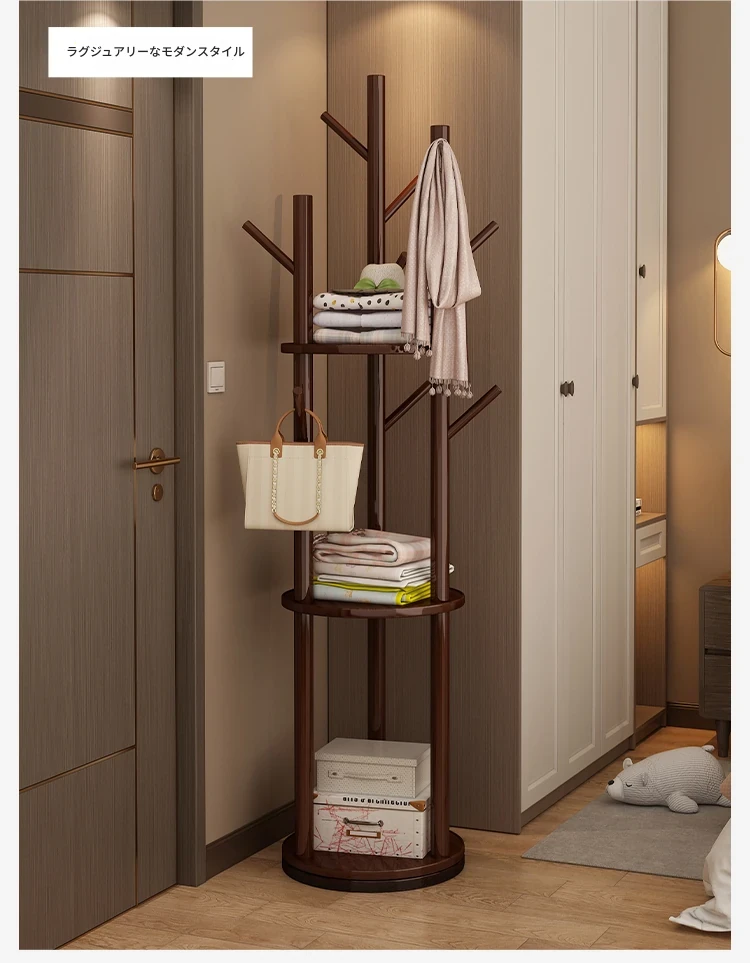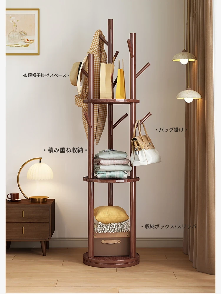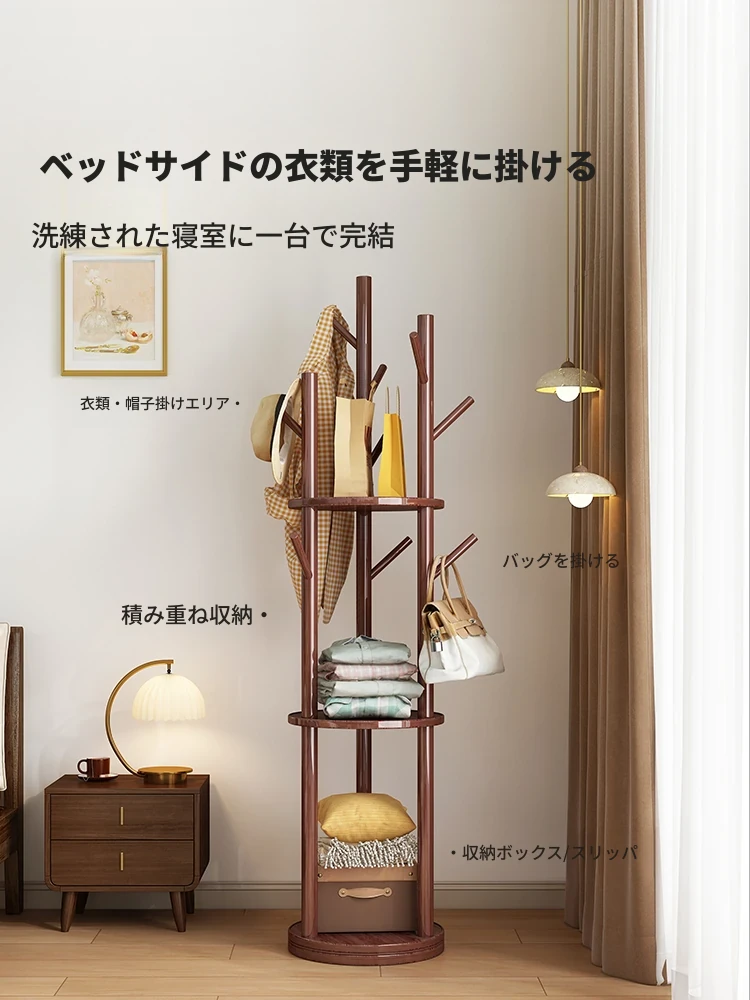 新作!実木製のスタイリッシュなコーナー型ハンガーラック - 寝室やリビングにぴったり!小型でベッドサイドにも置ける、夜の衣類収納に最適な便利アイテム!