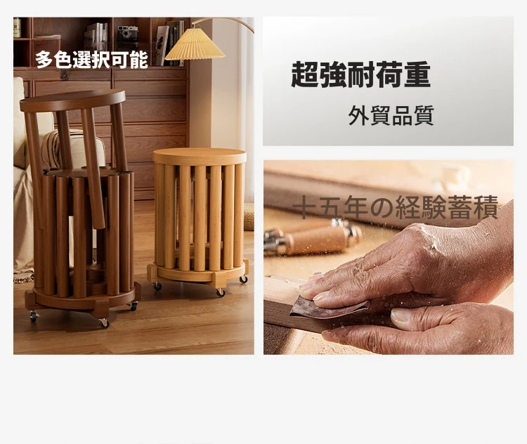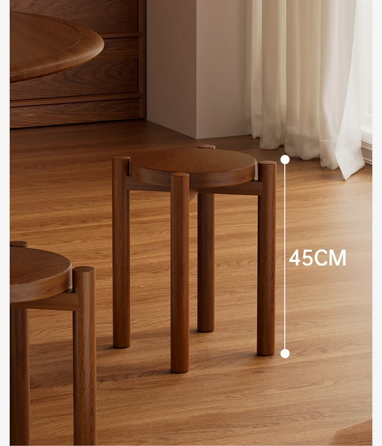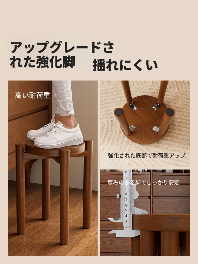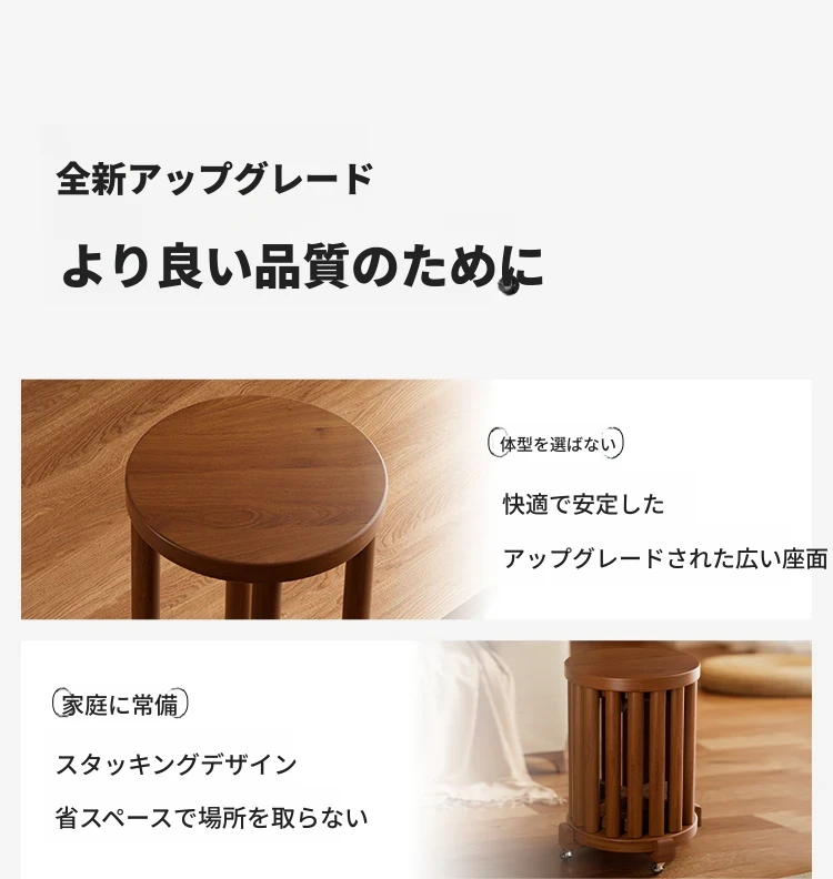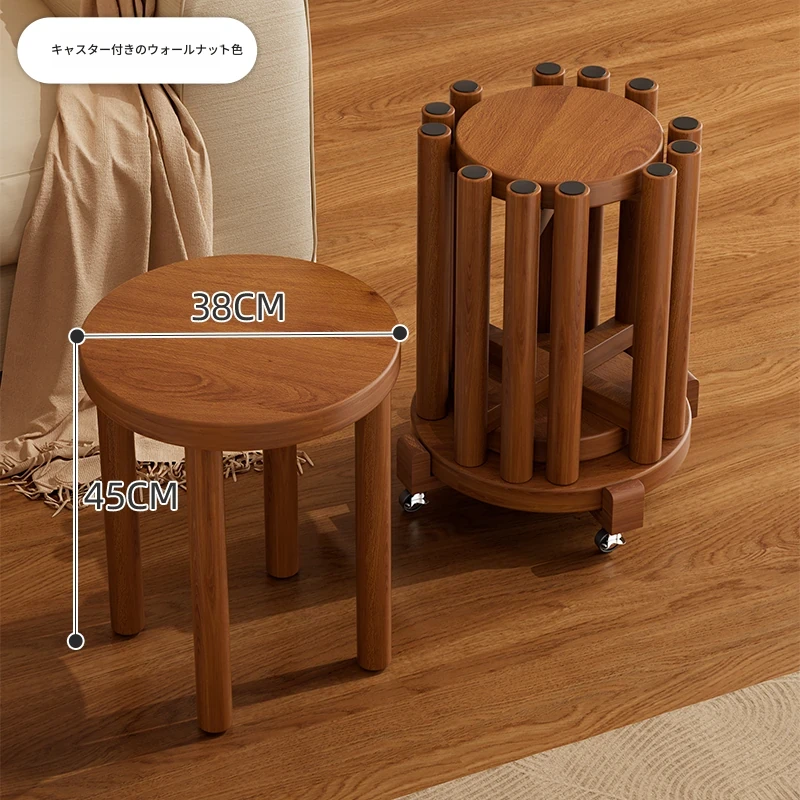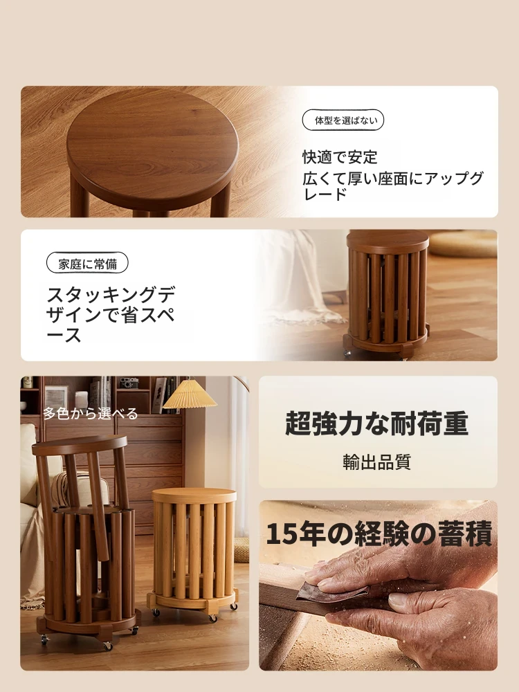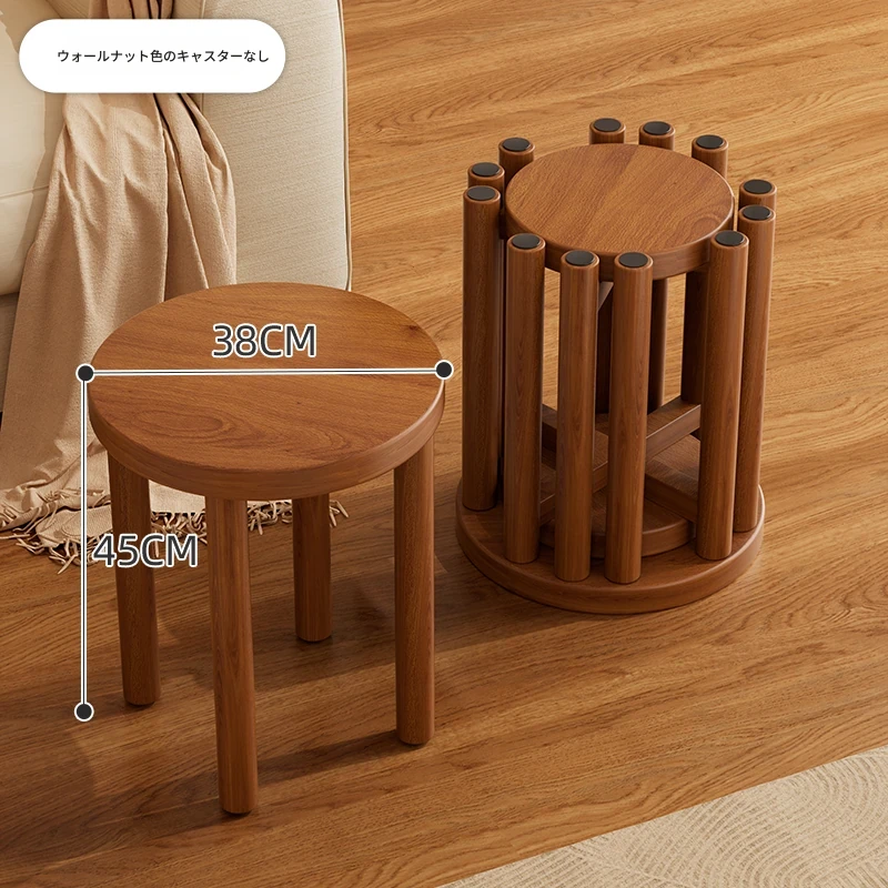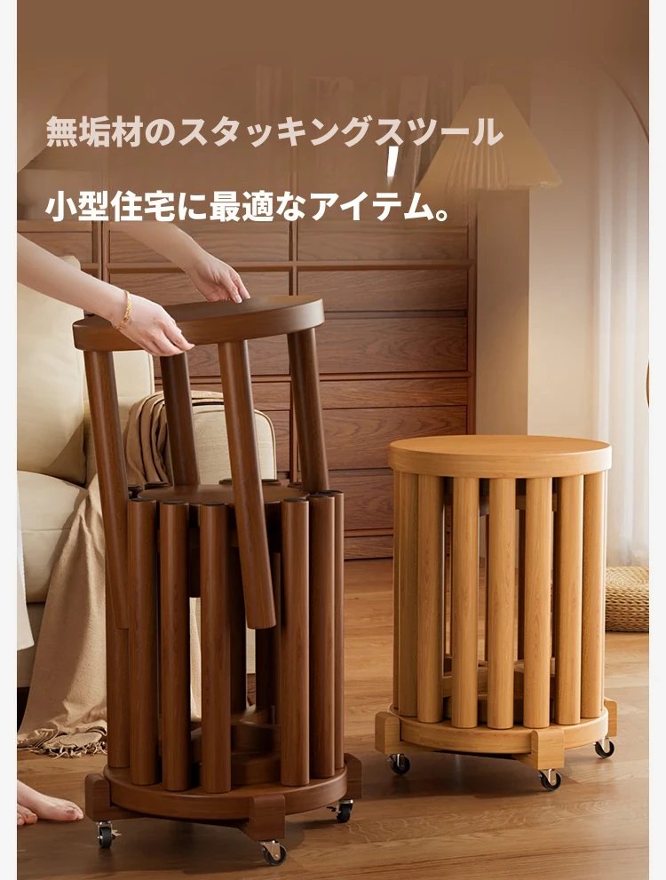 高級感漂う無垢材のスタッキングスツール - 家庭用、空間を有効活用できるおしゃれなサブベンチ。来客時にもぴったり!収納もラクラク。
