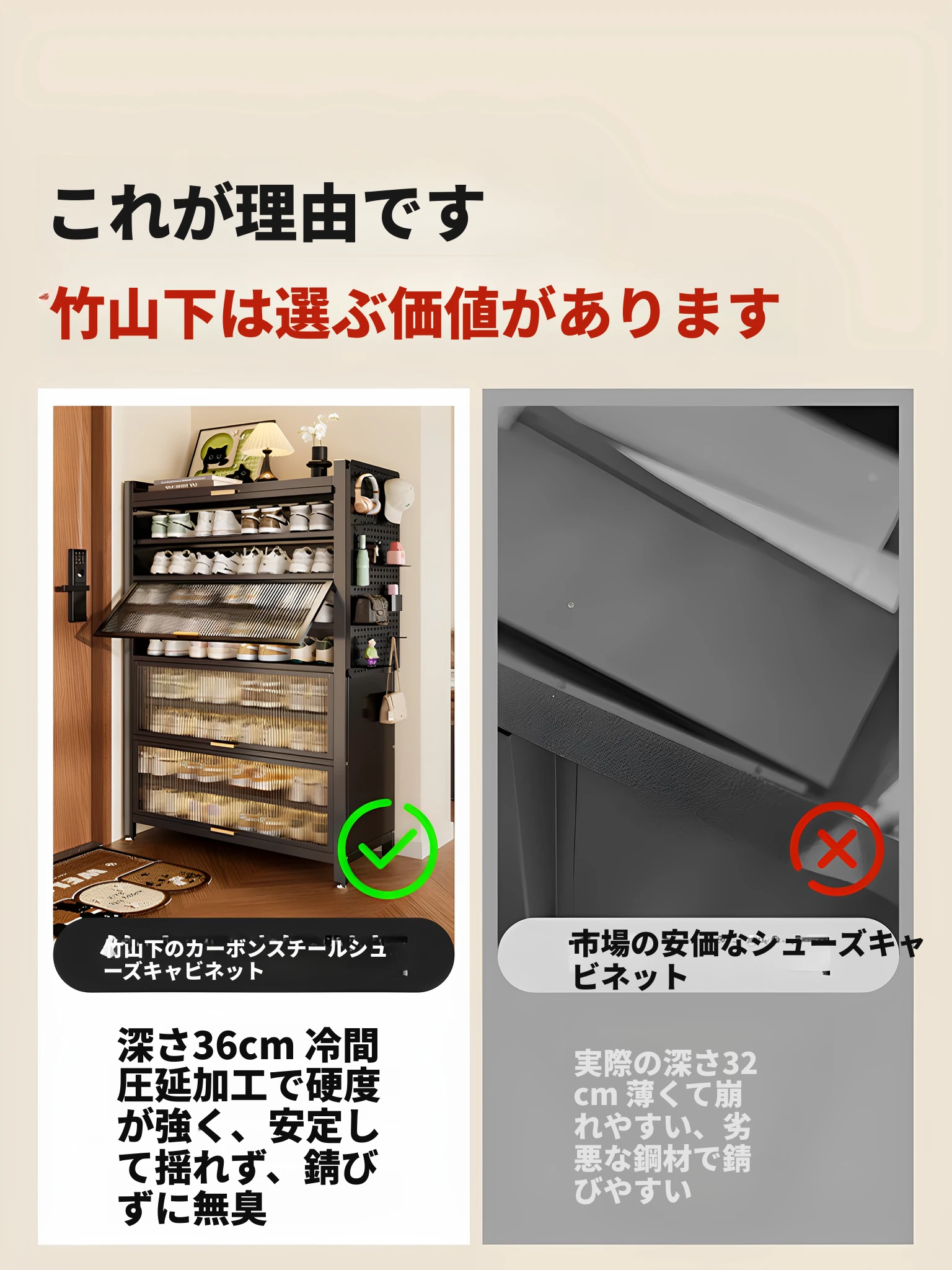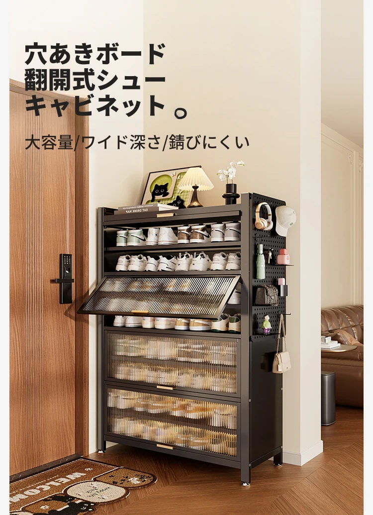 ステンレス製シューズキャビネット 新型家庭用玄関収納 大容量ホール用防塵シューズラック 玄関をおしゃれに演出し、整理整頓をサポート!