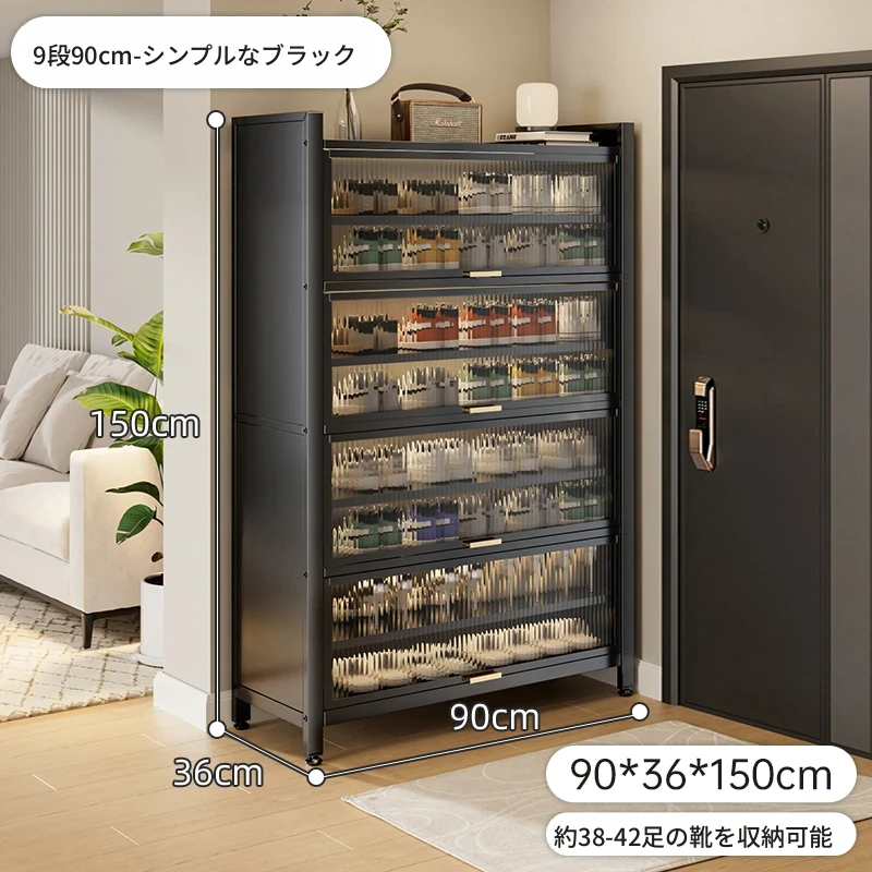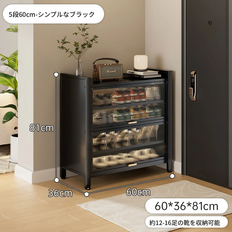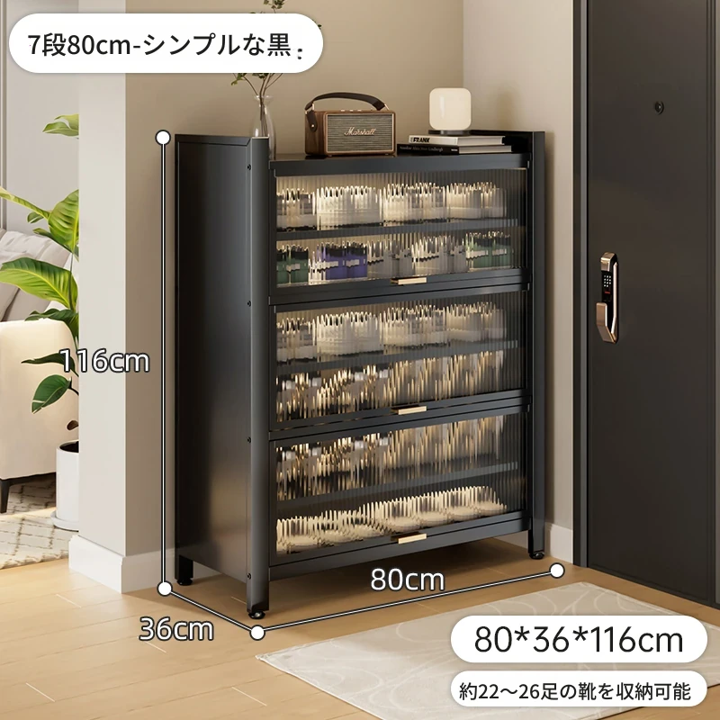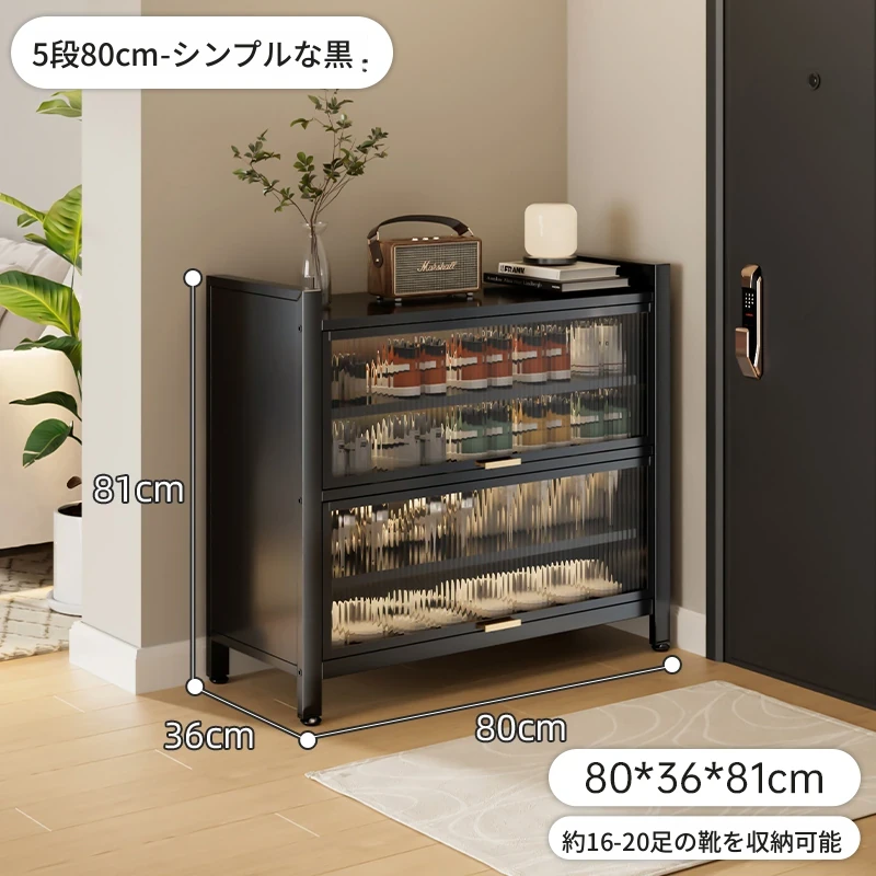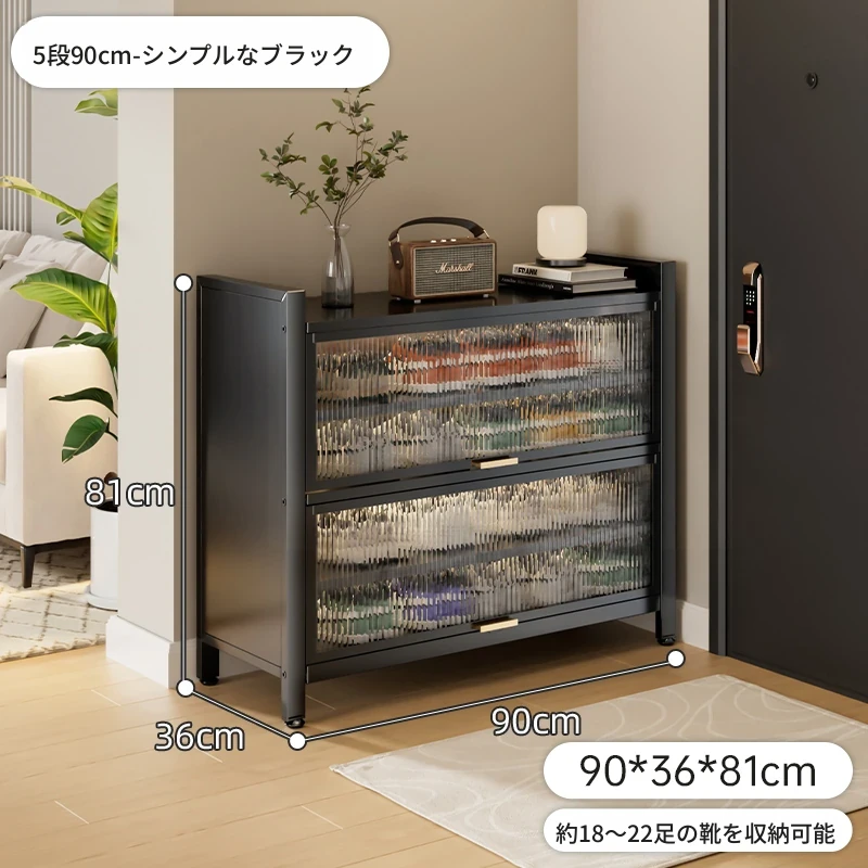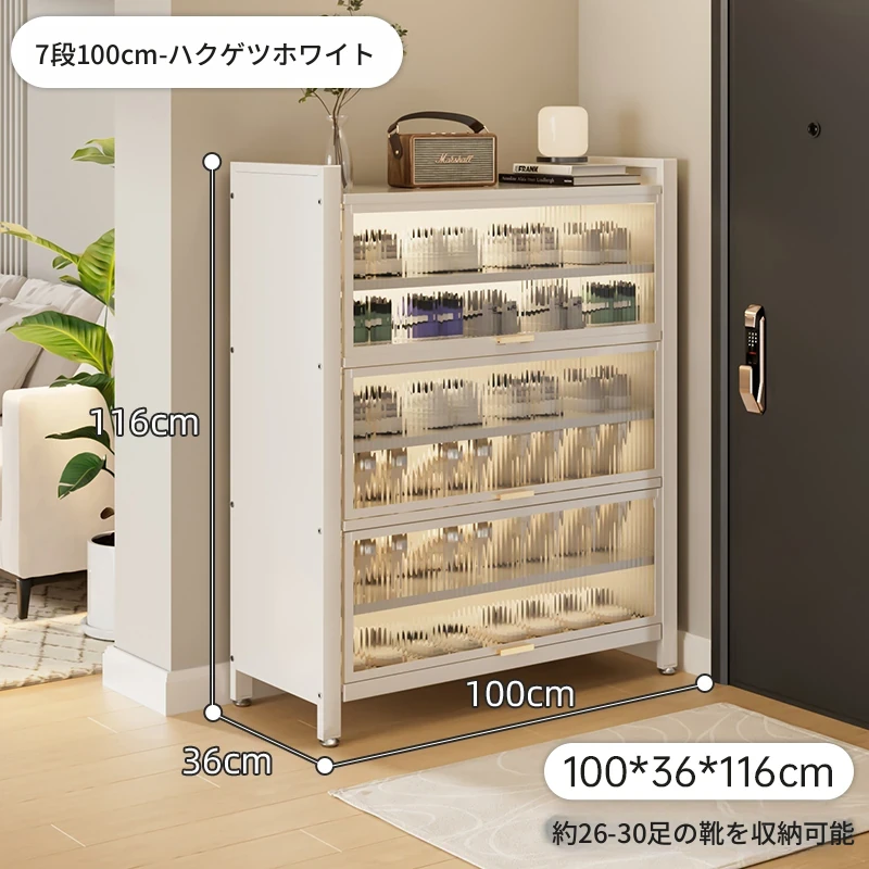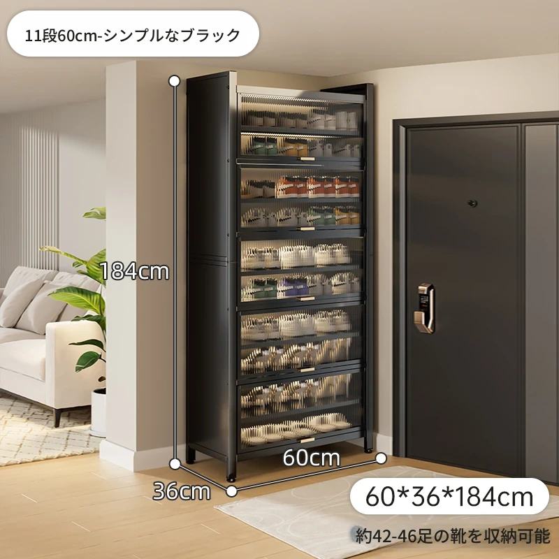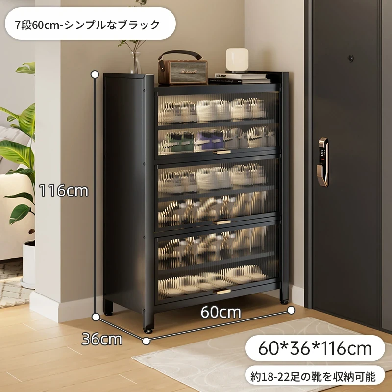 スチール製シューキャビネット - 壁面にぴったりフィット!玄関や廊下に最適な収納力を誇る、埃から守る落地型シューラック。家の入り口をスタイリッシュに整頓しましょう!