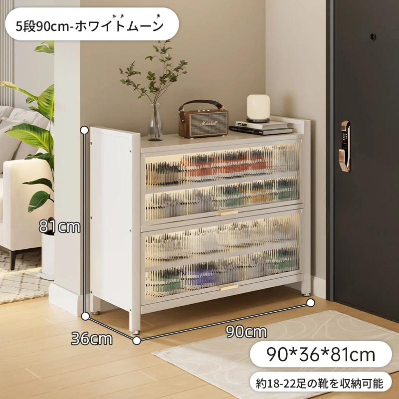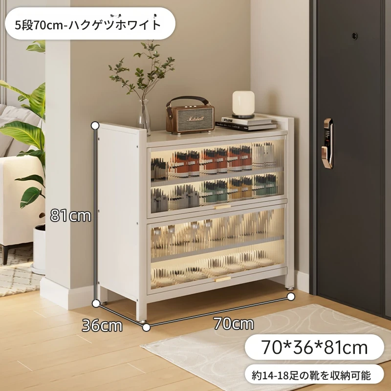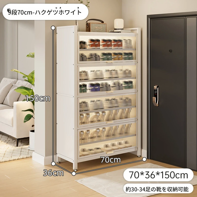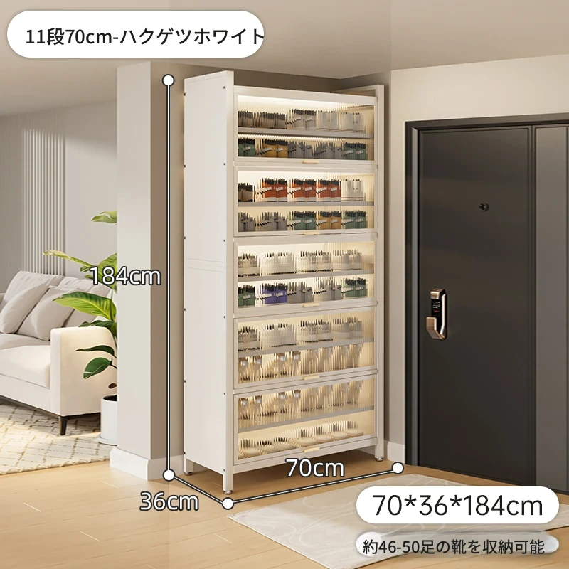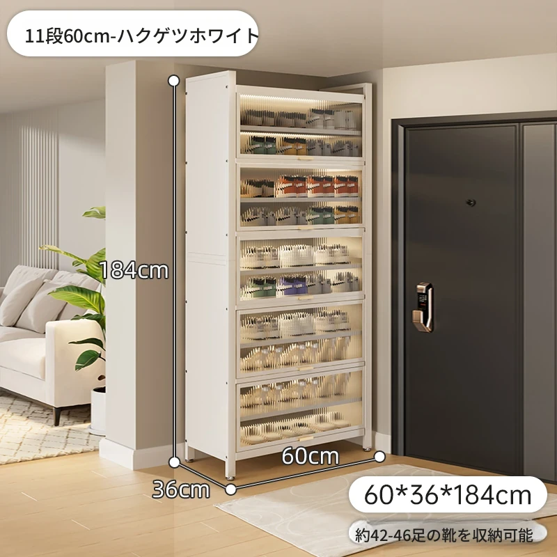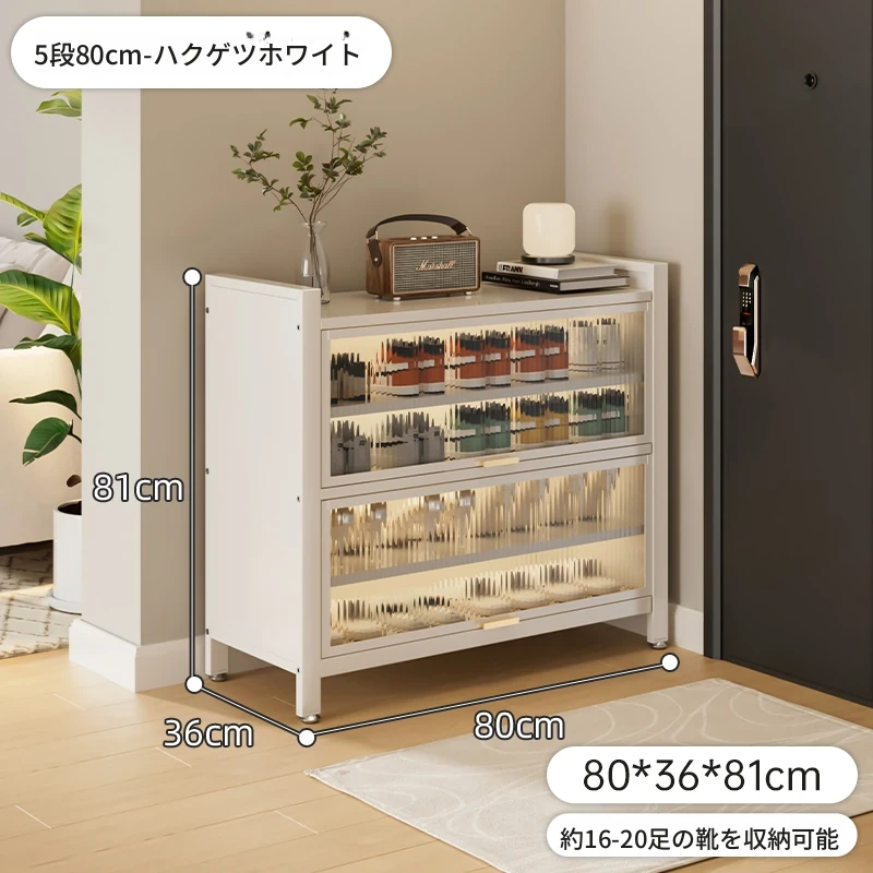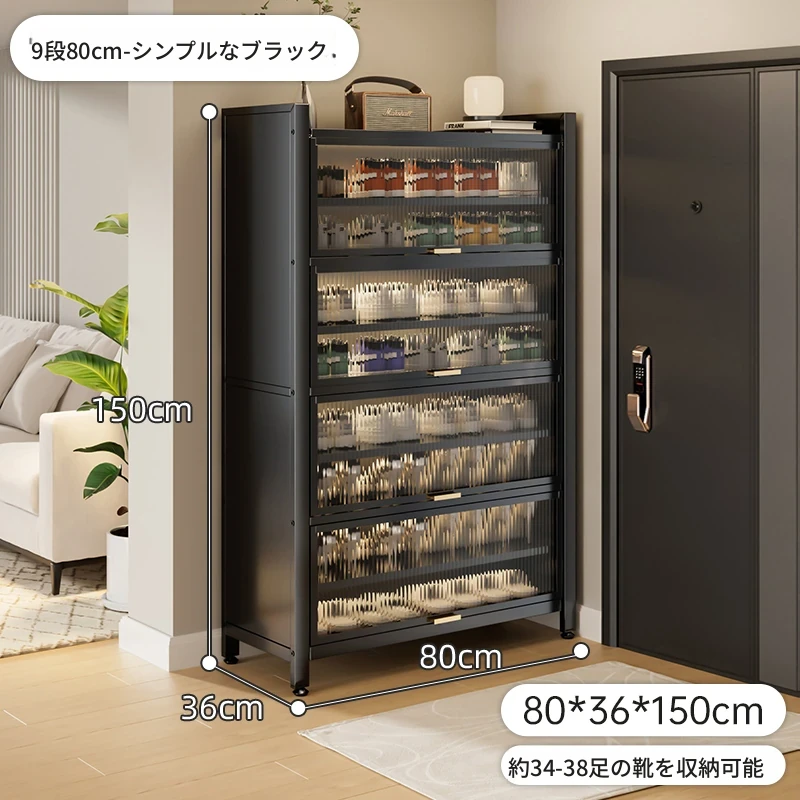 スチール製シューキャビネット - 壁面にぴったりフィット!玄関や廊下に最適な収納力を誇る、埃から守る落地型シューラック。家の入り口をスタイリッシュに整頓しましょう!