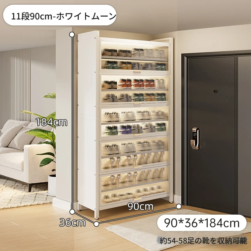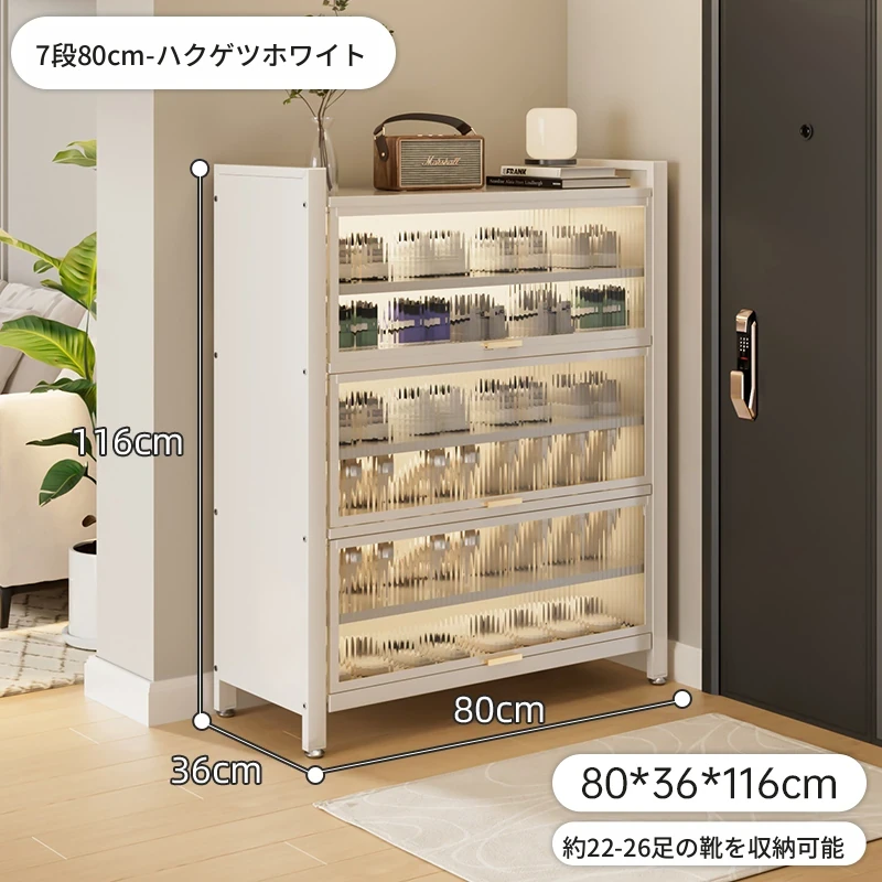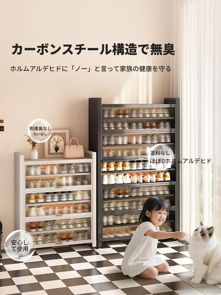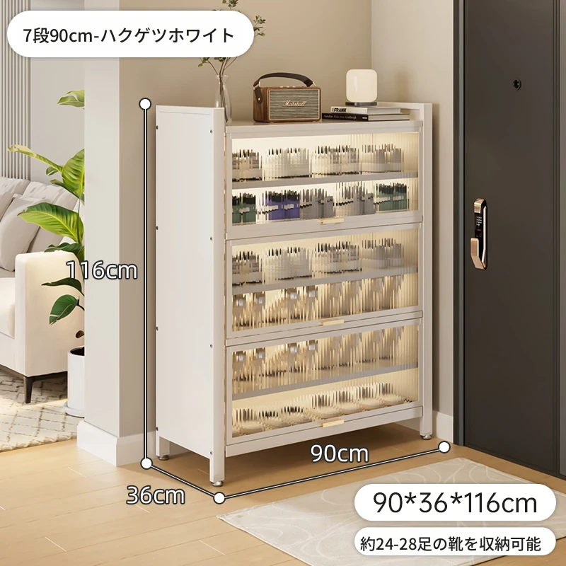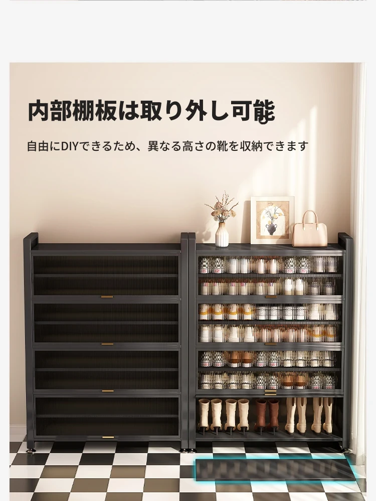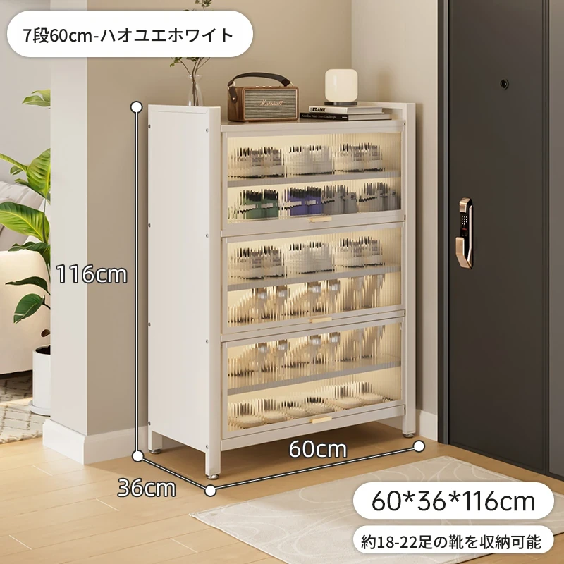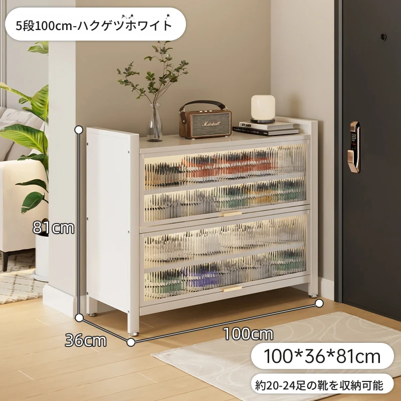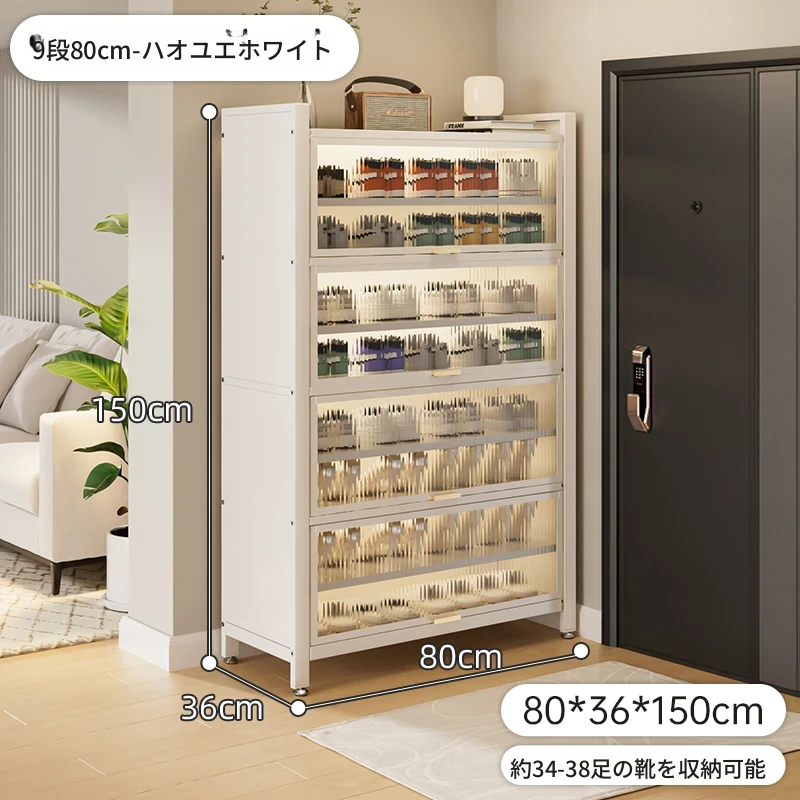 スチール製シューキャビネット - 壁面にぴったりフィット!玄関や廊下に最適な収納力を誇る、埃から守る落地型シューラック。家の入り口をスタイリッシュに整頓しましょう!