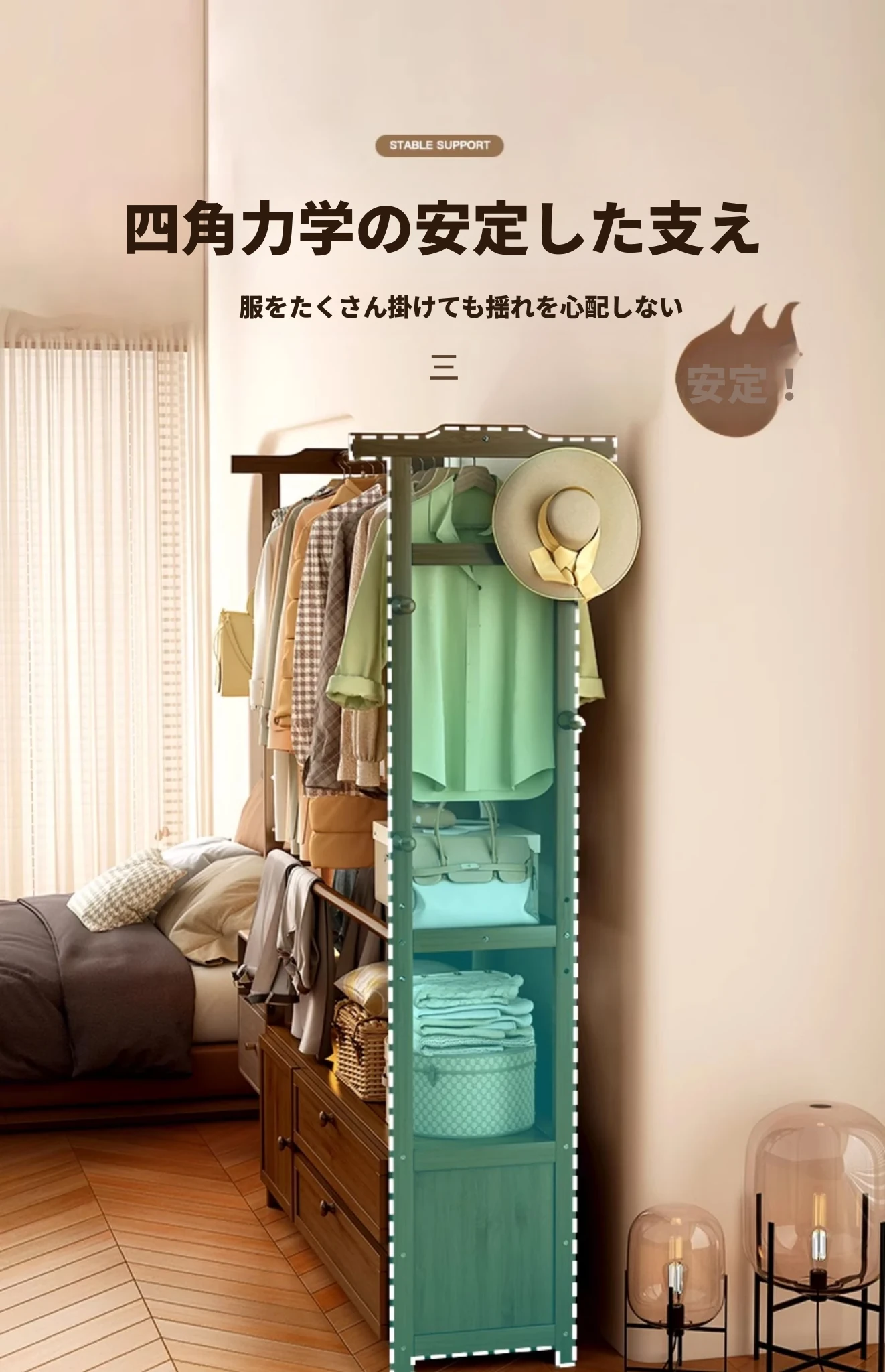 【安定して揺れず 倒れた場合補償】