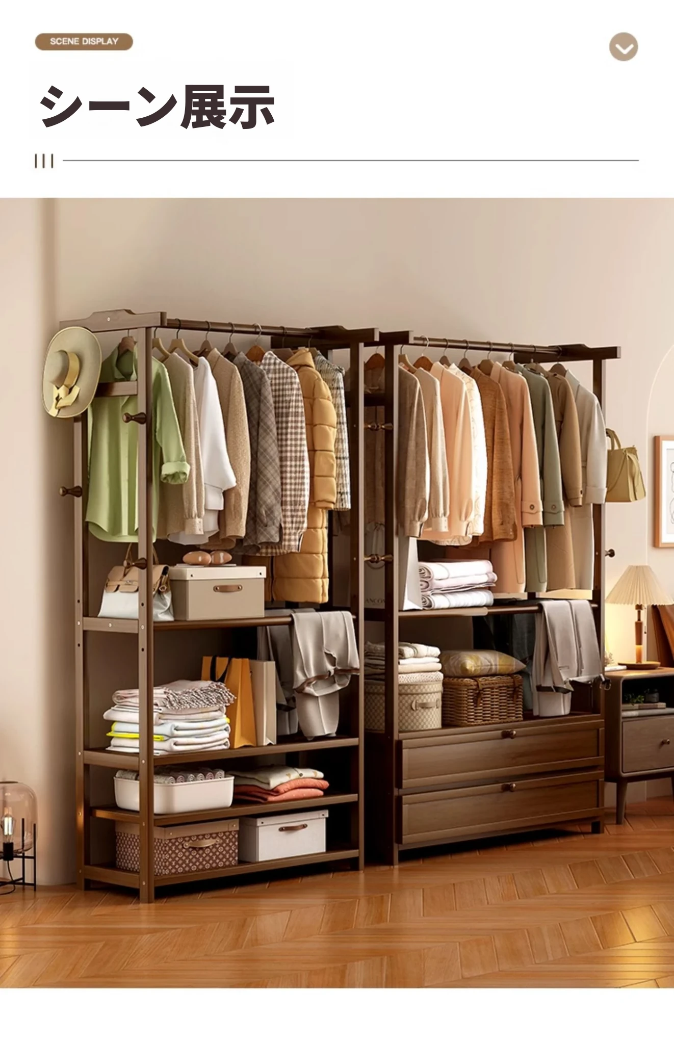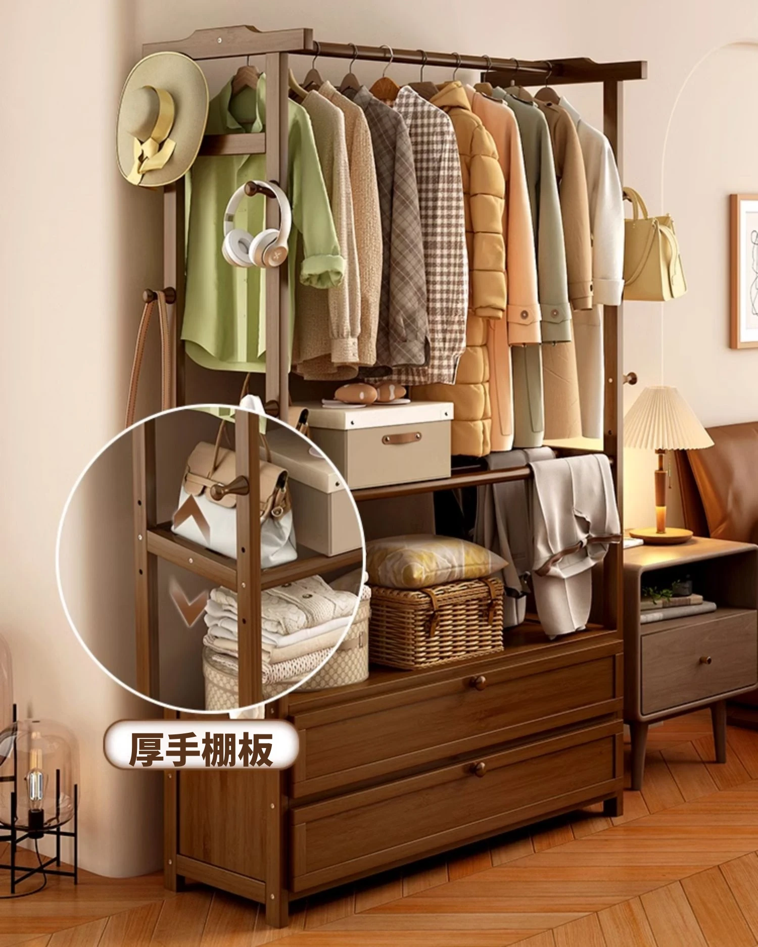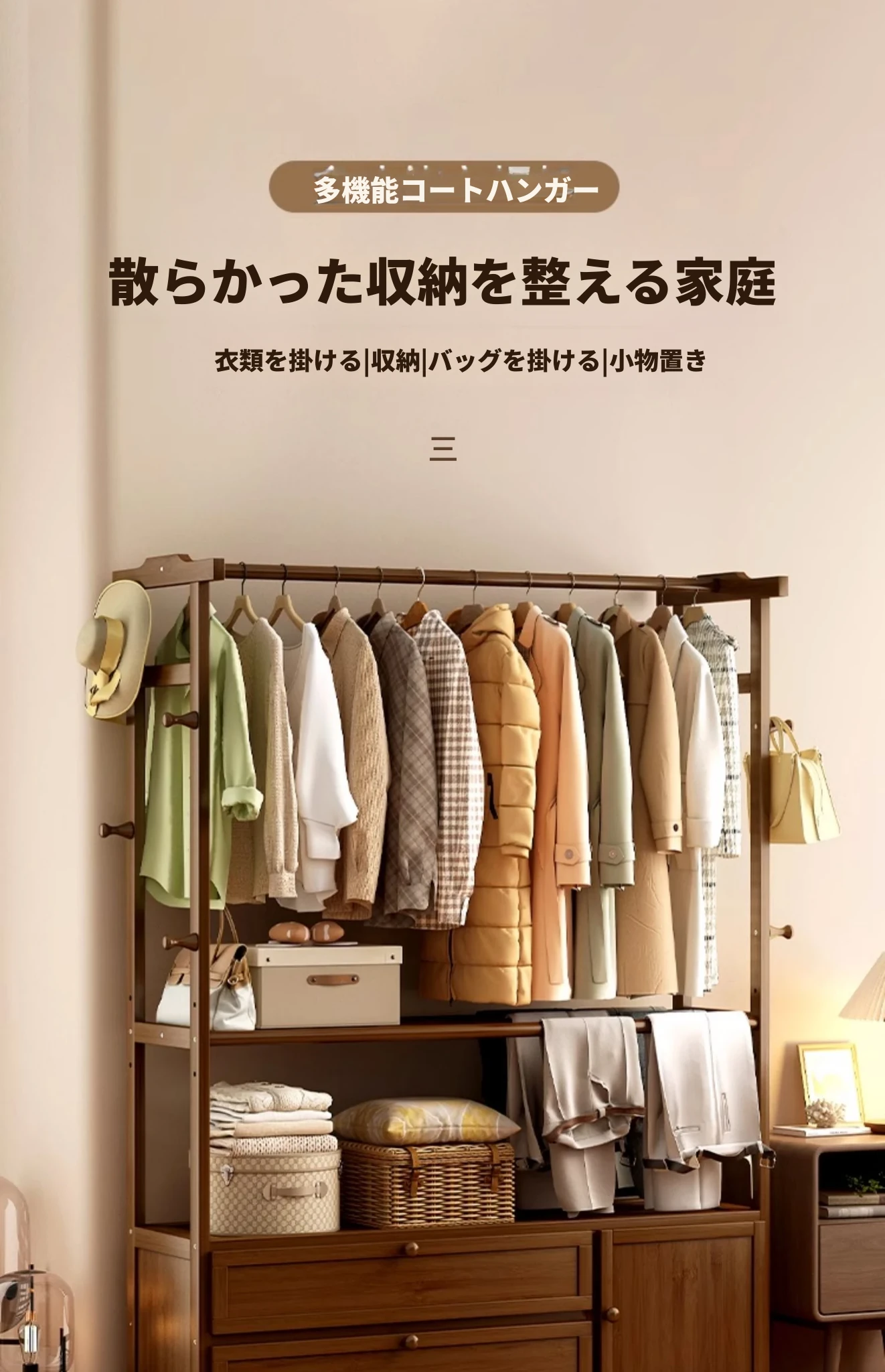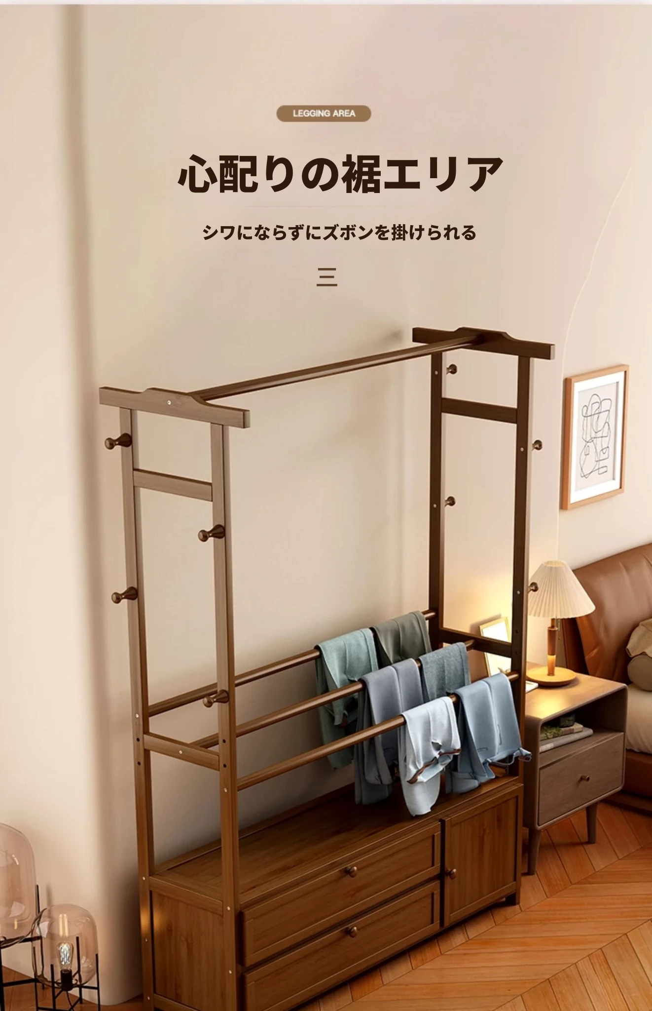 ベッドサイドに最適!夜に脱いだ服をさっと置ける便利な衣類ハンガー。おしゃれな天然木製で、寝室の収納をスッキリ整頓。あなたの生活をもっと快適にするアイテムです!