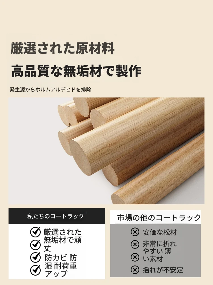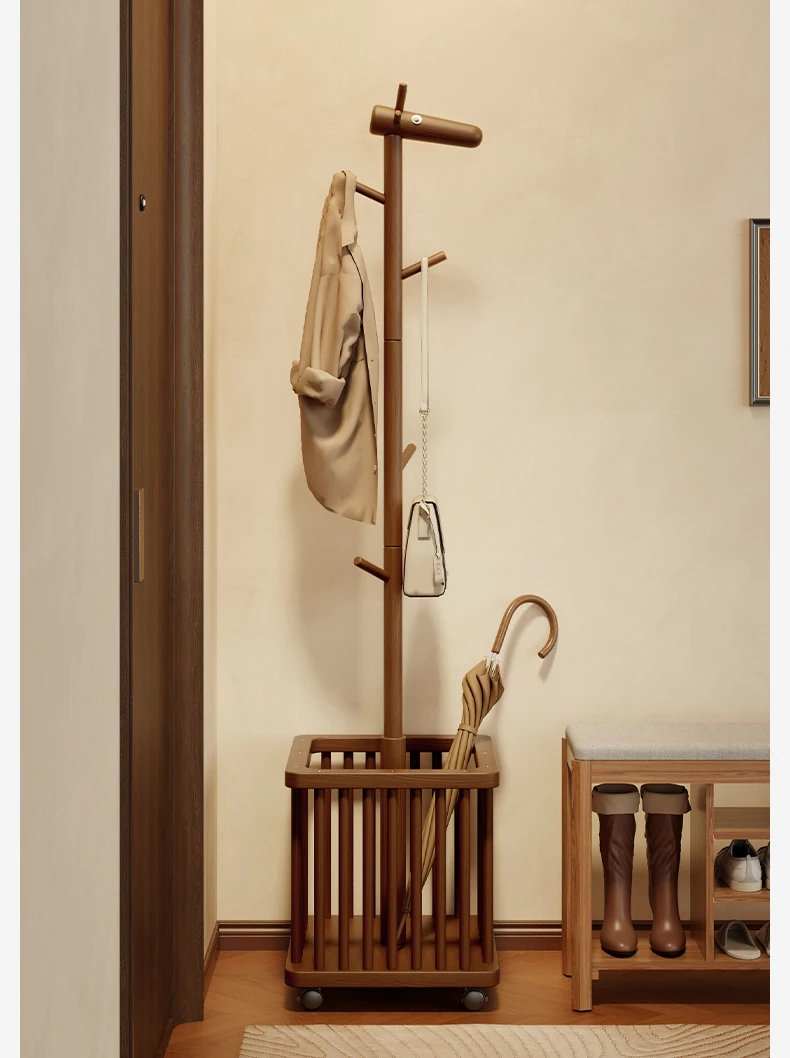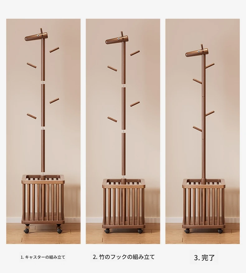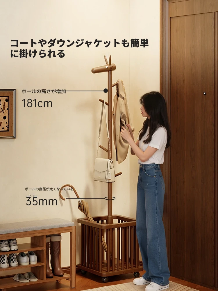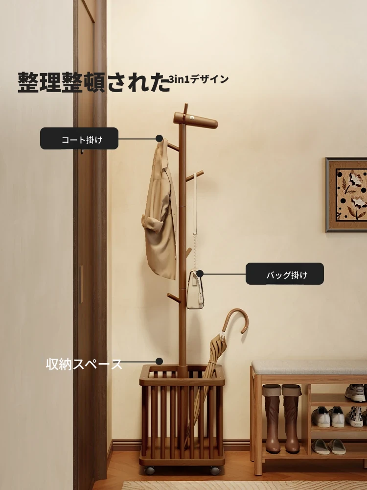 実木製の衣類ハンガー、家庭用玄関用・子供用衣類ラック、寝室にも最適!移動可能なキャスター付き、コンパクトで狭いスペースにもぴったりな収納ラック!あなたの生活空間をスタイリッシュに演出します!