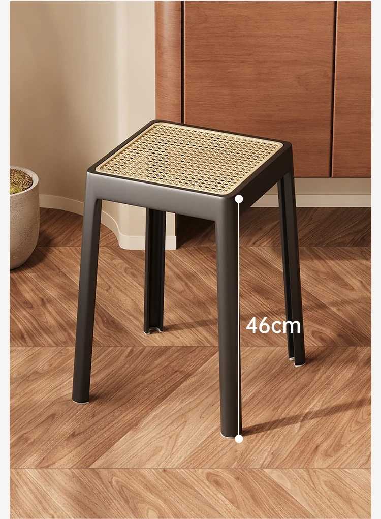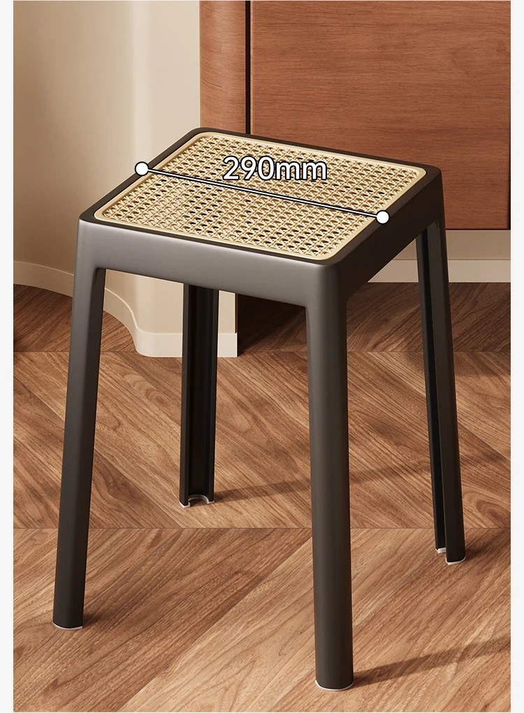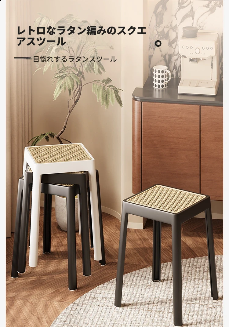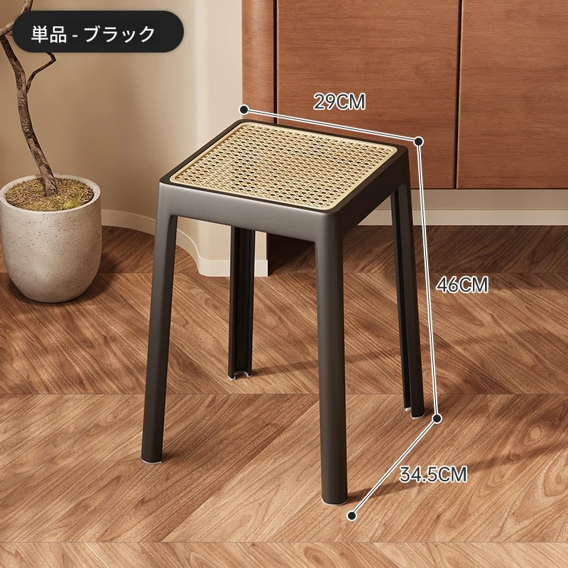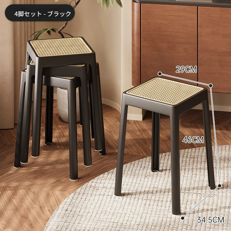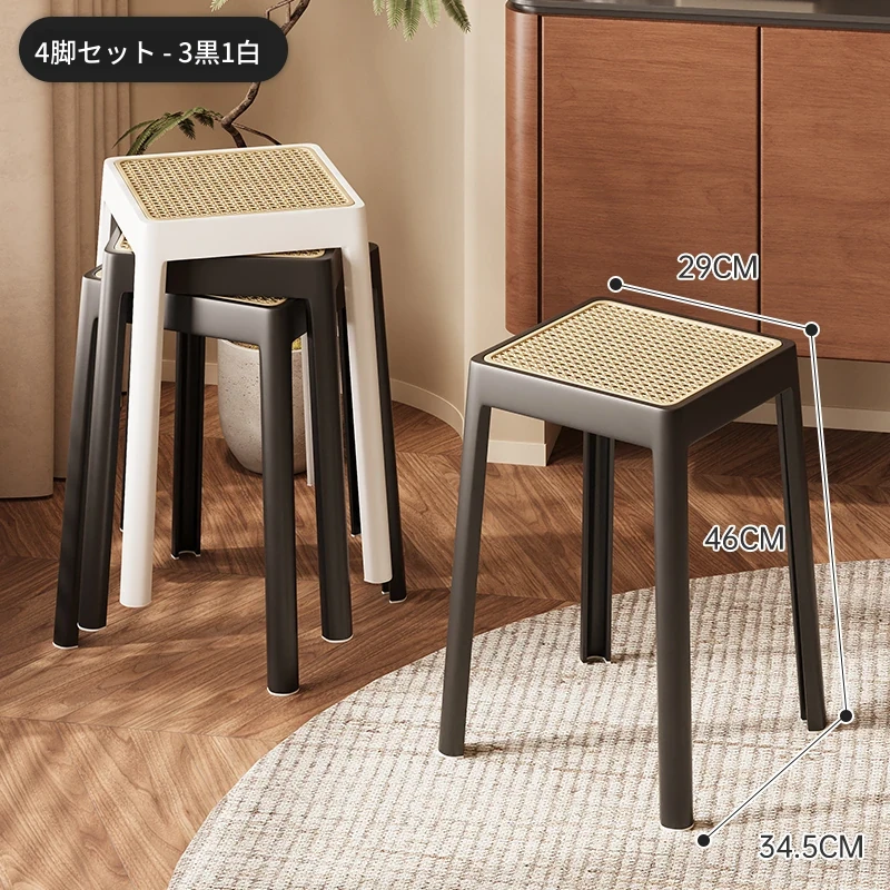⭐【4脚セット】3黒1白-ラタン製スクエアスツール【太い脚 承重500斤 高品質】