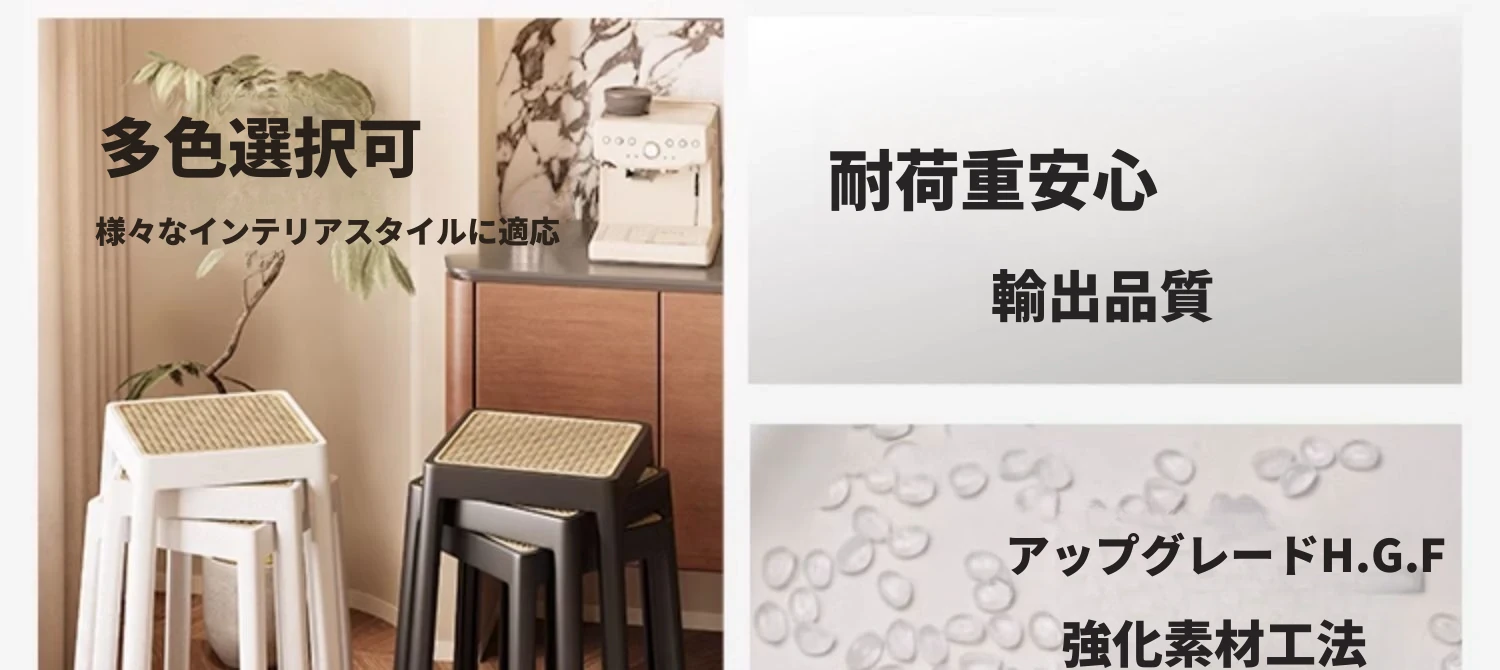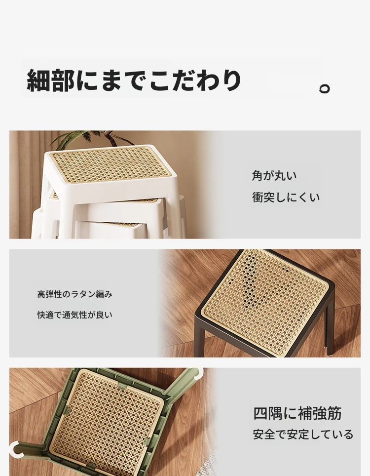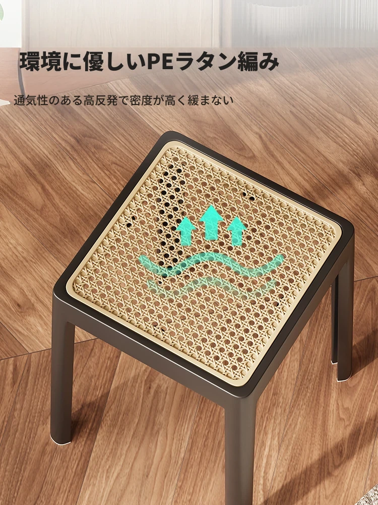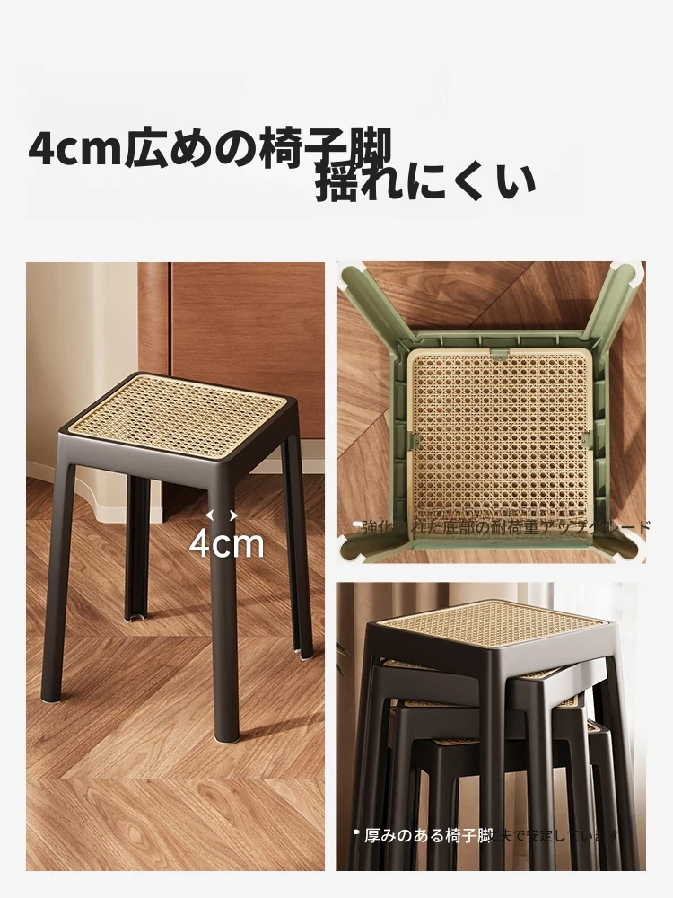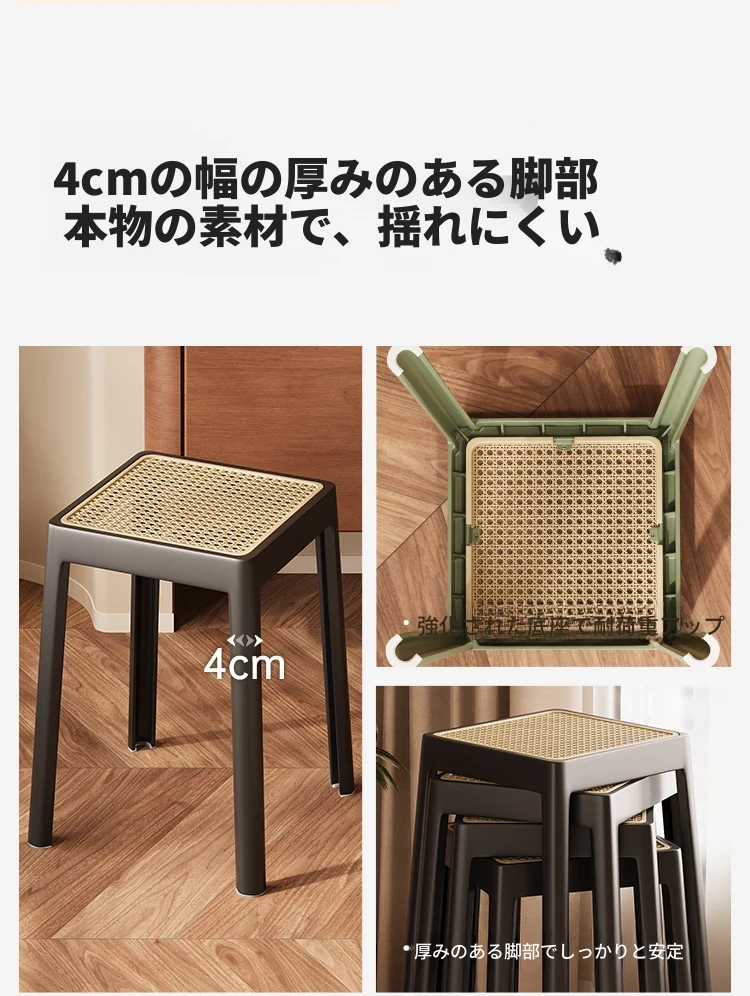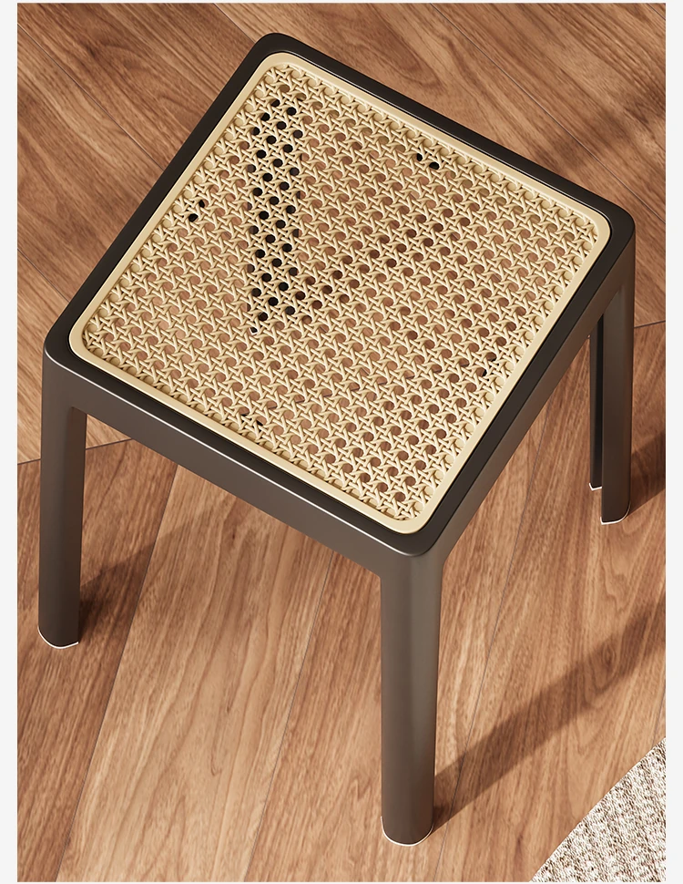 ⭐【4脚セット】3黒1白-ラタン製スクエアスツール【太い脚 承重500斤 高品質】