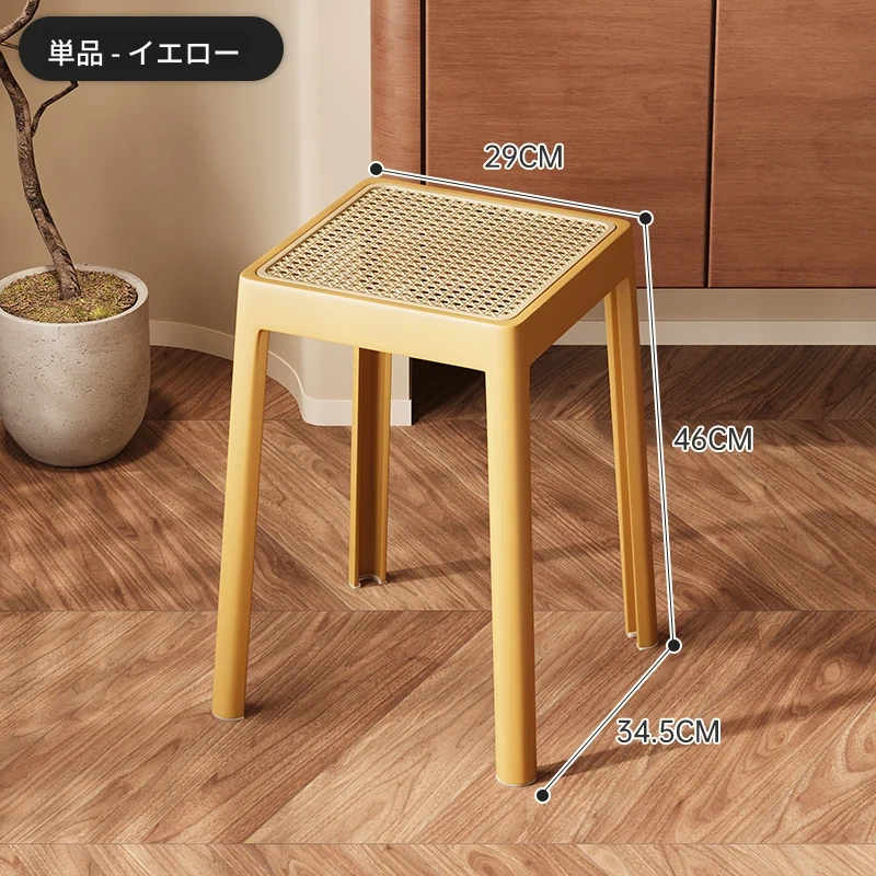 アンバーイエロー-ラタン製スクエアスツール【太い脚 承重500斤 高品質】