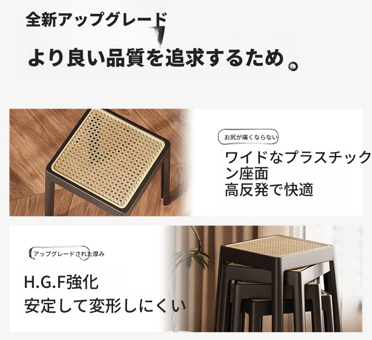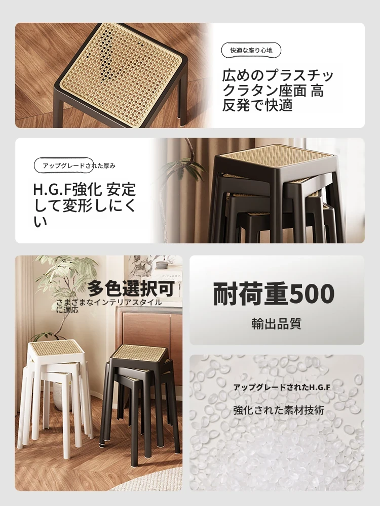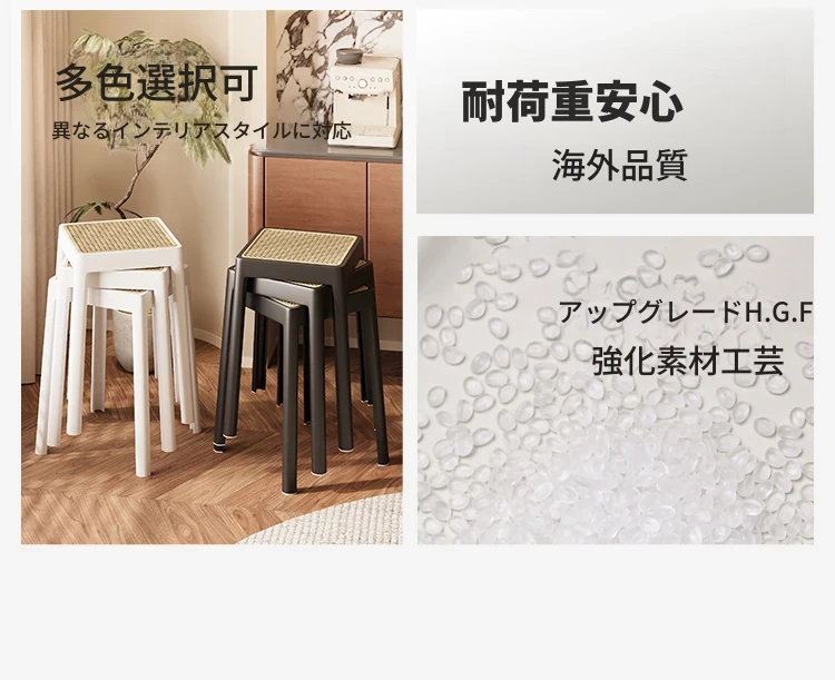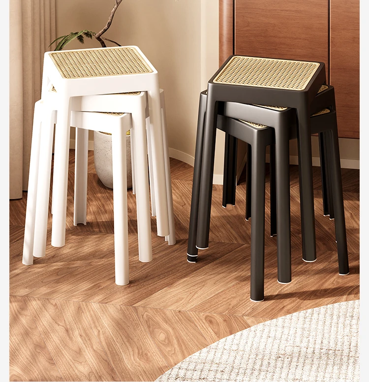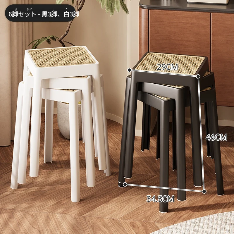 【6脚セット】3黒3白-ラタン製スクエアスツール【太い脚 承重500斤 高品質】