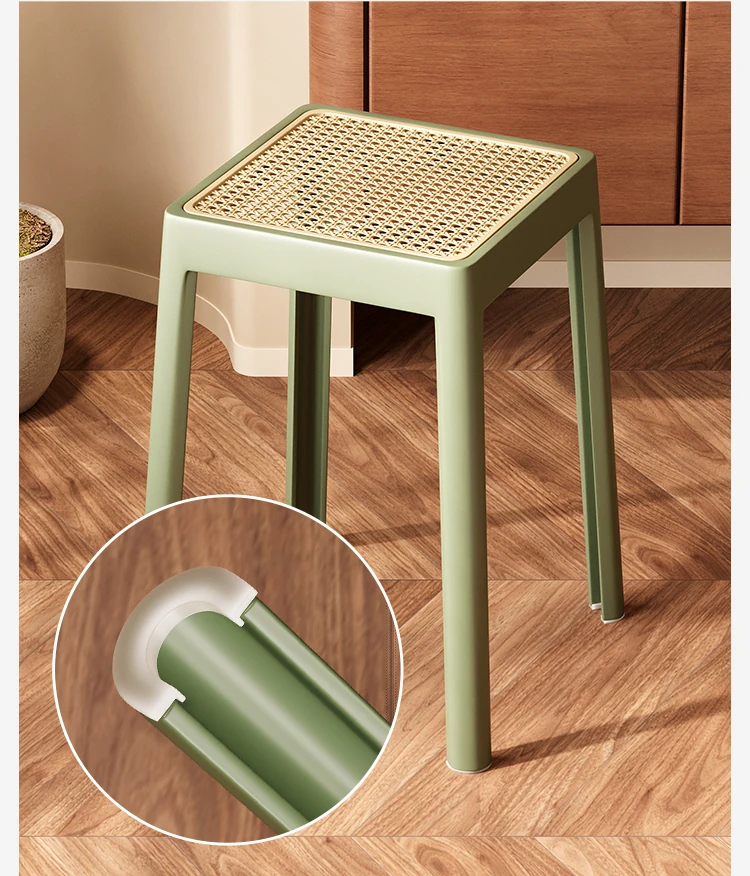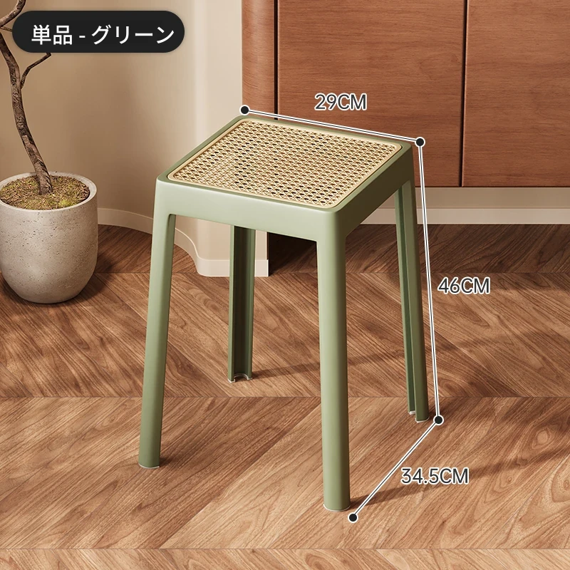 モスグリーン-ラタン製スクエアスツール【太い脚 承重500斤 高品質】