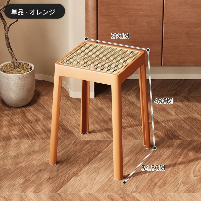 サンセットオレンジ-ラタン製スクエアスツール【太い脚 承重500斤 高品質】