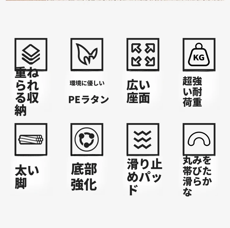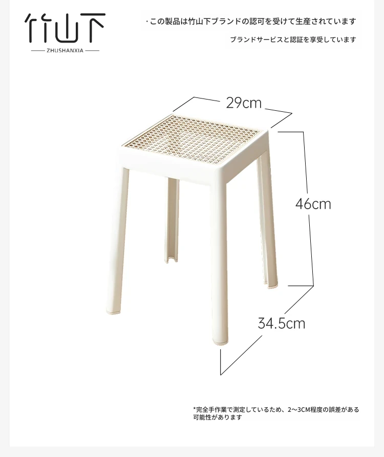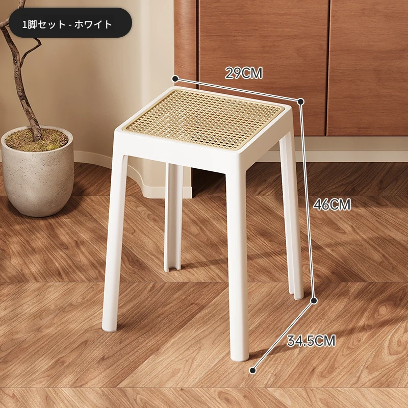 アイボリーホワイト-ラタン製スクエアスツール【太い脚 承重500斤 高品質】