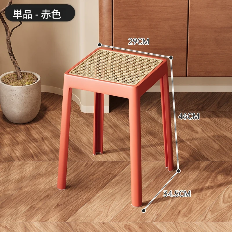 ペンシルレッド-ラタン製スクエアスツール【太い脚 承重500斤 高品質】