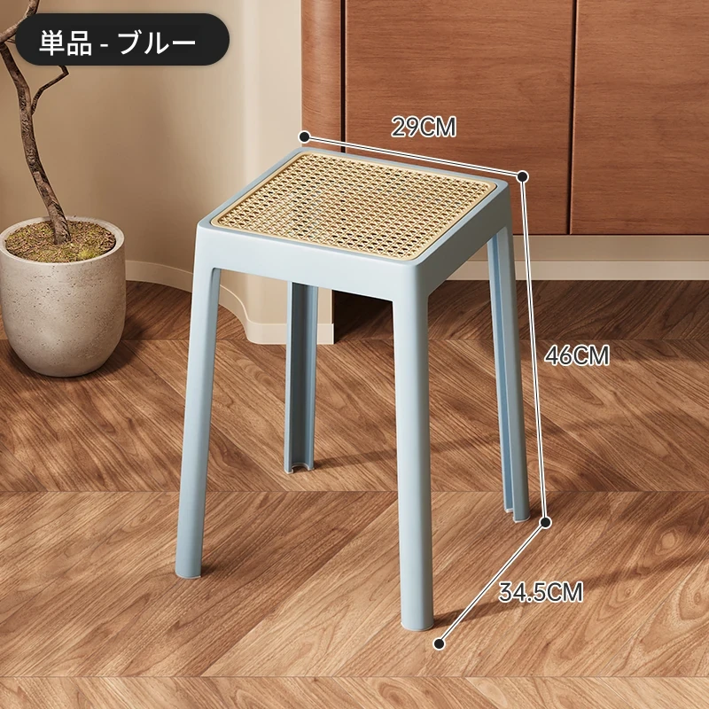 ウォッシュブルー-ラタン製スクエアスツール【太い脚 承重500斤 高品質】