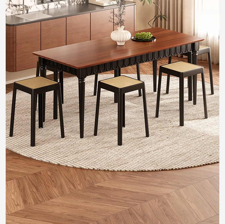 【4脚セット】レトロブラック-ラタン製スクエアスツール【太い脚 承重500斤 高品質】