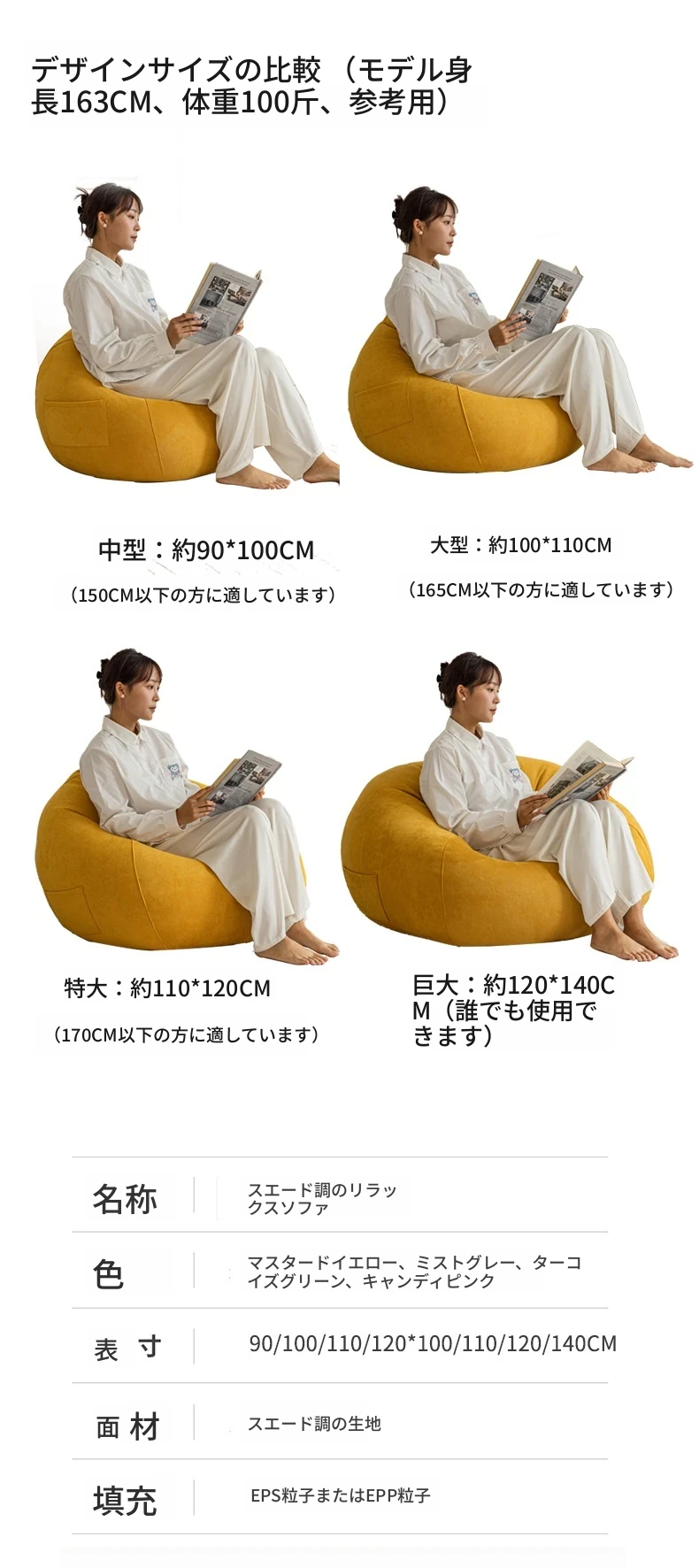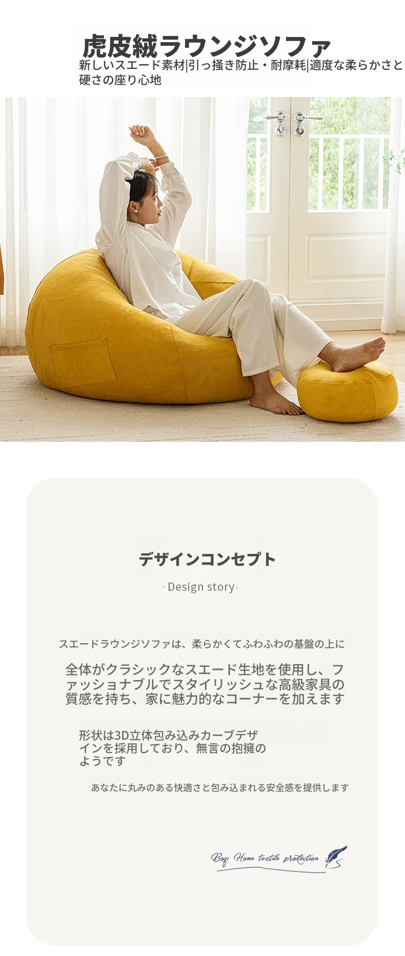 スエード調のリラックスソファ|一人用布製ソファ|リビング、寝室、バルコニーに最適|寝転びながらくつろげる多機能なラウンジチェア✨あなたのくつろぎ空間を演出します!