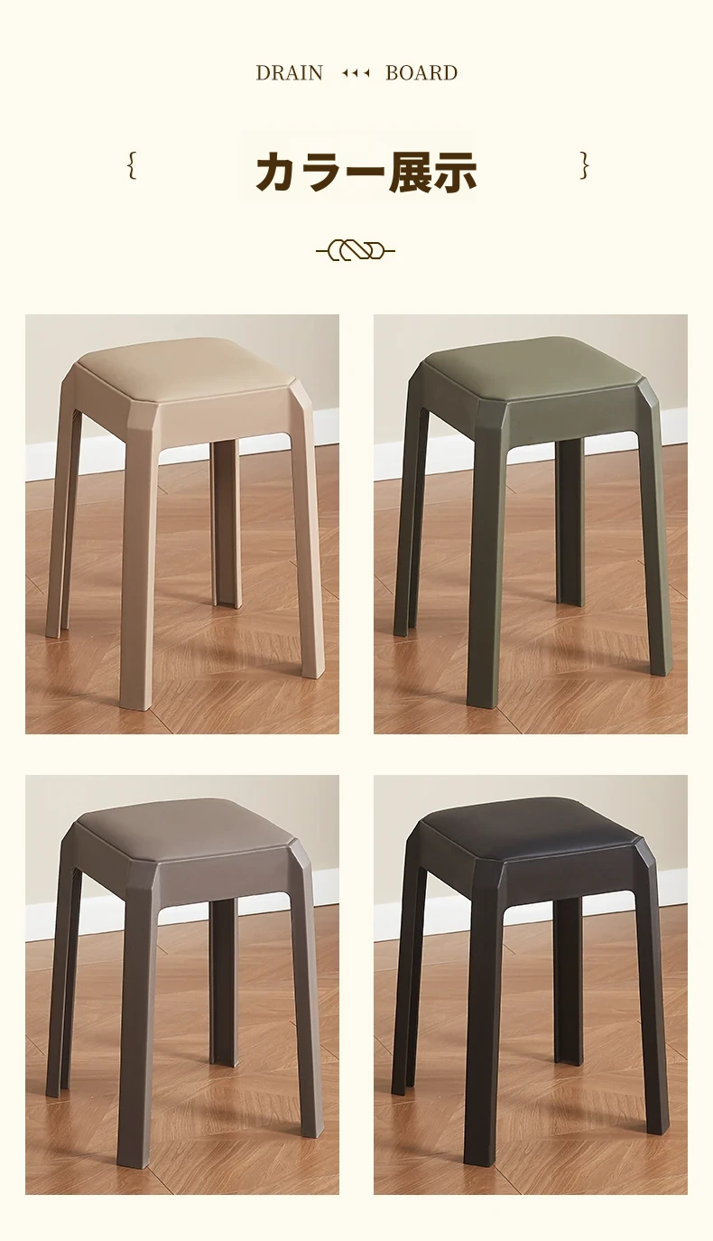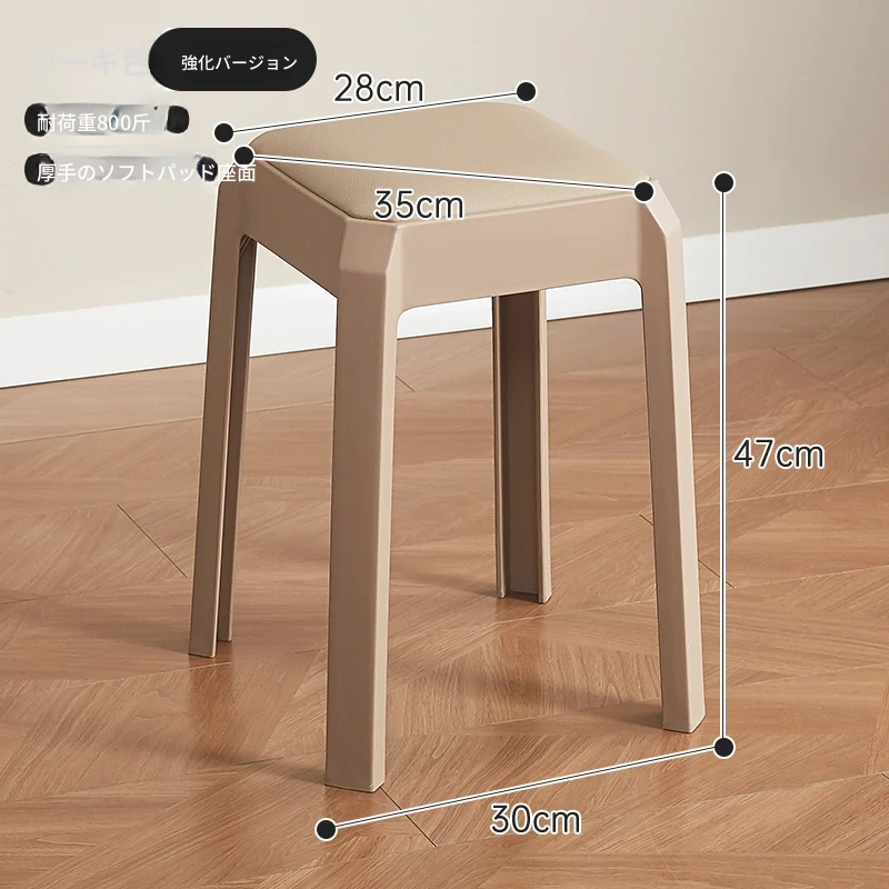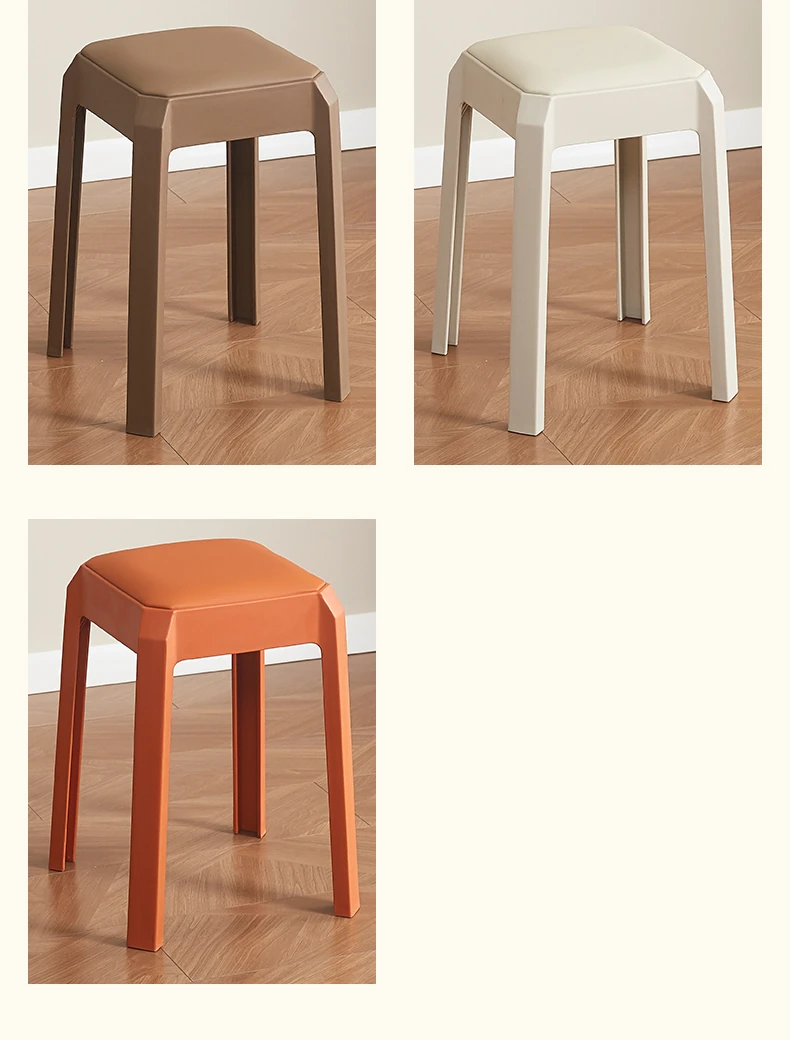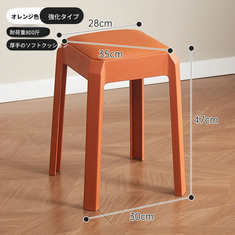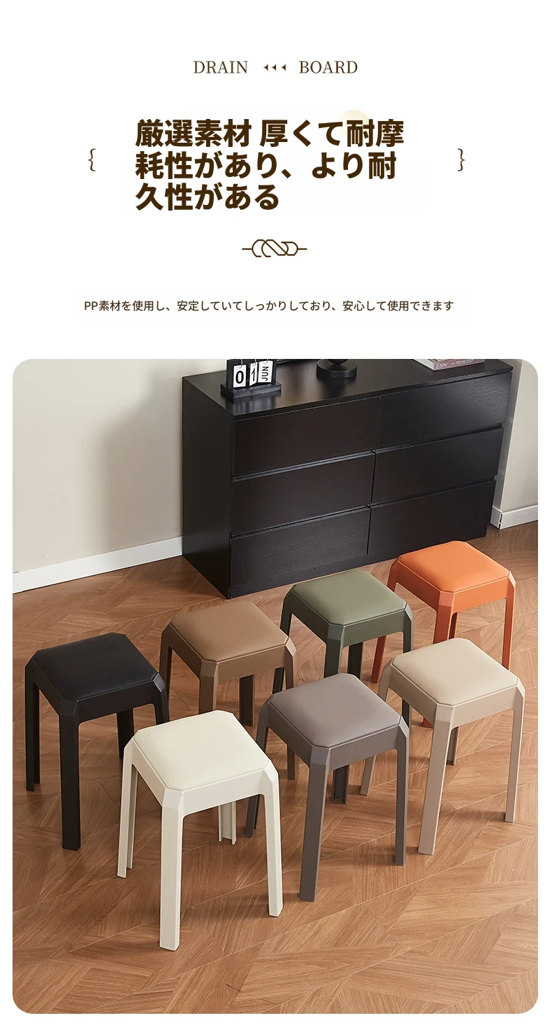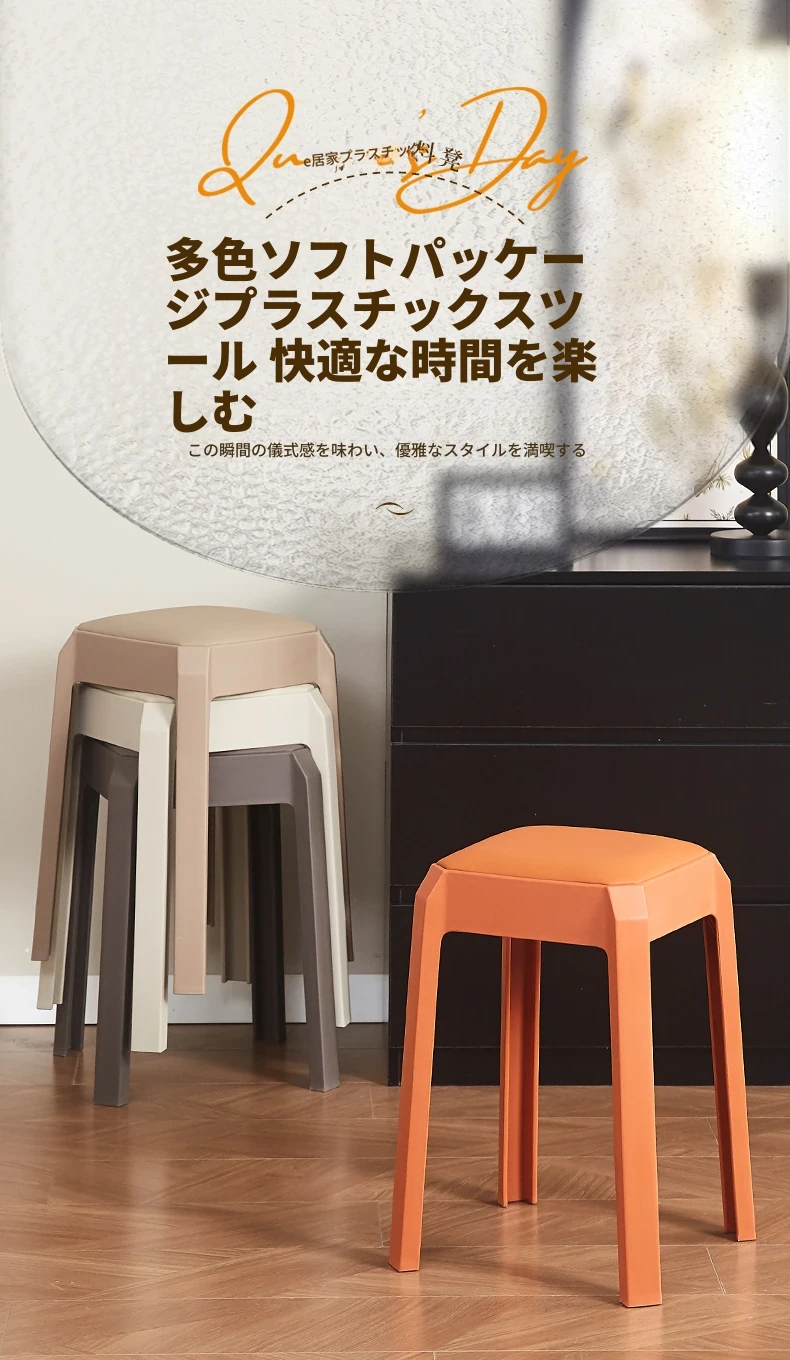 厚手プラスチック製、スタッキング可能なソフトパッド付きスクエアスツール!モダンでシンプルなデザイン、リビングやダイニングに最適。快適さと実用性を兼ね備えた高座椅子で、家族や友人との食事をより楽しいものにします!
