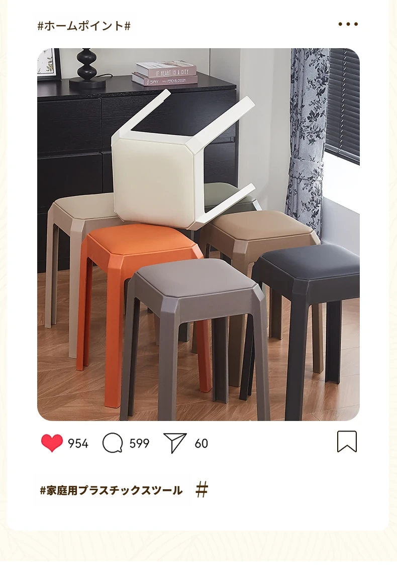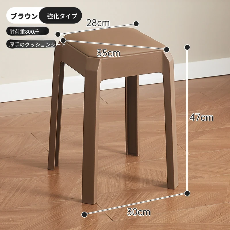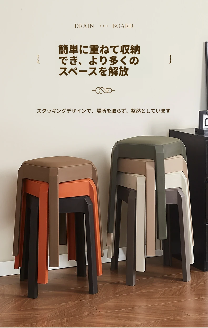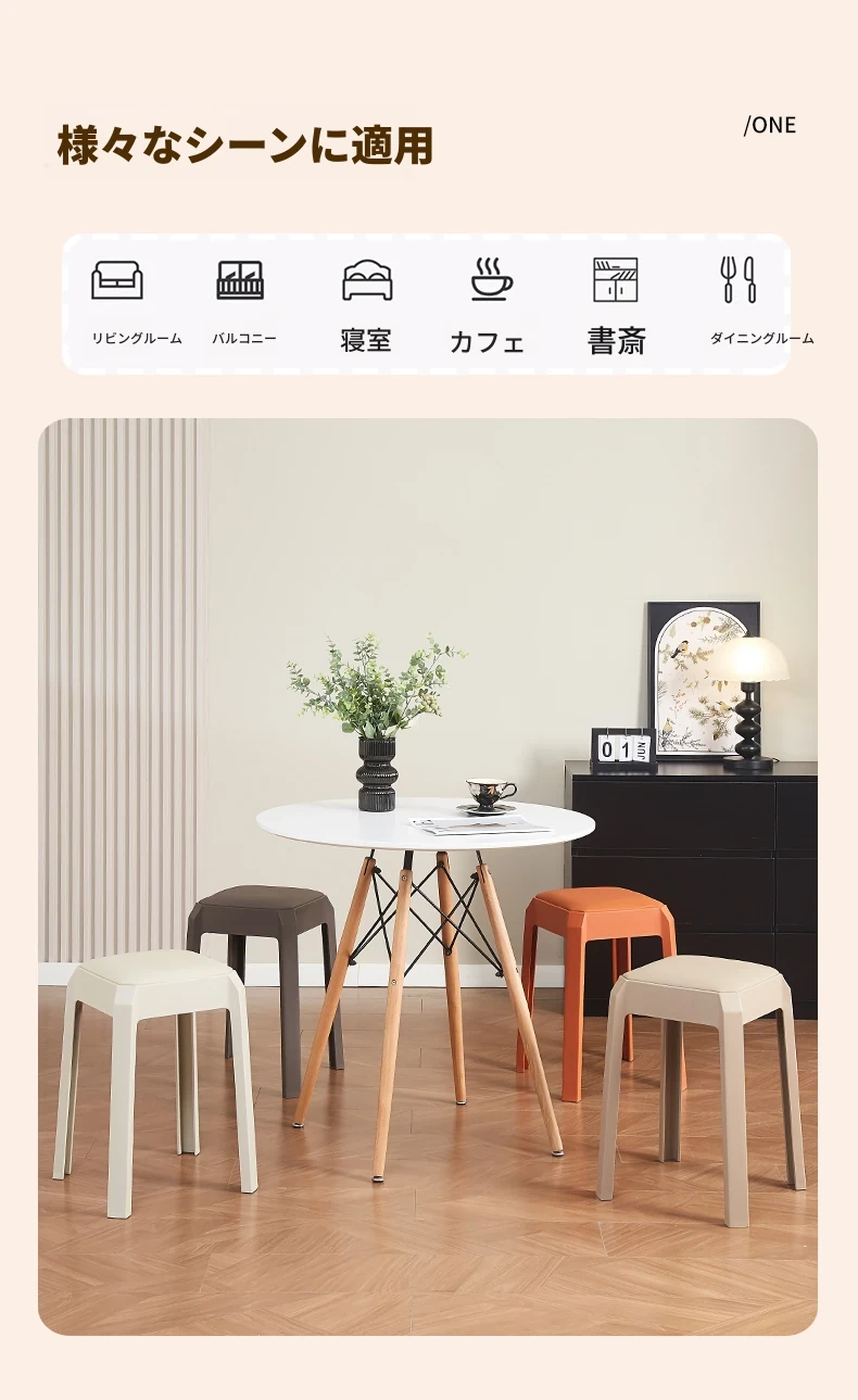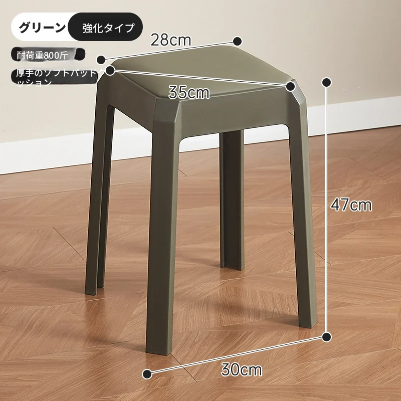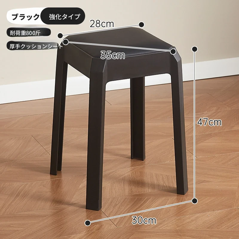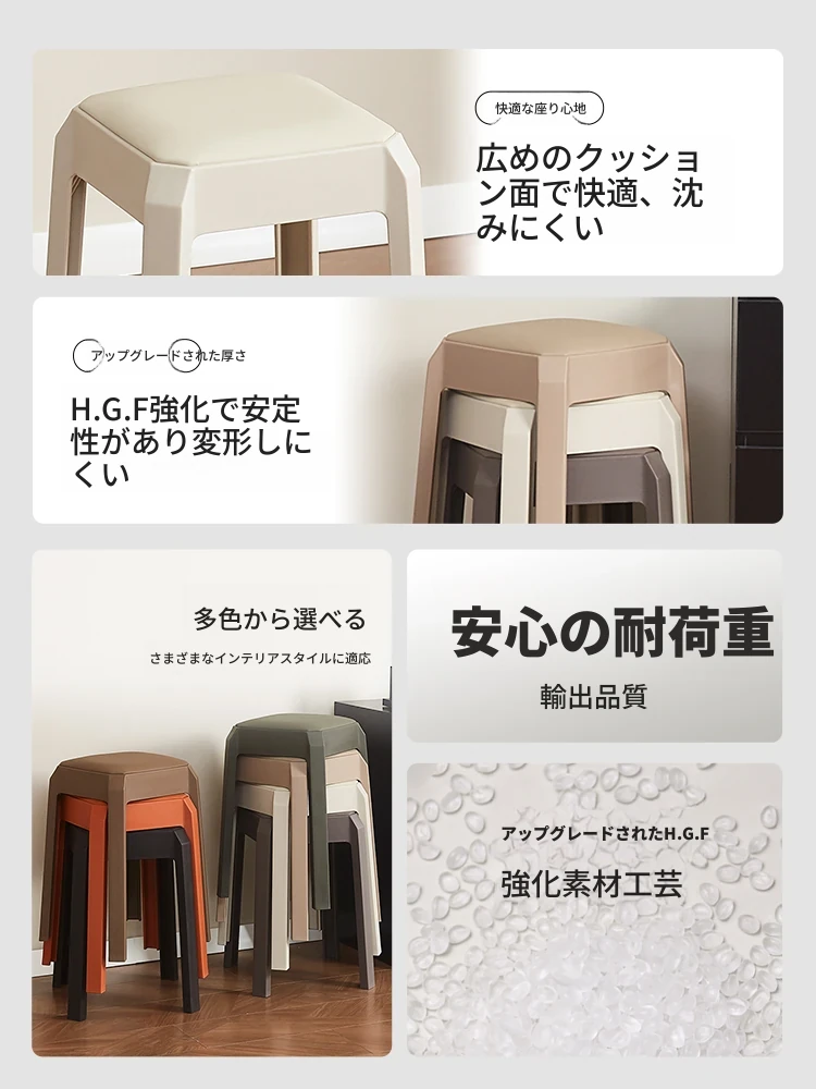 厚手プラスチック製、スタッキング可能なソフトパッド付きスクエアスツール!モダンでシンプルなデザイン、リビングやダイニングに最適。快適さと実用性を兼ね備えた高座椅子で、家族や友人との食事をより楽しいものにします!