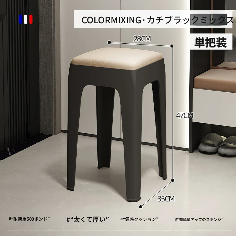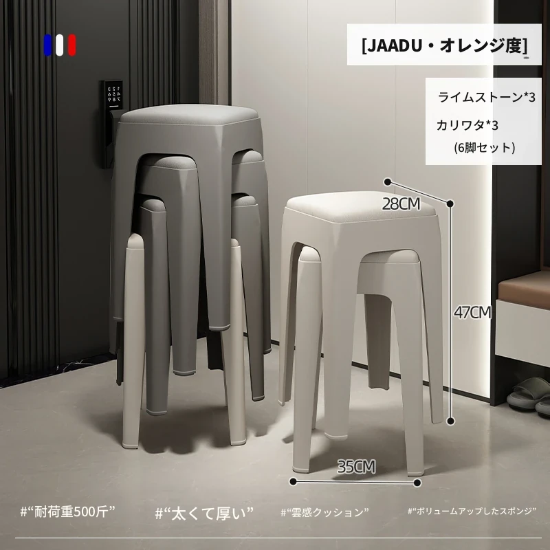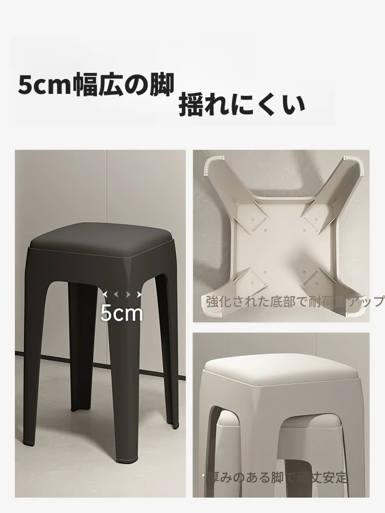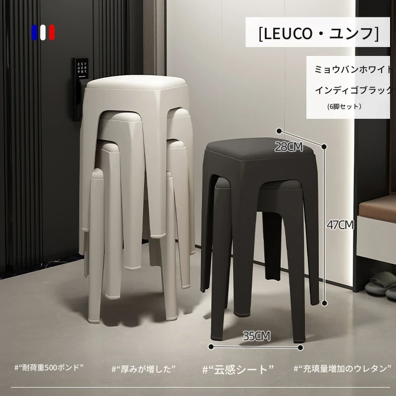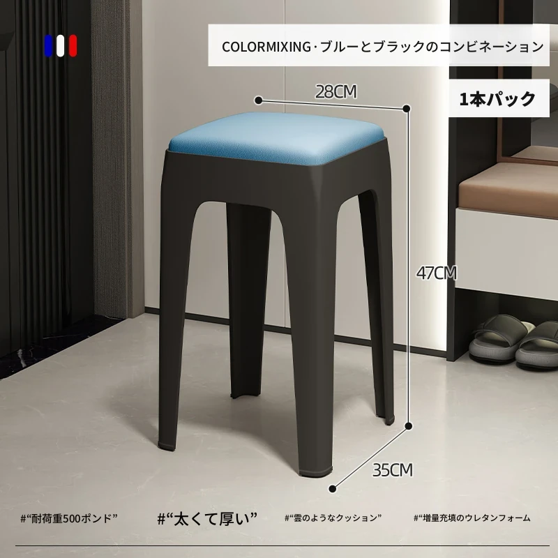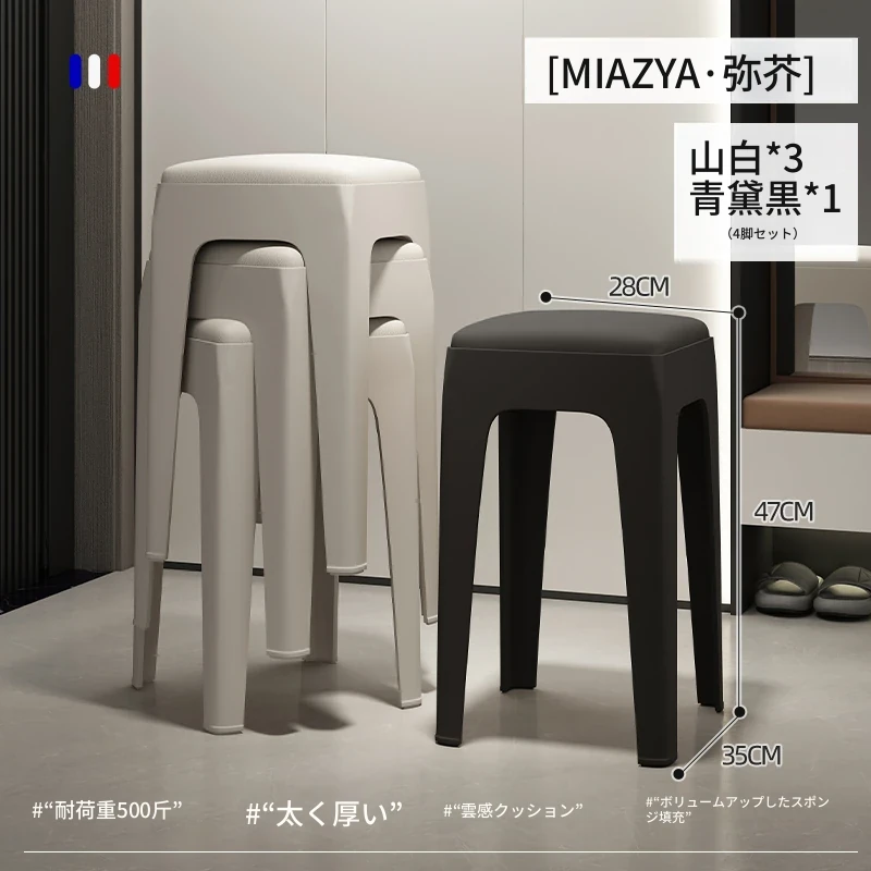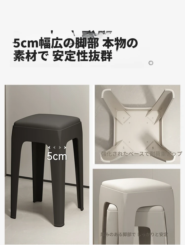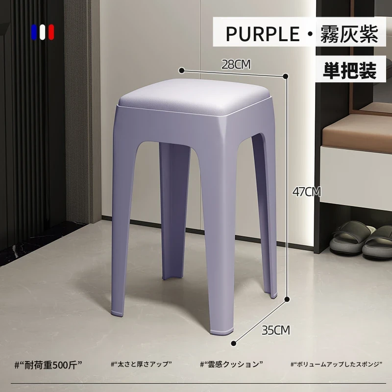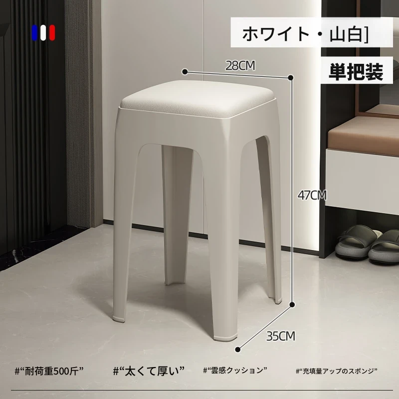 家庭用に最適!厚手のプラスチック製スタッキングソフトパッドスツール - モダンでシンプルなデザイン、快適な高椅子。ダイニングテーブルにぴったりな四角いスツールです。