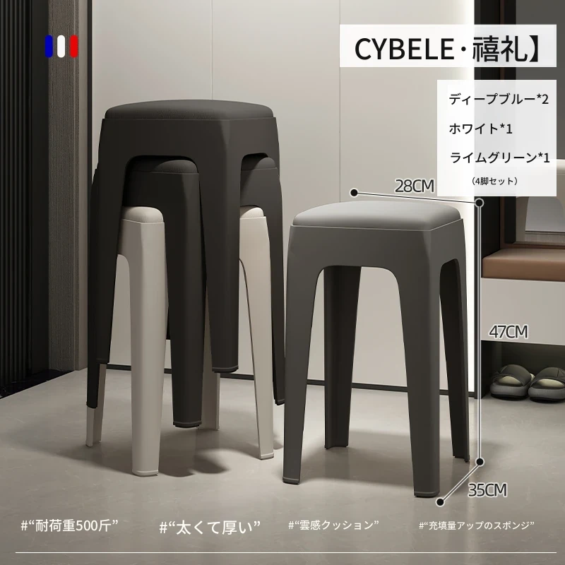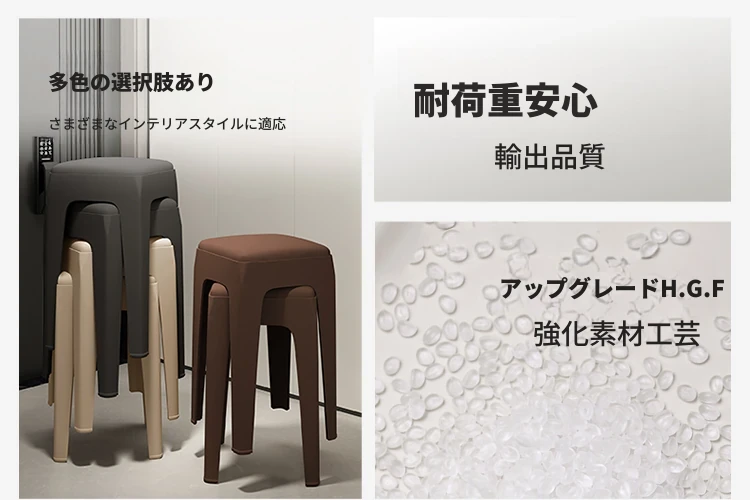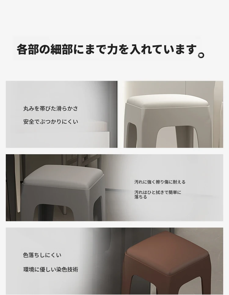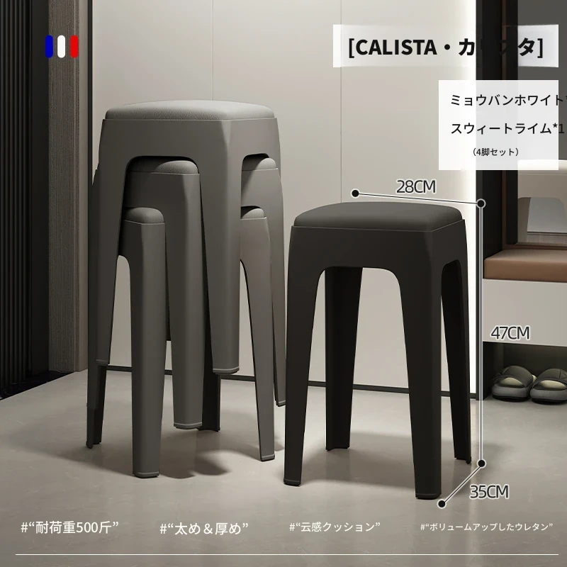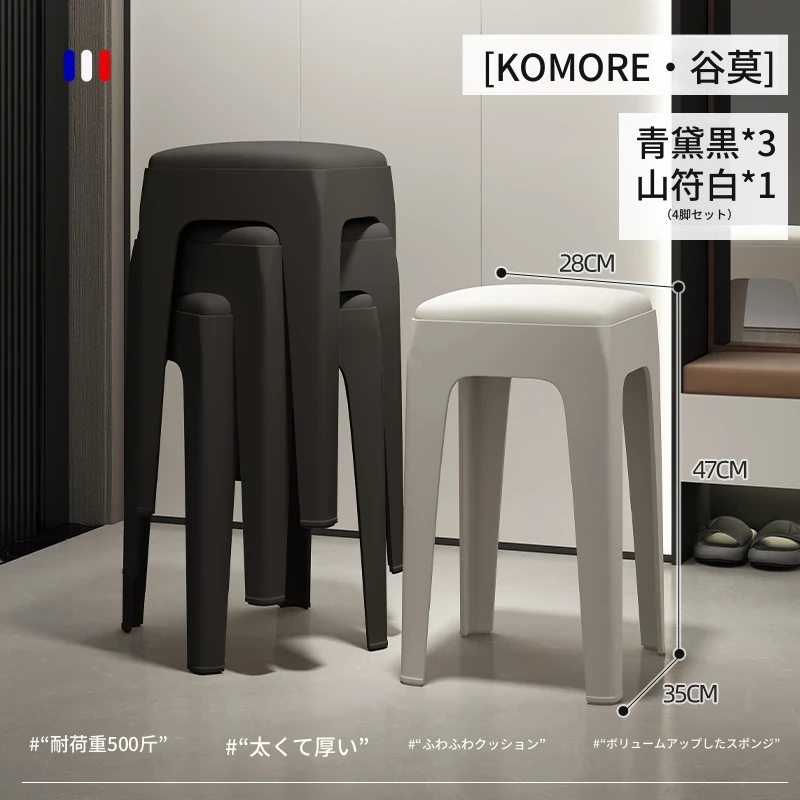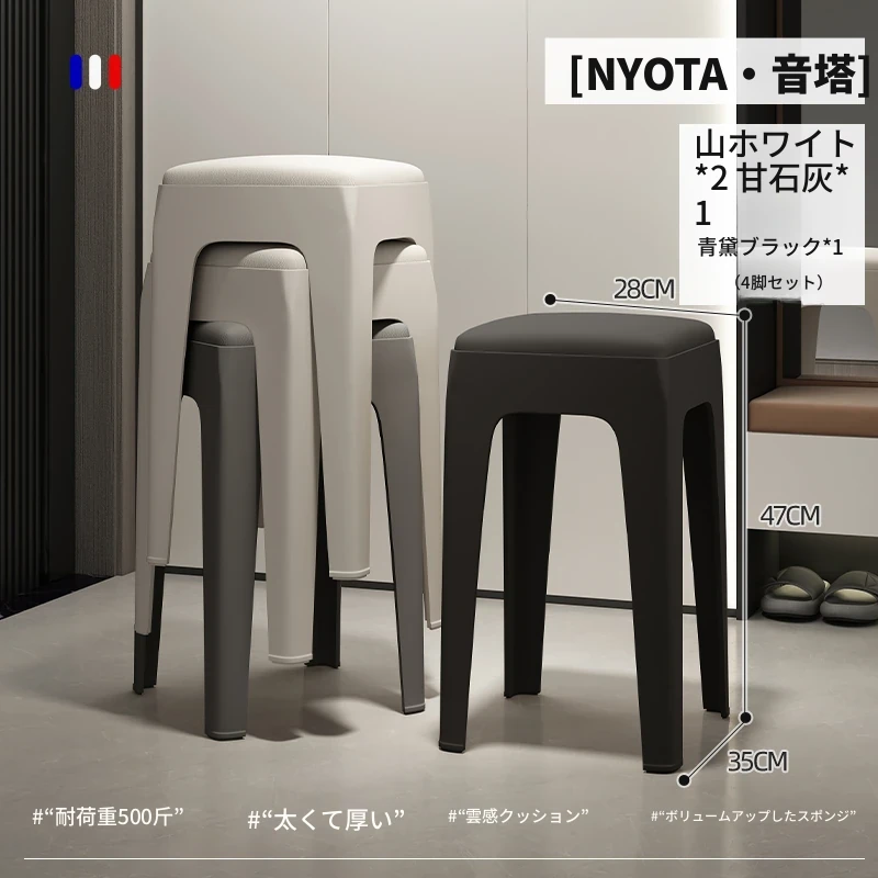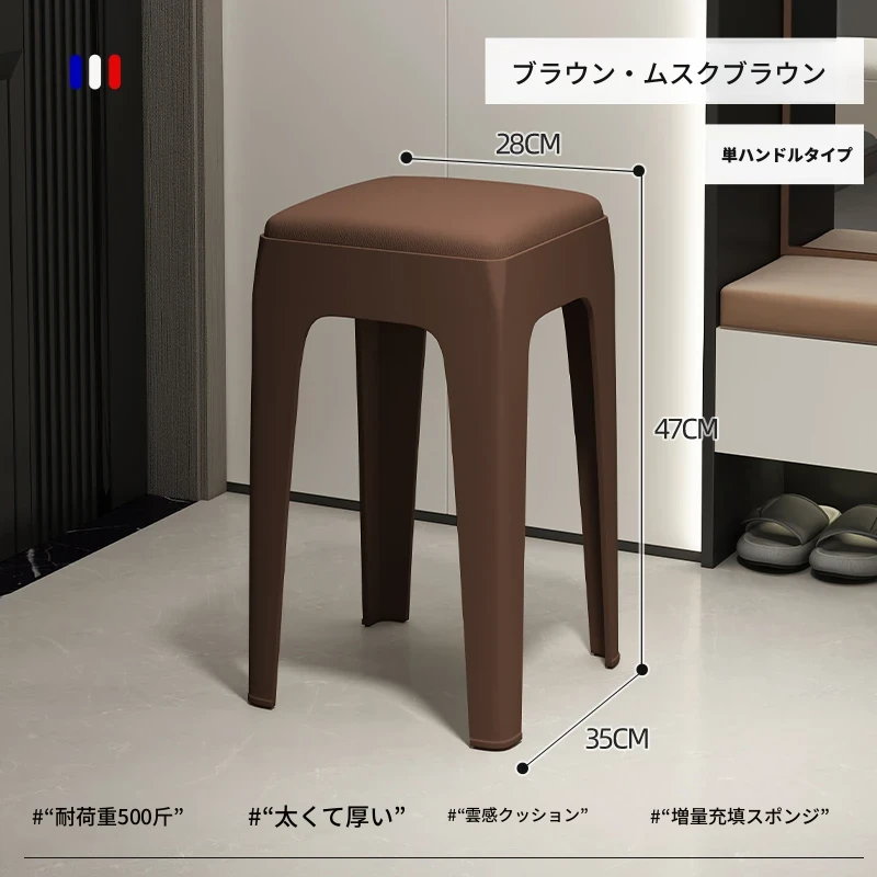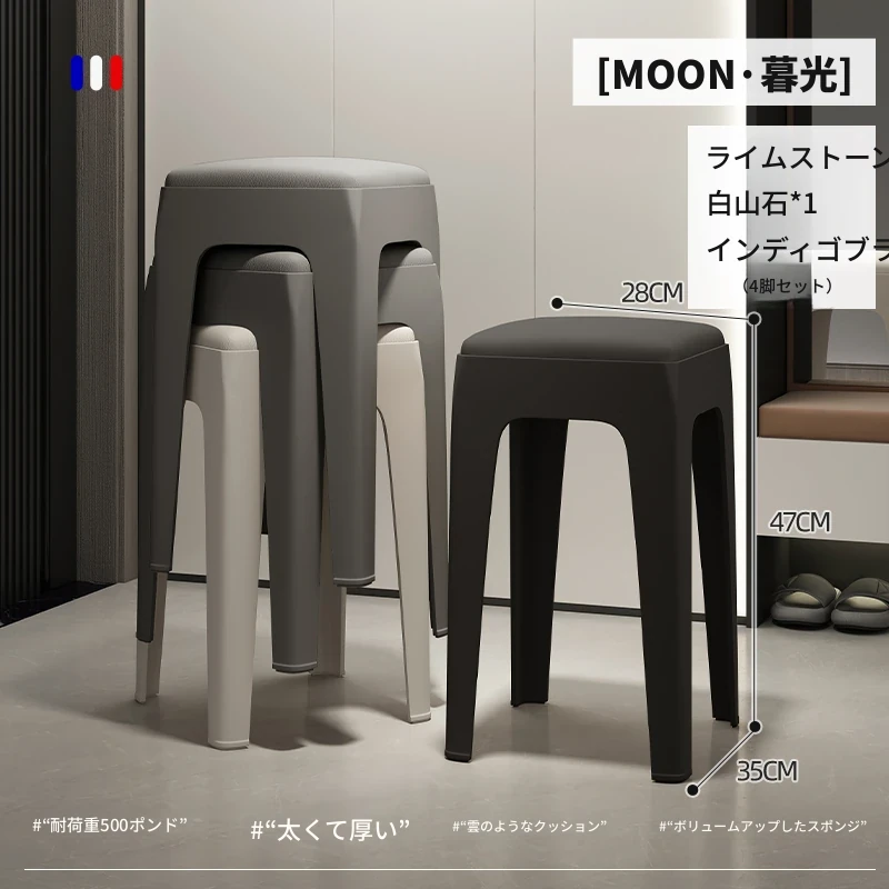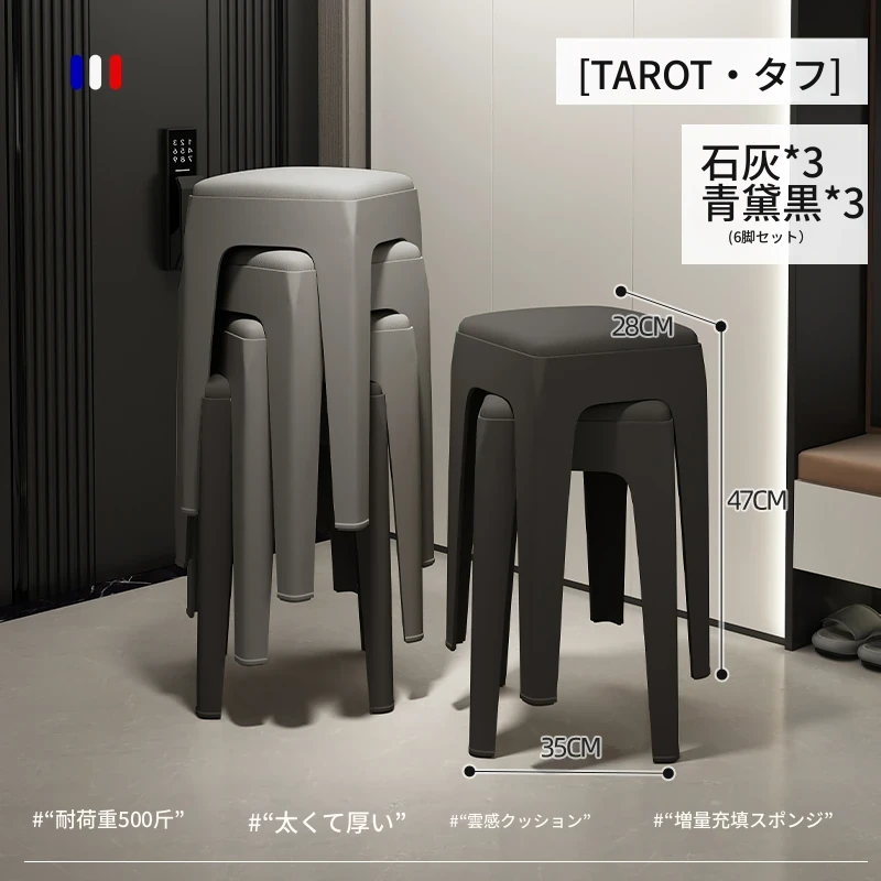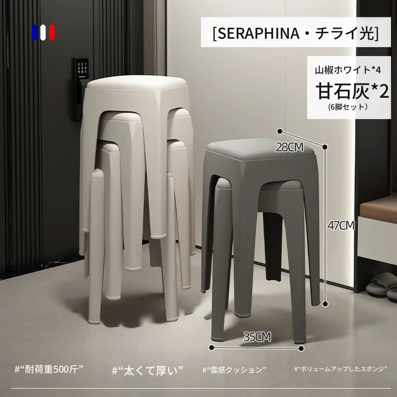 家庭用に最適!厚手のプラスチック製スタッキングソフトパッドスツール - モダンでシンプルなデザイン、快適な高椅子。ダイニングテーブルにぴったりな四角いスツールです。
