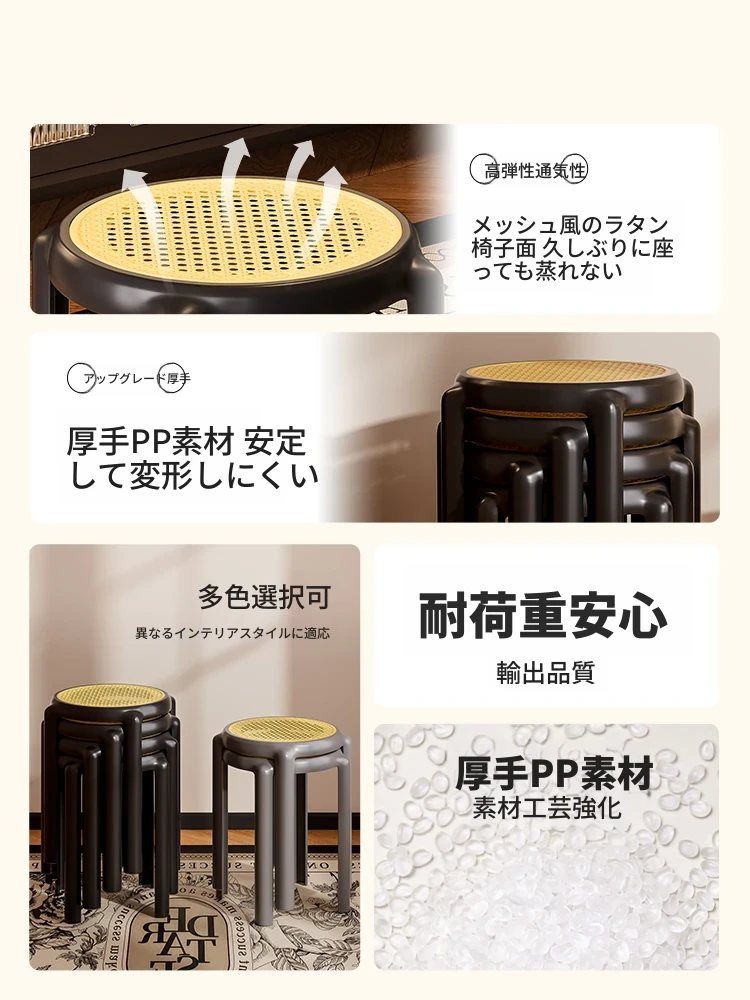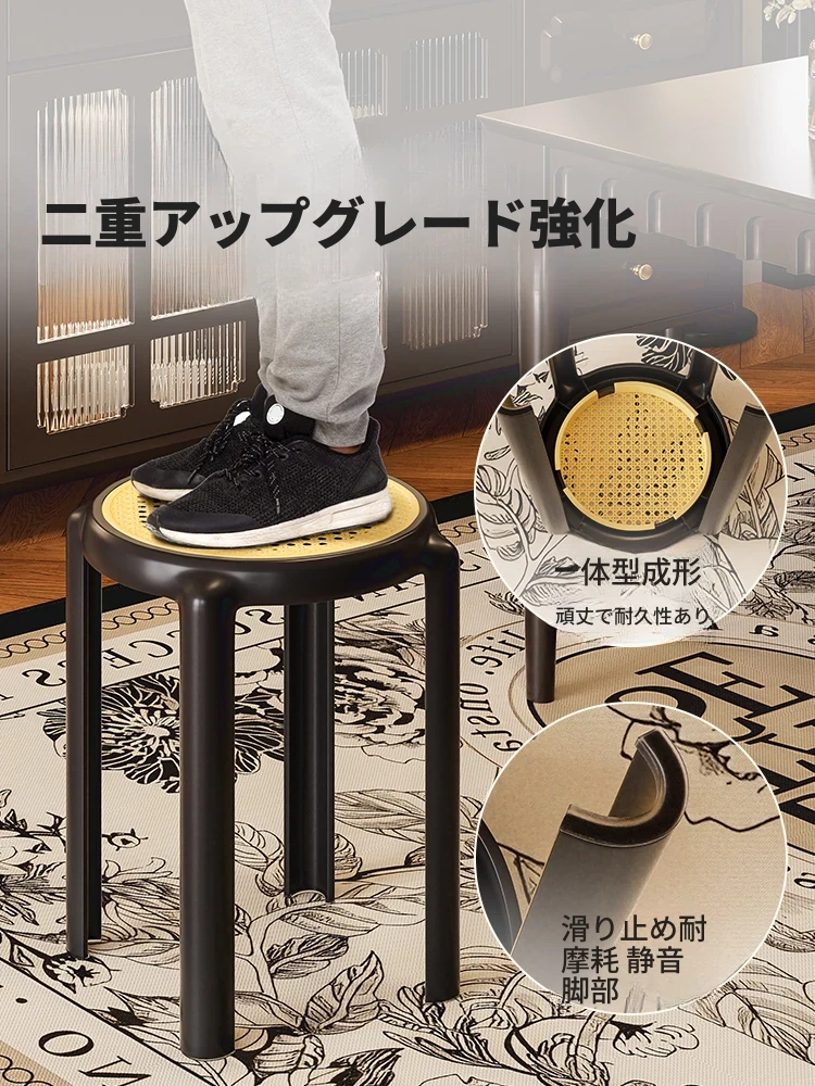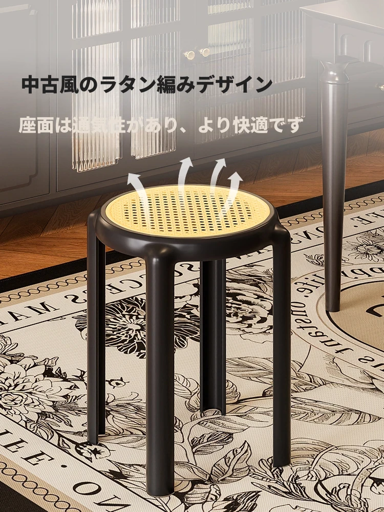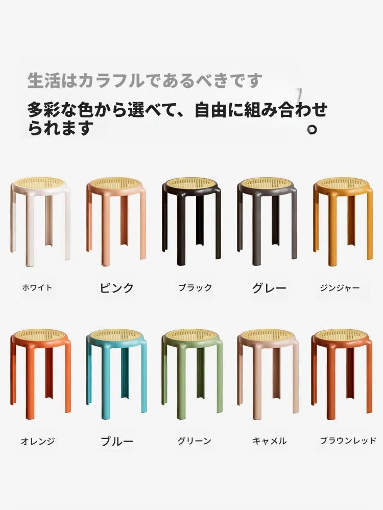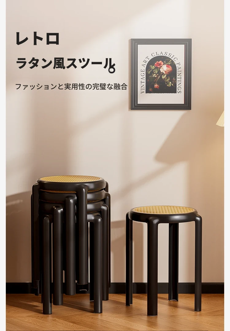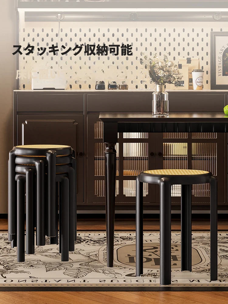 厚手のプラスチック製中古スツール、スタッキング可能なレトロなラウンドベンチ。家庭用、リビングやダイニングテーブルのサブチェアに最適!おしゃれで使い勝手抜群!