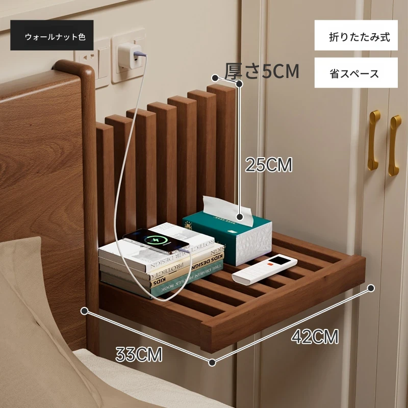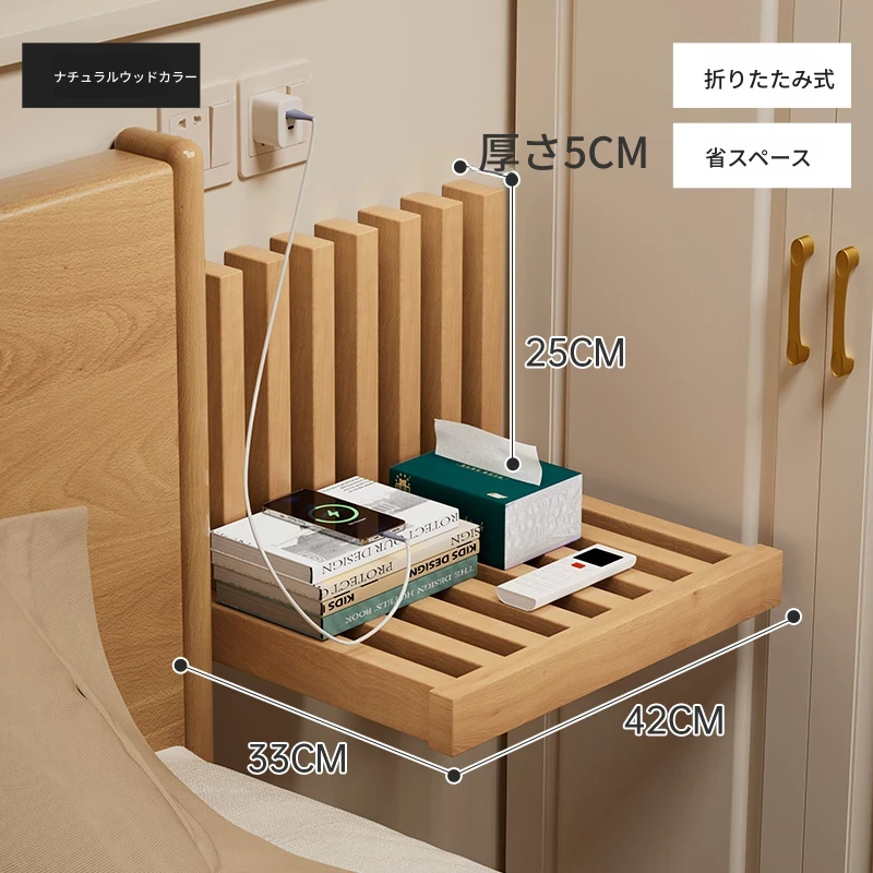 折りたたみ式ベッドサイドキャビネット!狭いお部屋にもぴったりな、隠れた浮遊感のある天然木製収納ラック。おしゃれで機能的、あなたの寝室をスッキリ整頓!