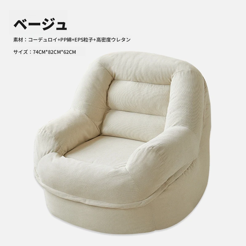 【アイボリー】粒タイプ-肌触りの良い柔らかいコーデュロイ-取り外し可能-一人用