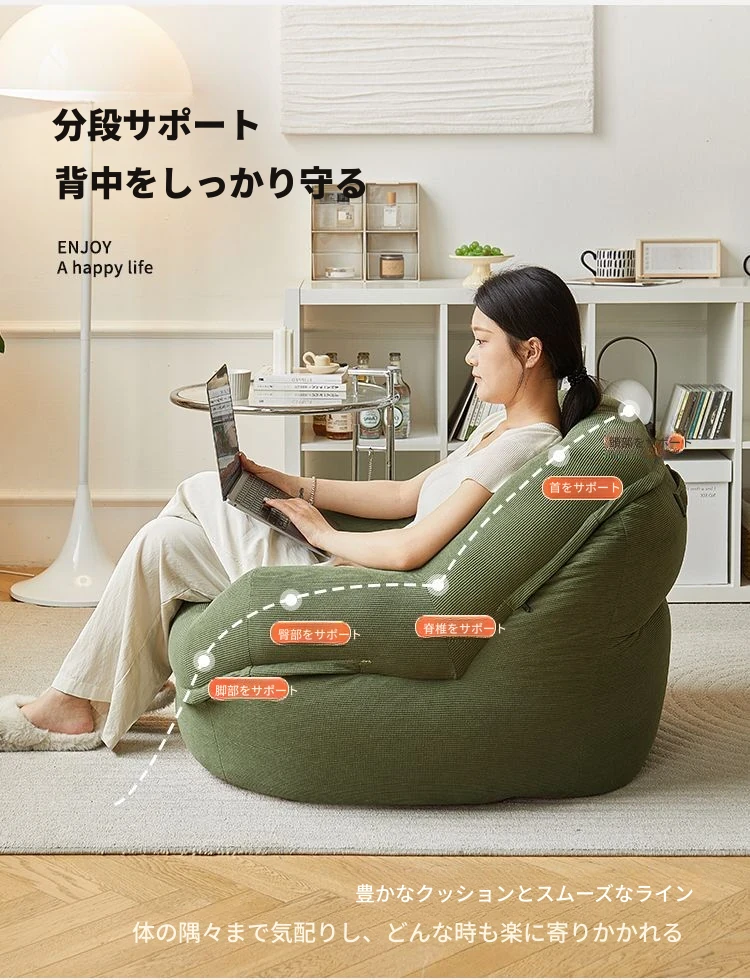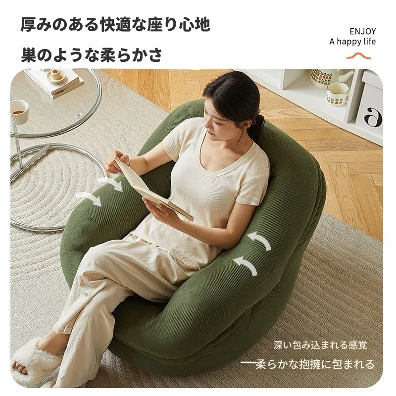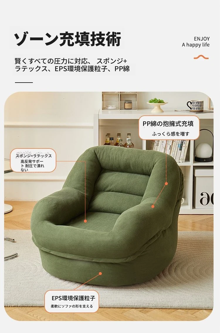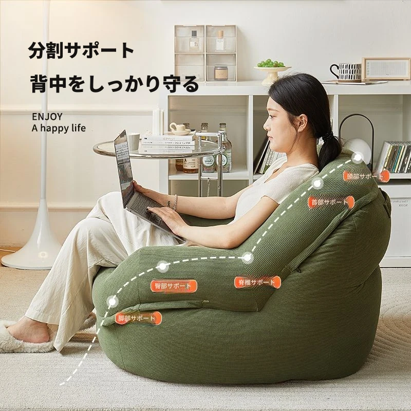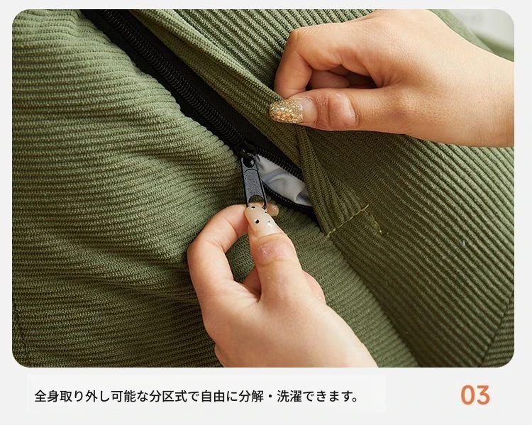 【オリーブグリーン】粒タイプ-肌触りの良い柔らかいコーデュロイ-取り外し可能-一人用