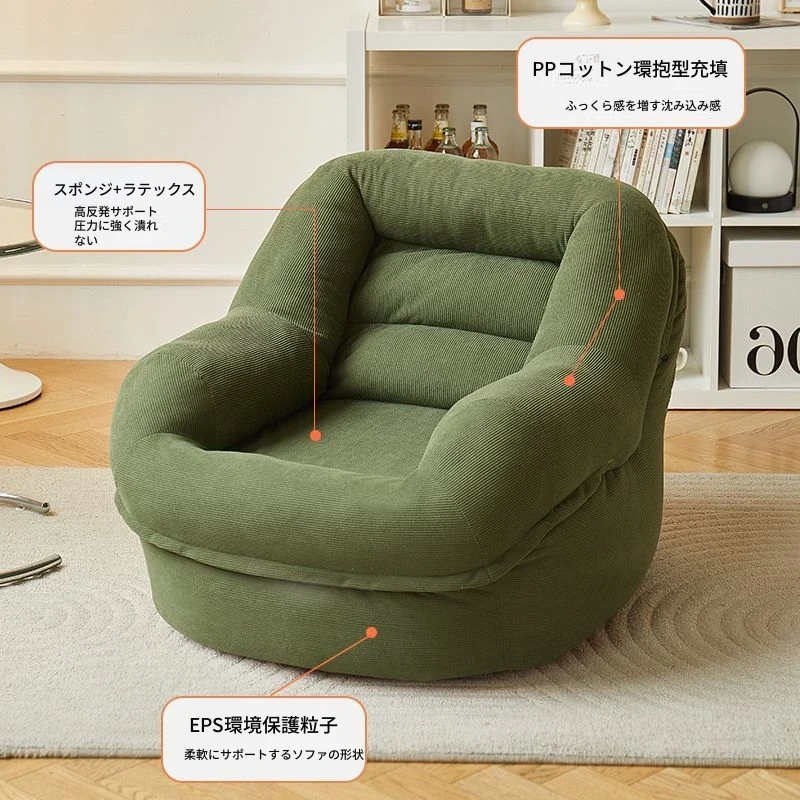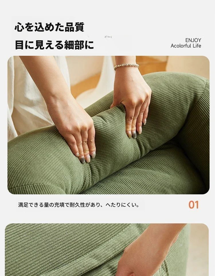 【オリーブグリーン】ラテックスタイプ-肌触りの良い柔らかいコーデュロイ-取り外し可能-一人用