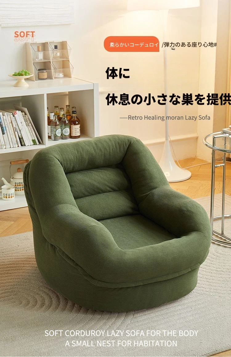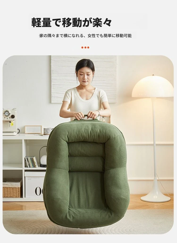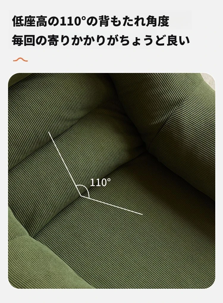 【オリーブグリーン】スポンジタイプ-肌触りの良い柔らかいコーデュロイ-取り外し可能-一人用