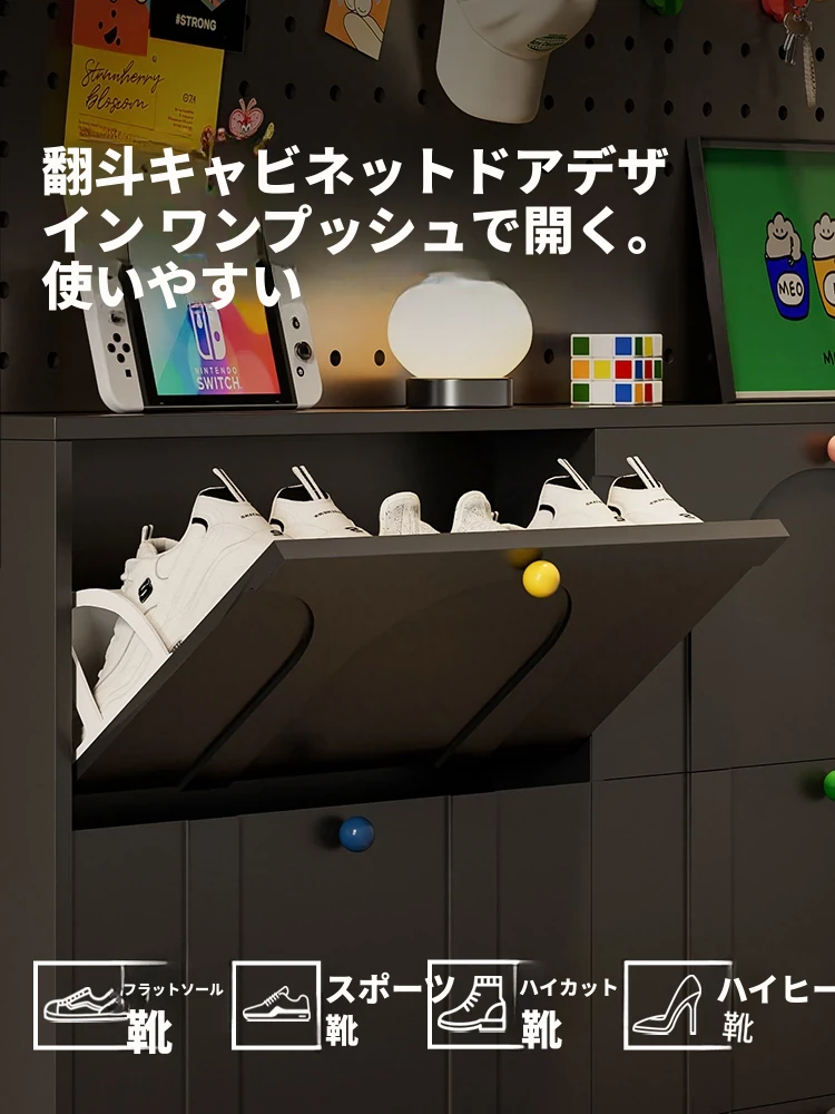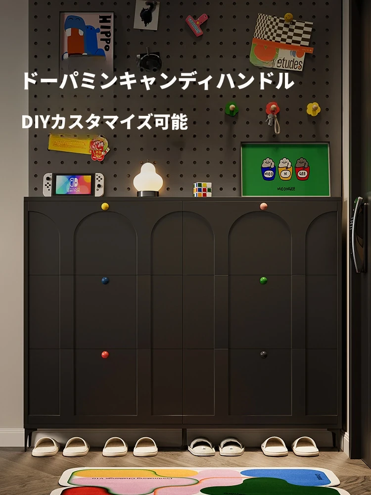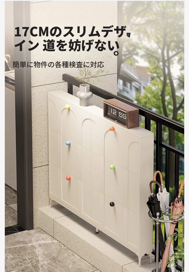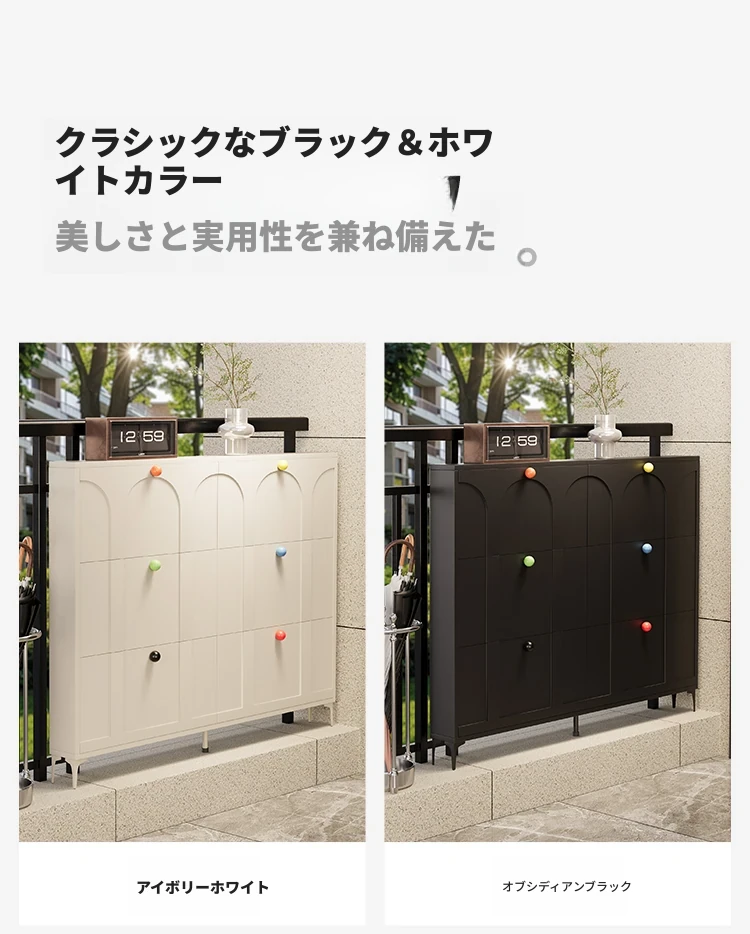 超薄多機能ドパミンシューズラック!狭い屋外廊下やエレベーター口にぴったりのブラック折りたたみ靴箱。バルコニーに最適な日焼け防止収納キャビネットです。おしゃれで省スペースな収納ソリューション!