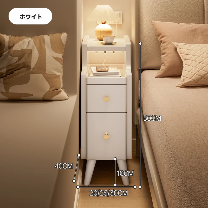 超スリムなベッドサイドキャビネット!幅20cmのコンパクト収納ボックス、ホーム用の木製クリエイティブナロースペースキャビネット。寝室にぴったりなベッドサイド収納ラックで、限られたスペースを有効活用!