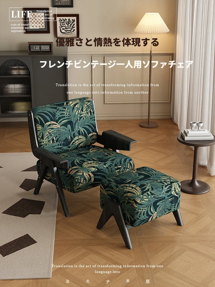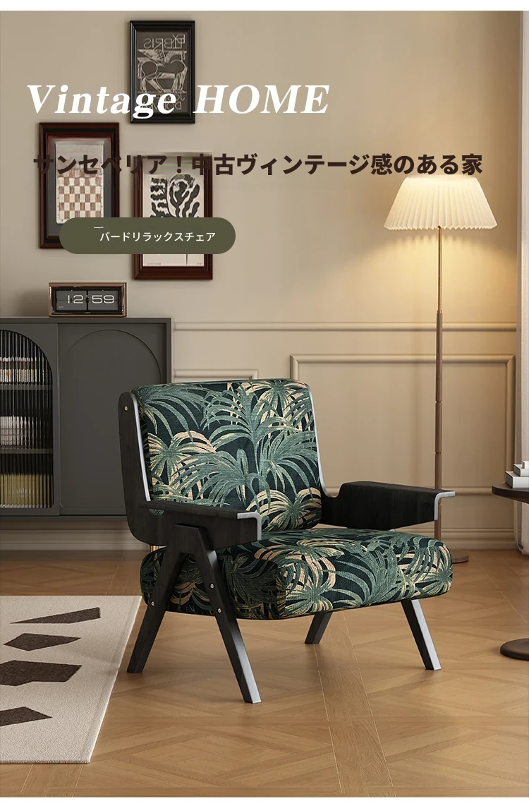 【レトロ風-羽毛ジャガード+グリーンベルベット】バードリラックスチェア