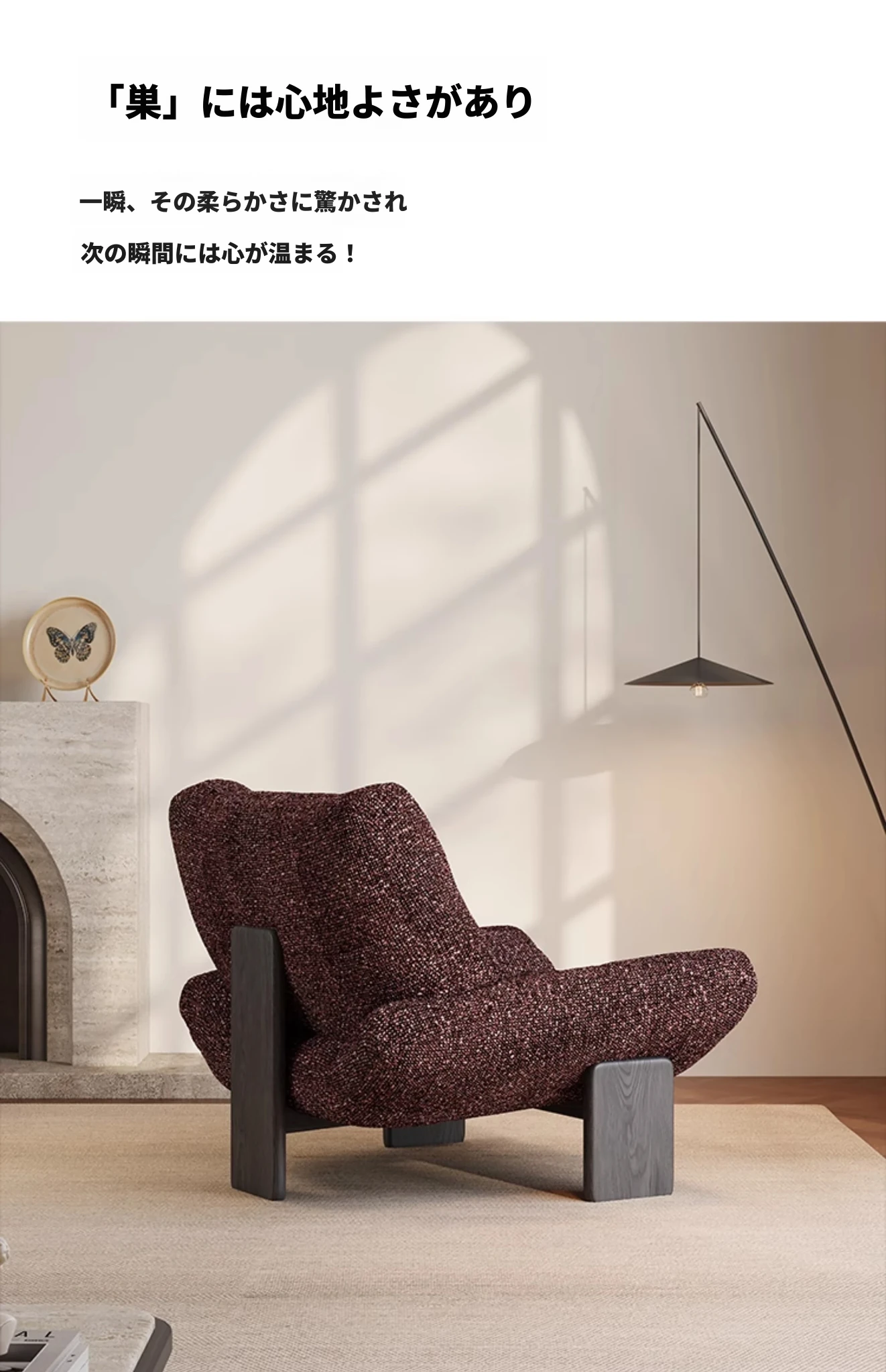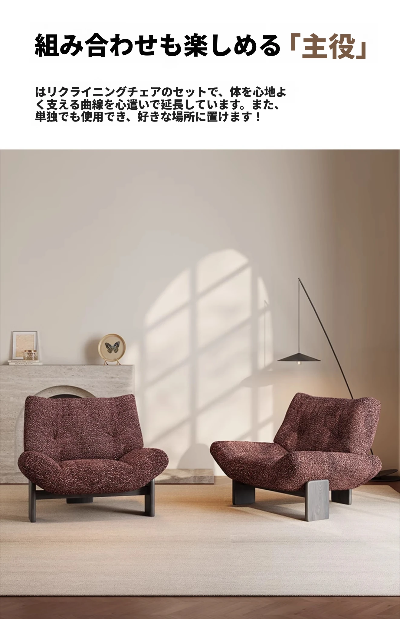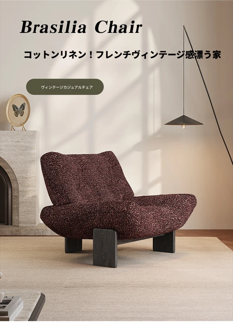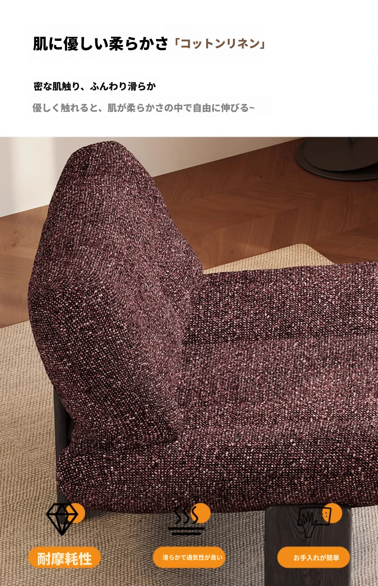 【ワインレッドのコットンリネン生地】カジュアルチェア-【デフォルトはスポンジタイプ】