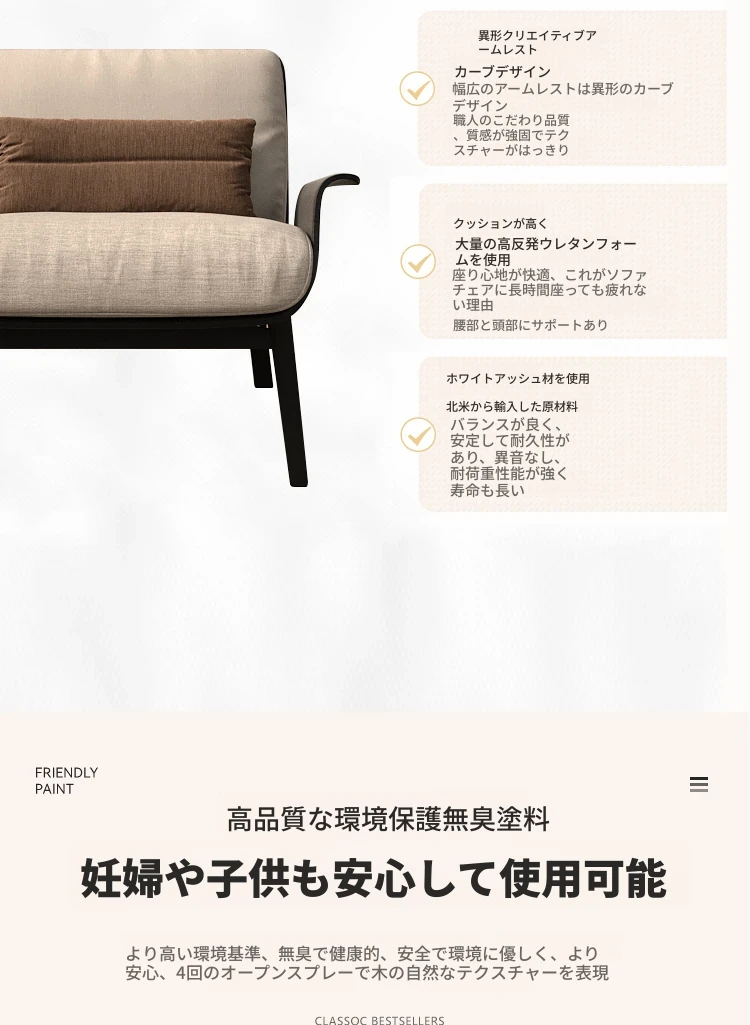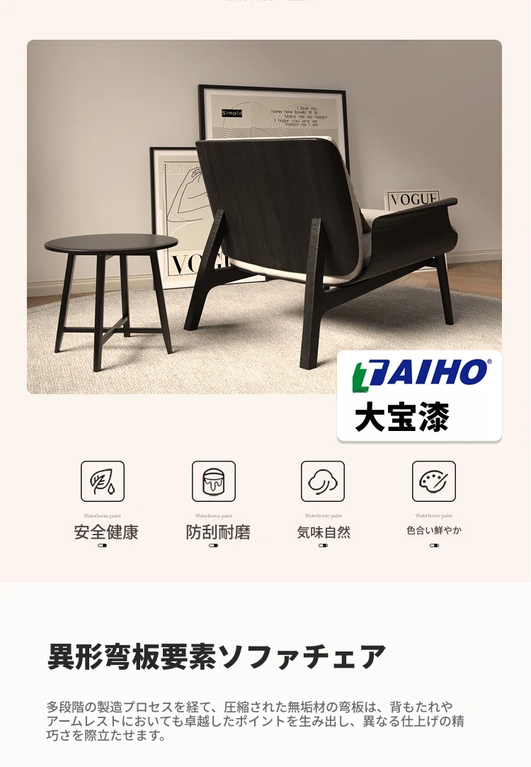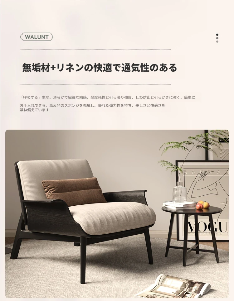 ヴィンテージ風の一人掛けソファ、クリーミーなウルフデザイン、北米産のブラックウォールナット使用!デザイナーによるクリエイティブな無垢材リラックスチェアで、居心地の良い空間を演出します。