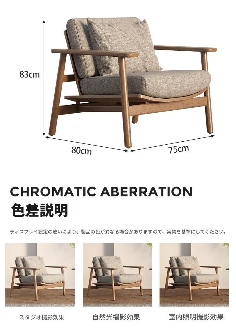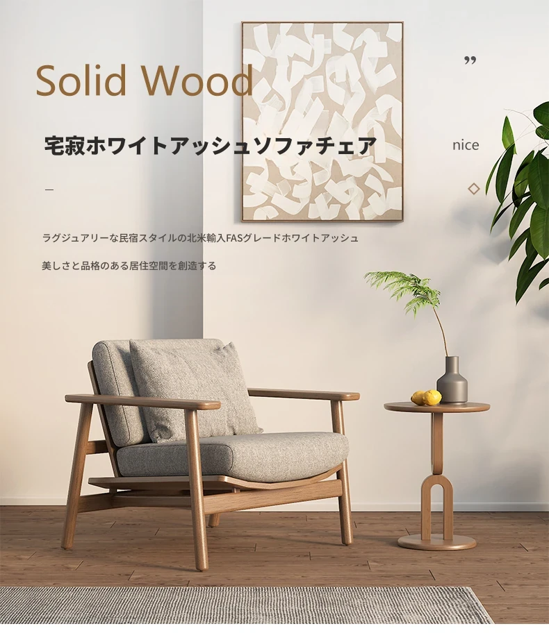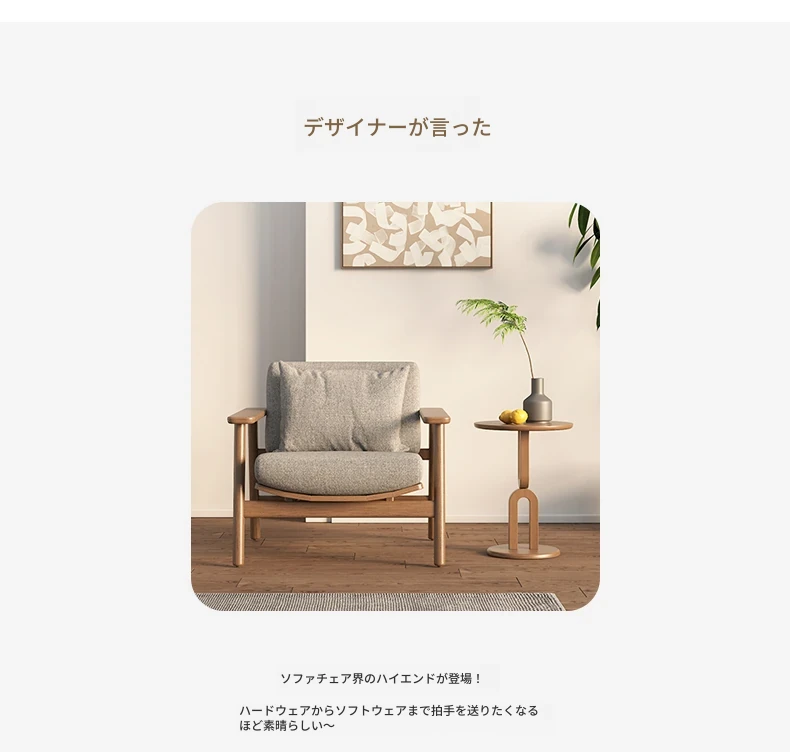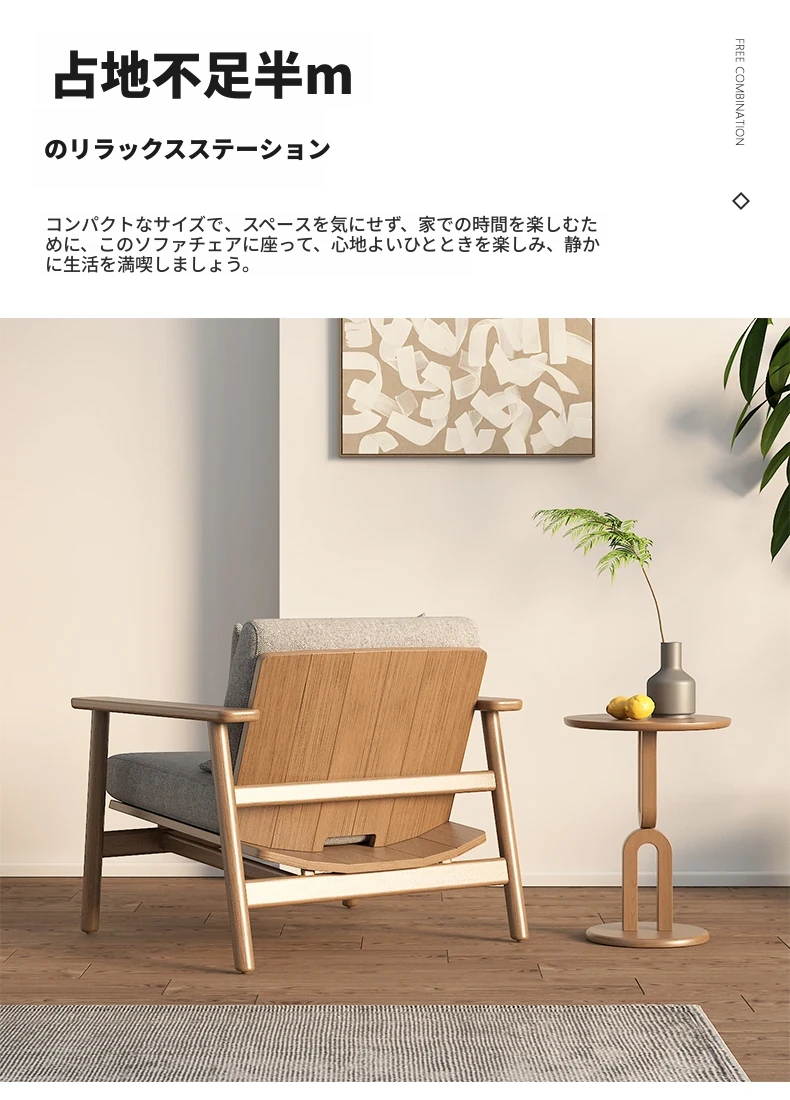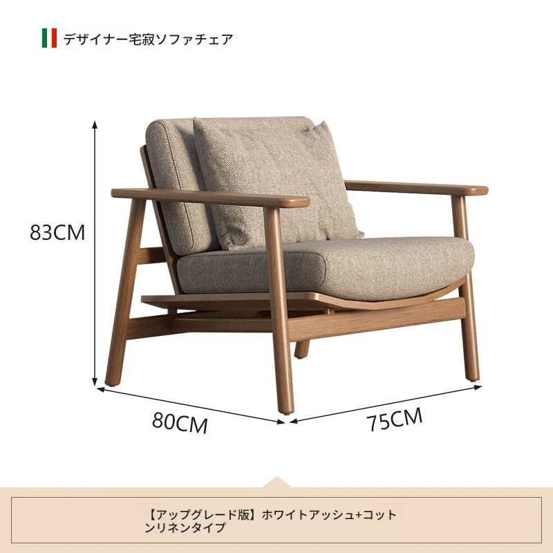 侘寂風の一人掛けソファー|リビング・寝室・バルコニーに最適なモダンでシンプルなデザイン|快適なリラックスタイムを演出する実木製のラウンジチェア