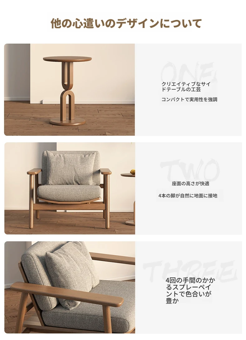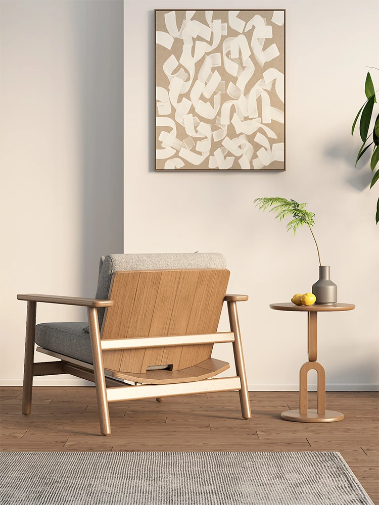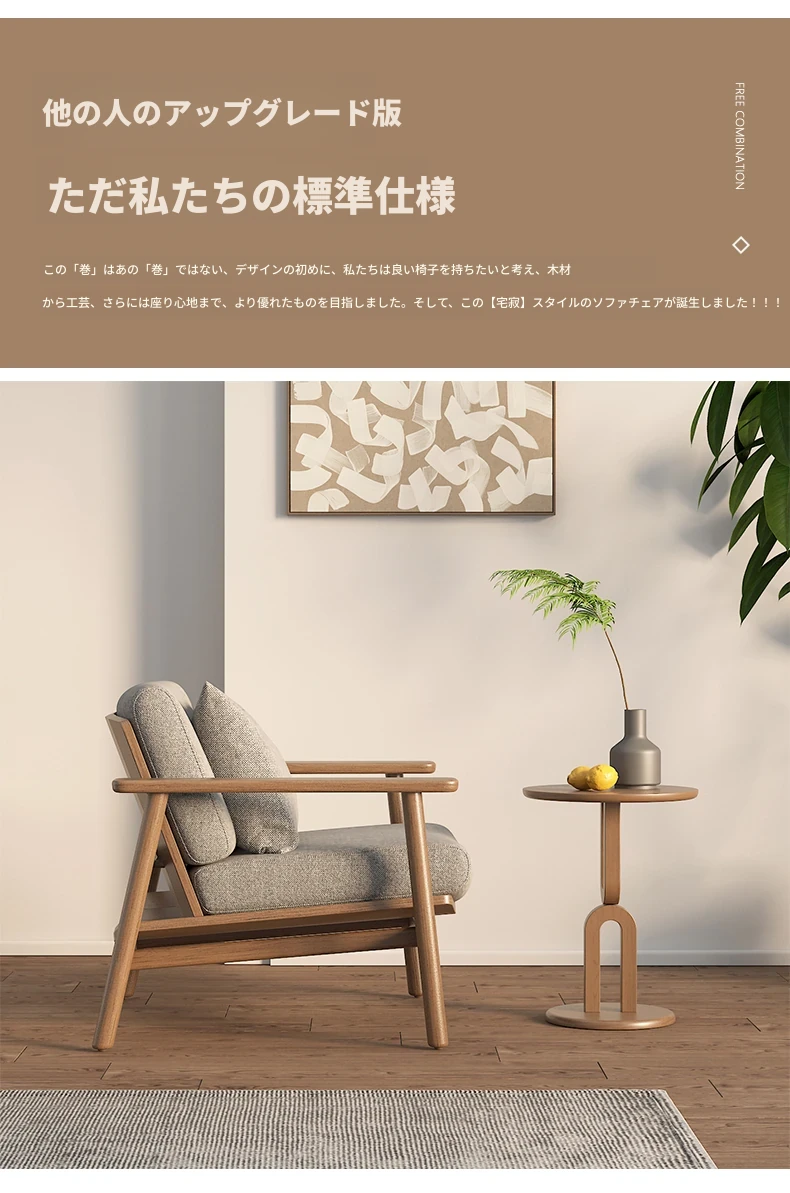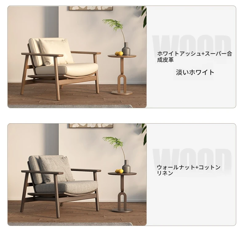 侘寂風の一人掛けソファー|リビング・寝室・バルコニーに最適なモダンでシンプルなデザイン|快適なリラックスタイムを演出する実木製のラウンジチェア