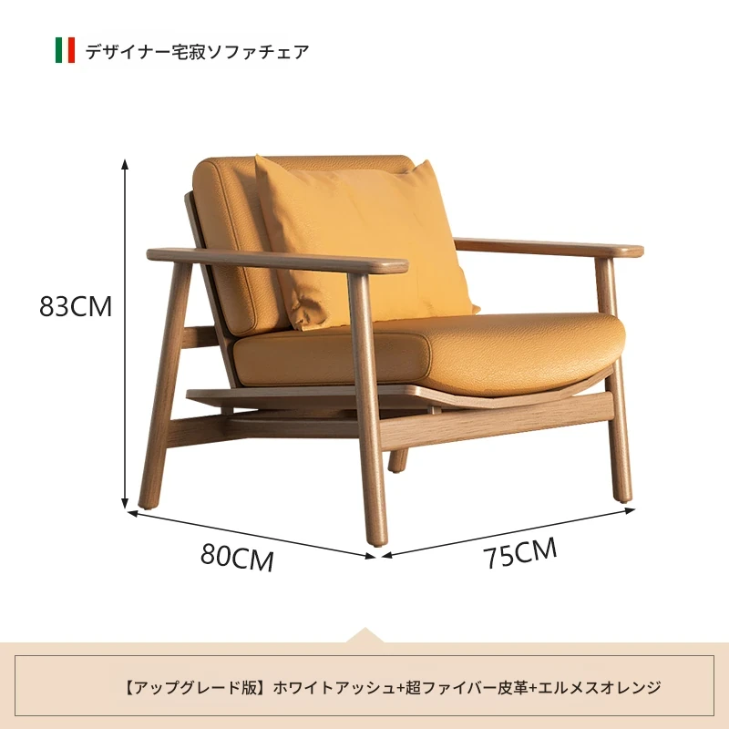 一人掛け【ホワイトアッシュ+エルメスオレンジ超ファイバー皮】