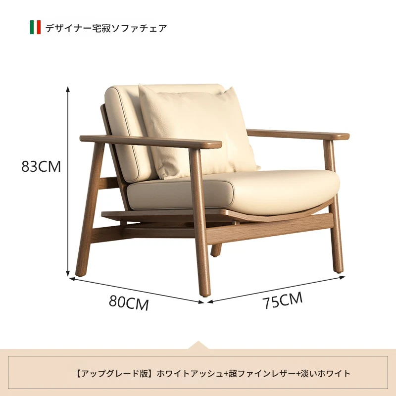 一人掛け【ホワイトアッシュ+淡い白超ファイバー皮】