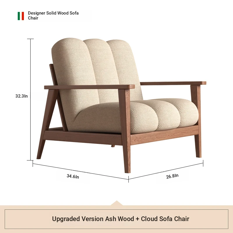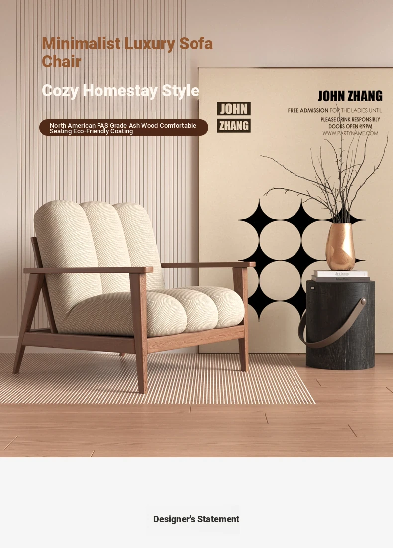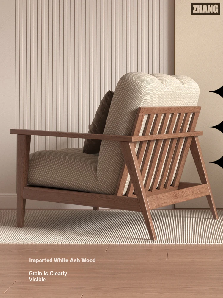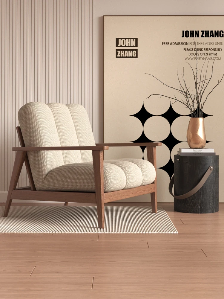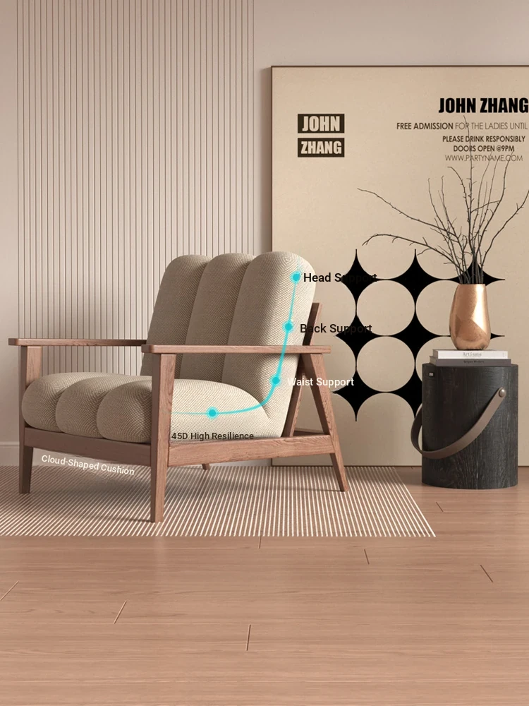Wabi-Sabi Style Solid Wood Single Sofa - Designer Creative Lounge Chair for Modern Nordic Minimalist Interiors, Perfect for Relaxation and Aesthetic Appeal